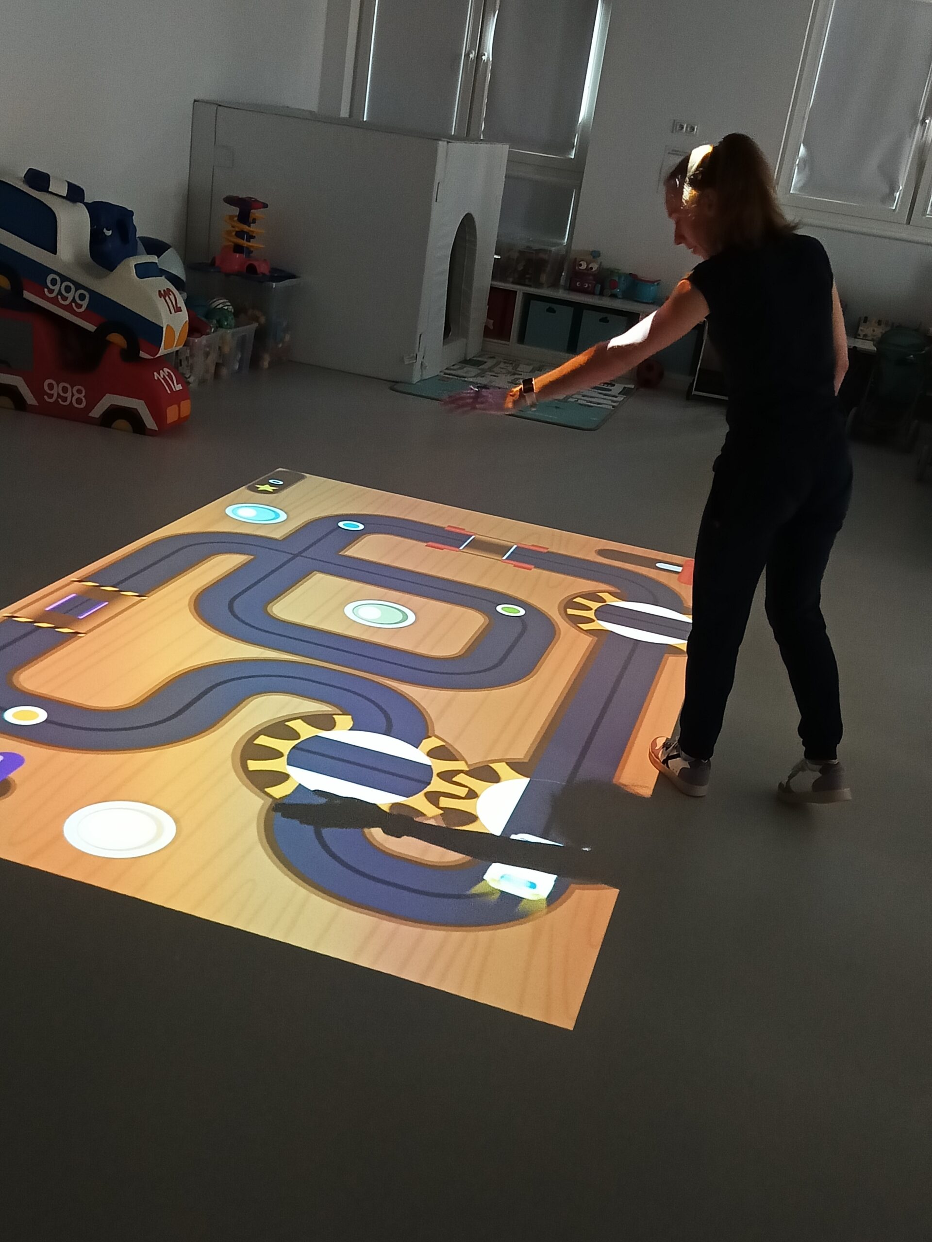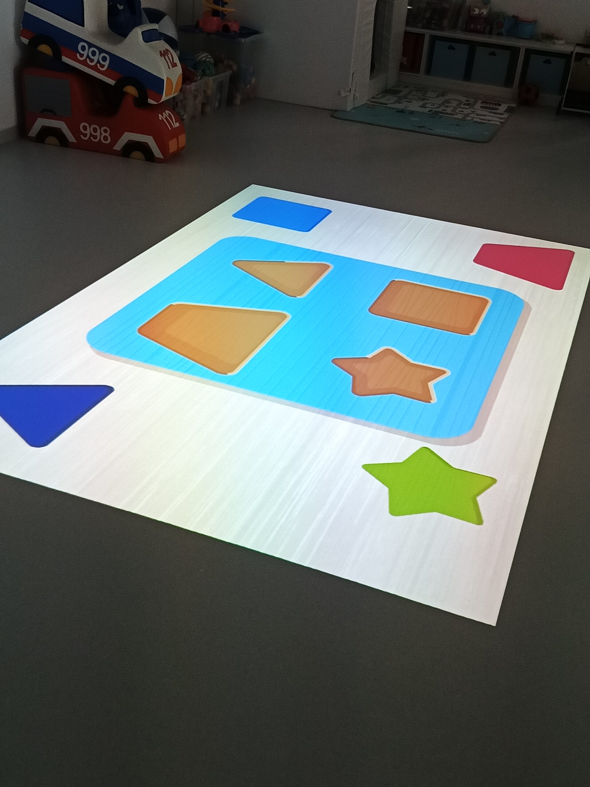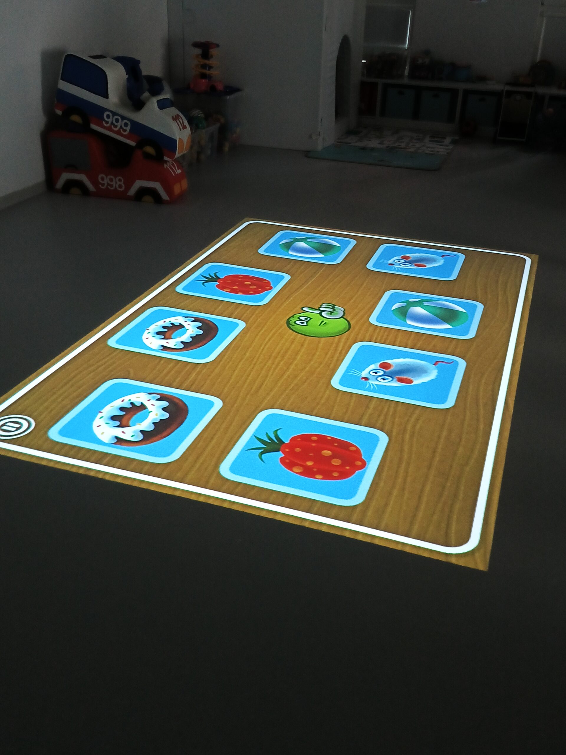 Podłoga nie ma ekranów ani urządzeń, z którymi dziecko ma bezpośredni kontakt. Obraz wyświetlany jest z projektora na powierzchnię podłogi – bez promieniowania, niebieskiego światła i migających bodźców. Dzięki temu jest w pełni przyjazna i bezpieczna nawet dla najmłodszych.