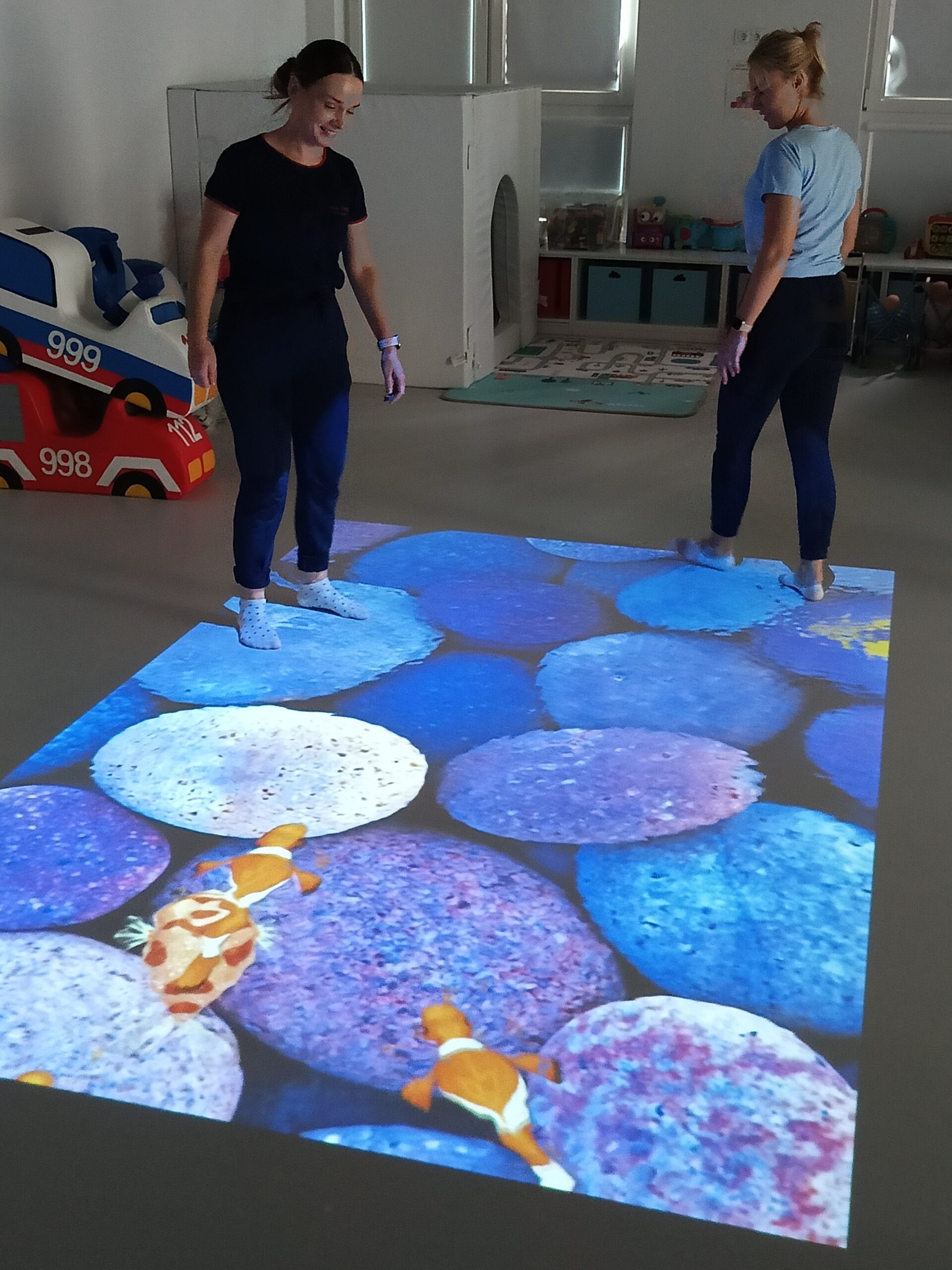 To przestrzeń reagująca na ruch dziecka światłem, obrazem i dźwiękiem. Maluchy mogą gonić animowane zwierzątka, tańczyć w rytm muzyki, rozgniatać wirtualne bańki czy poznawać kolory, a to wszystko w formie radosnej zabawy, która wspiera ich rozwój.