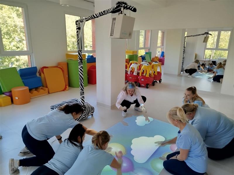 Przeszli specjalne szkolenie z obsługi interaktywnej podłogi i… cóż, sami nie chcieli zejść z podłogi! 🕺💃 Dzięki zdobytym umiejętnościom mogą teraz prowadzić zajęcia w jeszcze ciekawszy i bardziej angażujący sposób – aktywizując dzieci, wspierając ich rozwój oraz wprowadzając nowoczesne technologie do codziennej nauki i zabawy.