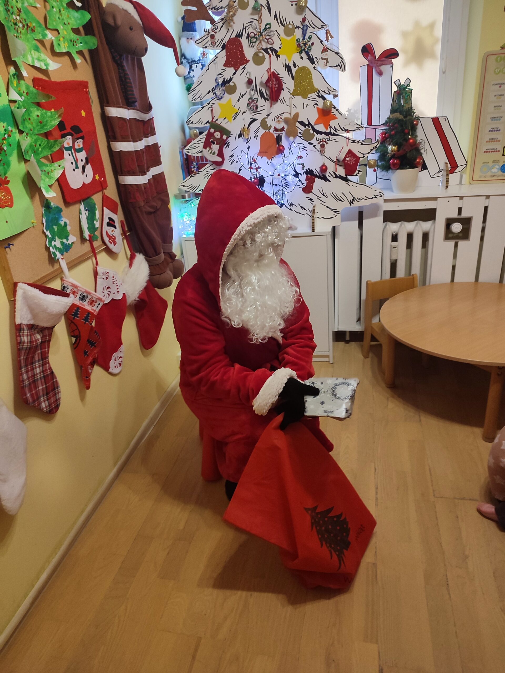 Odwiedził nas Święty Mikołaj, który sprawił dzieciom wiele radości i wywołał uśmiech na ich twarzach. Wspólnie uczyliśmy się kolęd: „Bóg się rodzi”, „Dzisiaj w Betlejem” oraz „Chwała na wysokości”, rozwijając wrażliwość muzyczną i wprowadzając dzieci w świąteczny nastrój.