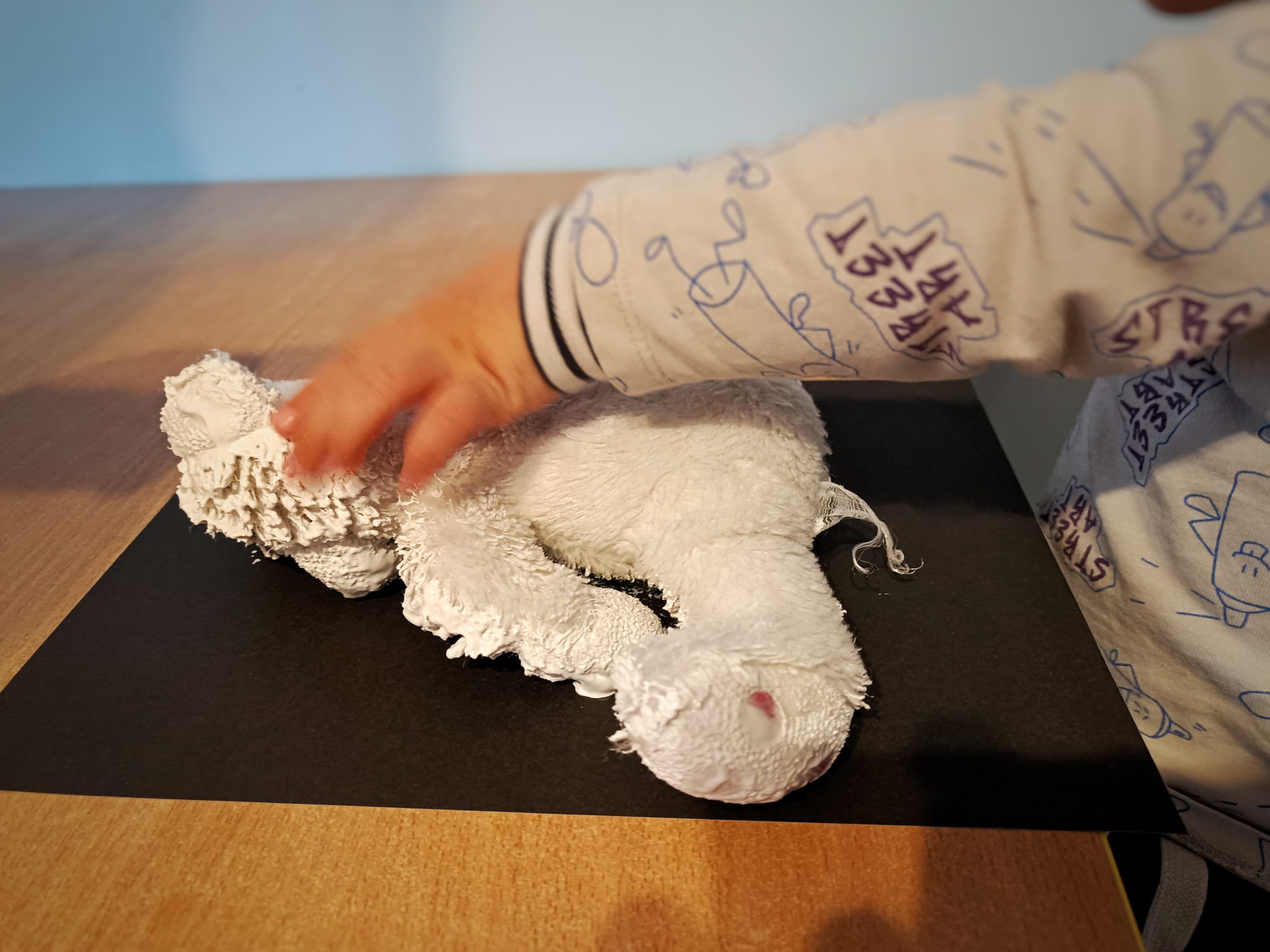 W listopadzie nie zabrakło także twórczych aktywności. Dzieci malowały kolorowe obrazy niczym prawdziwi artyści, rozwijając wyobraźnię i sprawność manualną. 🎨Z okazji Dnia Pluszowego Misia powstały również piękne, białe misie – każdy wyjątkowy i jedyny w swoim rodzaju.🧸