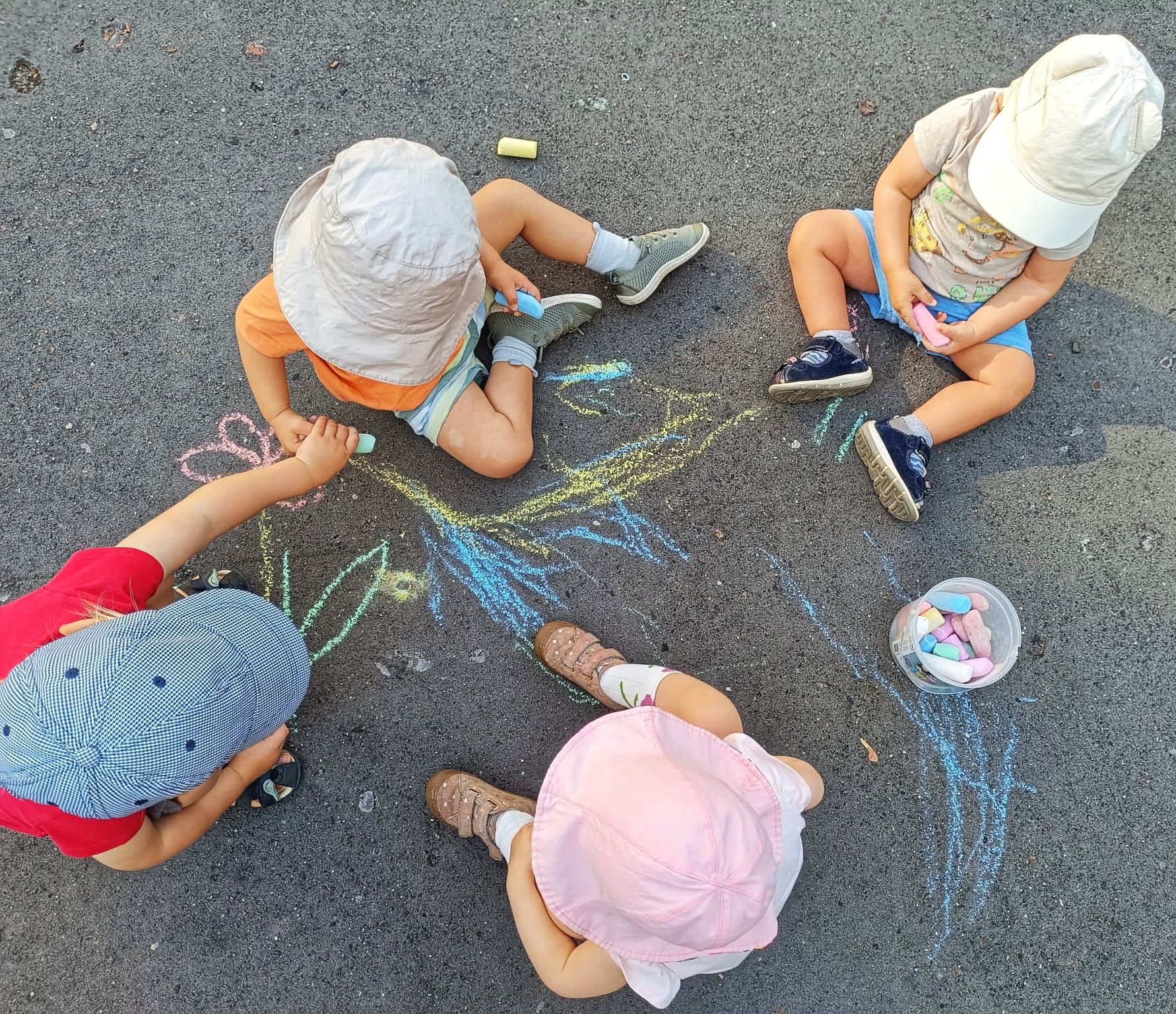 Wrzesień – miesiąc mijający pod hasłem „adaptacja”. W naszym punkcie była ona niemal niezauważalna.😉Wszyscy szybko zaadaptowaliśmy się do nowych warunków i odkryliśmy, jak wspaniała jest wspólna zabawa. A działo się, jak zawsze, dużo. Podczas rysowania kredą dzieci rozwijały wyobraźnię i zdolności manualne oraz motorykę małą. Dzięki przyklejaniu różnych elementów, maluszki ćwiczyły precyzyjne ruchy dłoni i palców oraz stymulowały koordynację ręka-oko. Bogatych wrażeń sensorycznych dostarczyła nam zabawa kolorowymi wstążkami. A ile śmiechu przy tym było.😉Najbardziej lubimy spacery i zabawy na świeżym powietrzu, a kawa przygotowana na placu zabaw smakuje najlepiej.😁