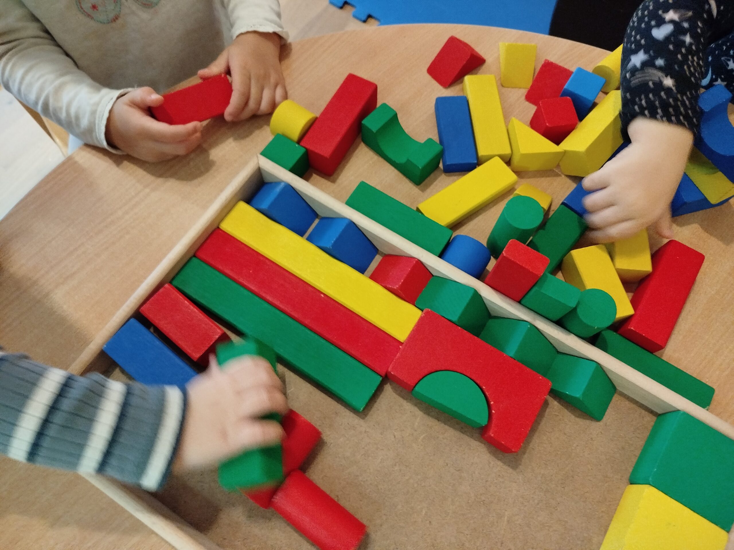 Układaliśmy kolorowe klocki i uczyliśmy się nazw kolorów.
