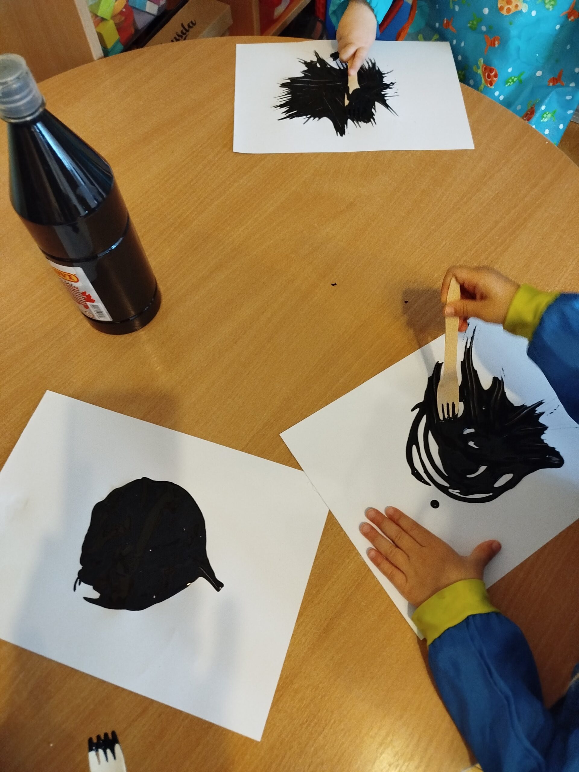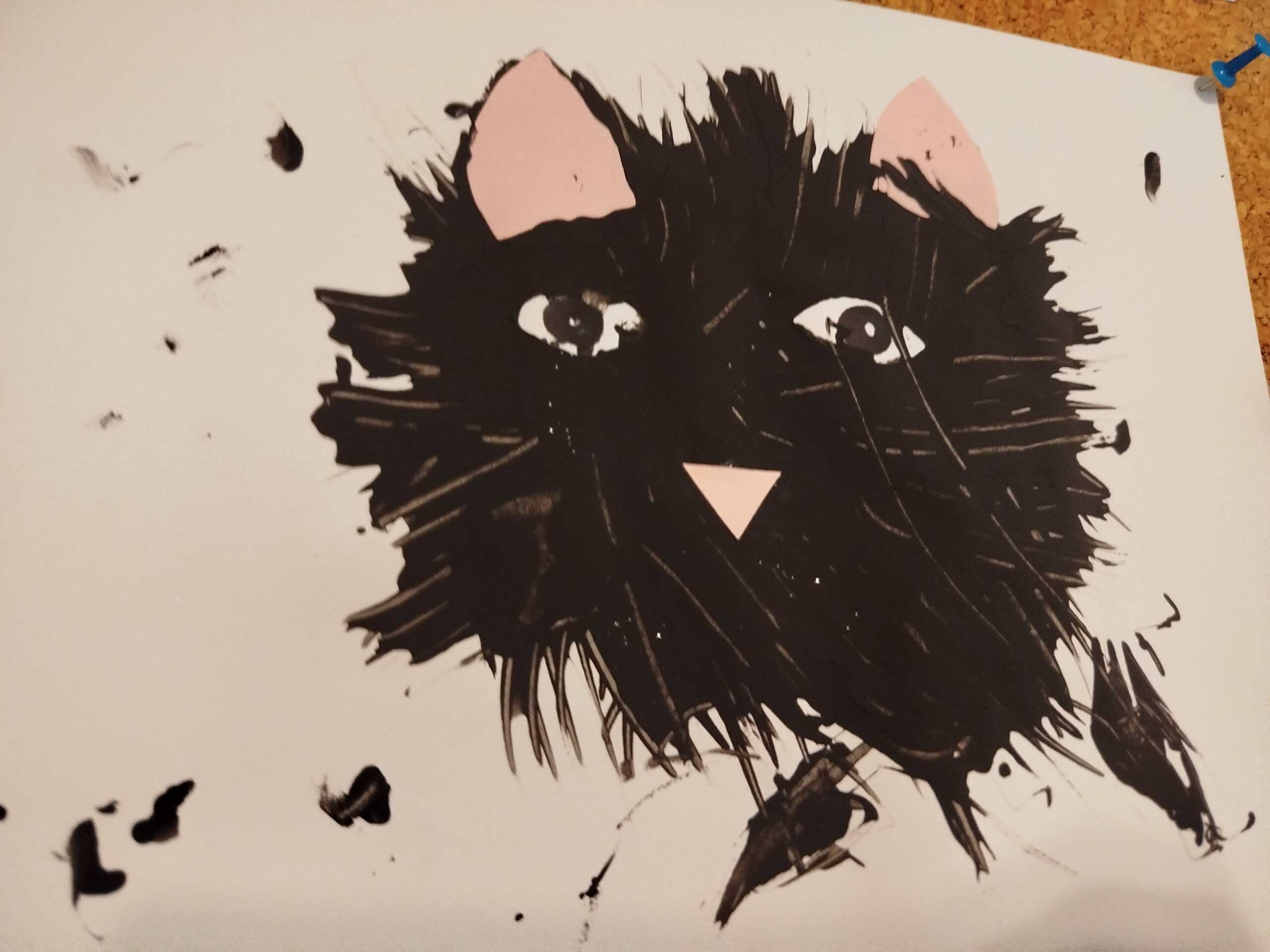 Obchodziliśmy Dzień Czarnego Kota, śpiewając piosenki, mówiąc wierszyki i robiąc pracę plastyczną z kotem.