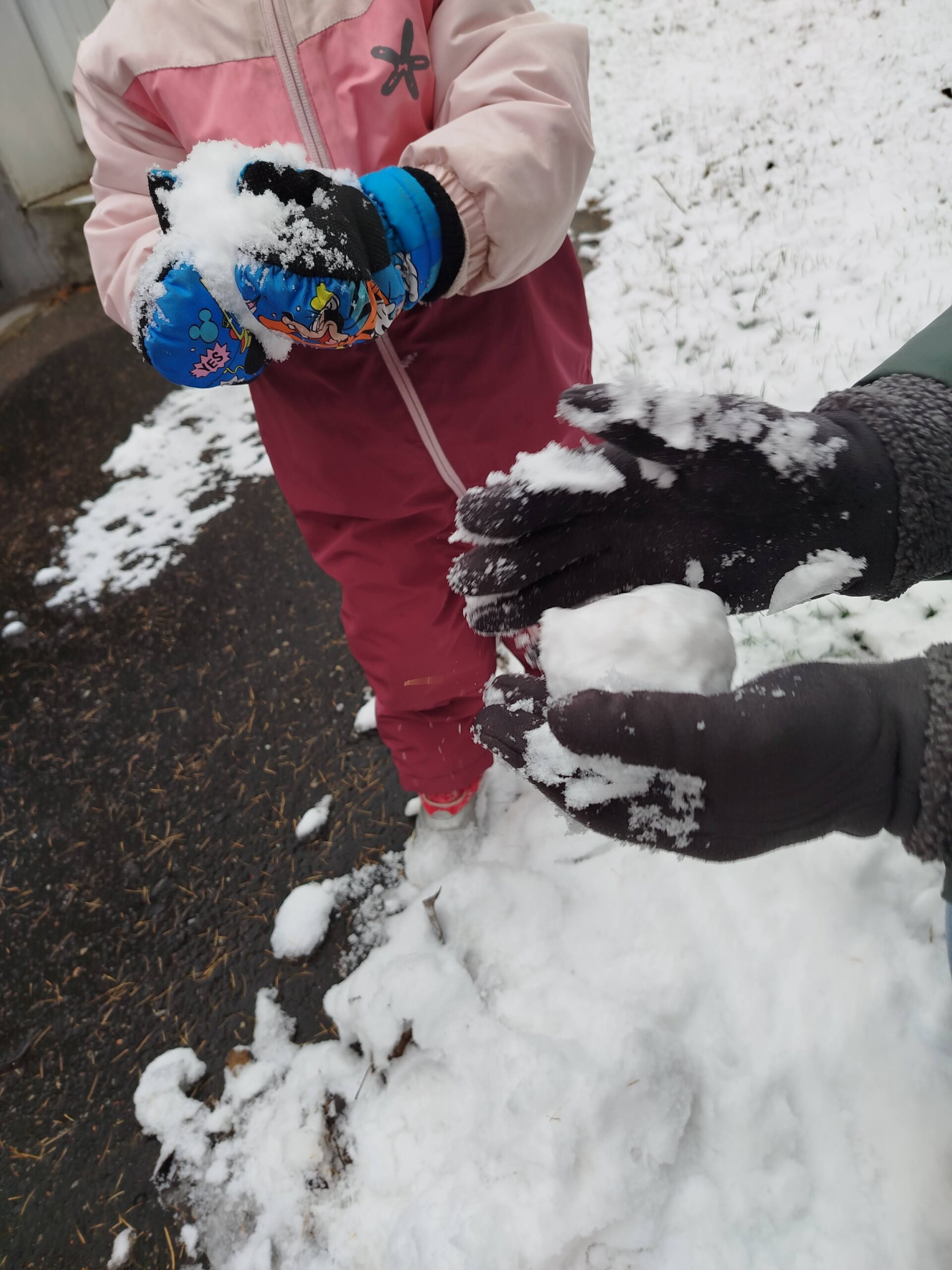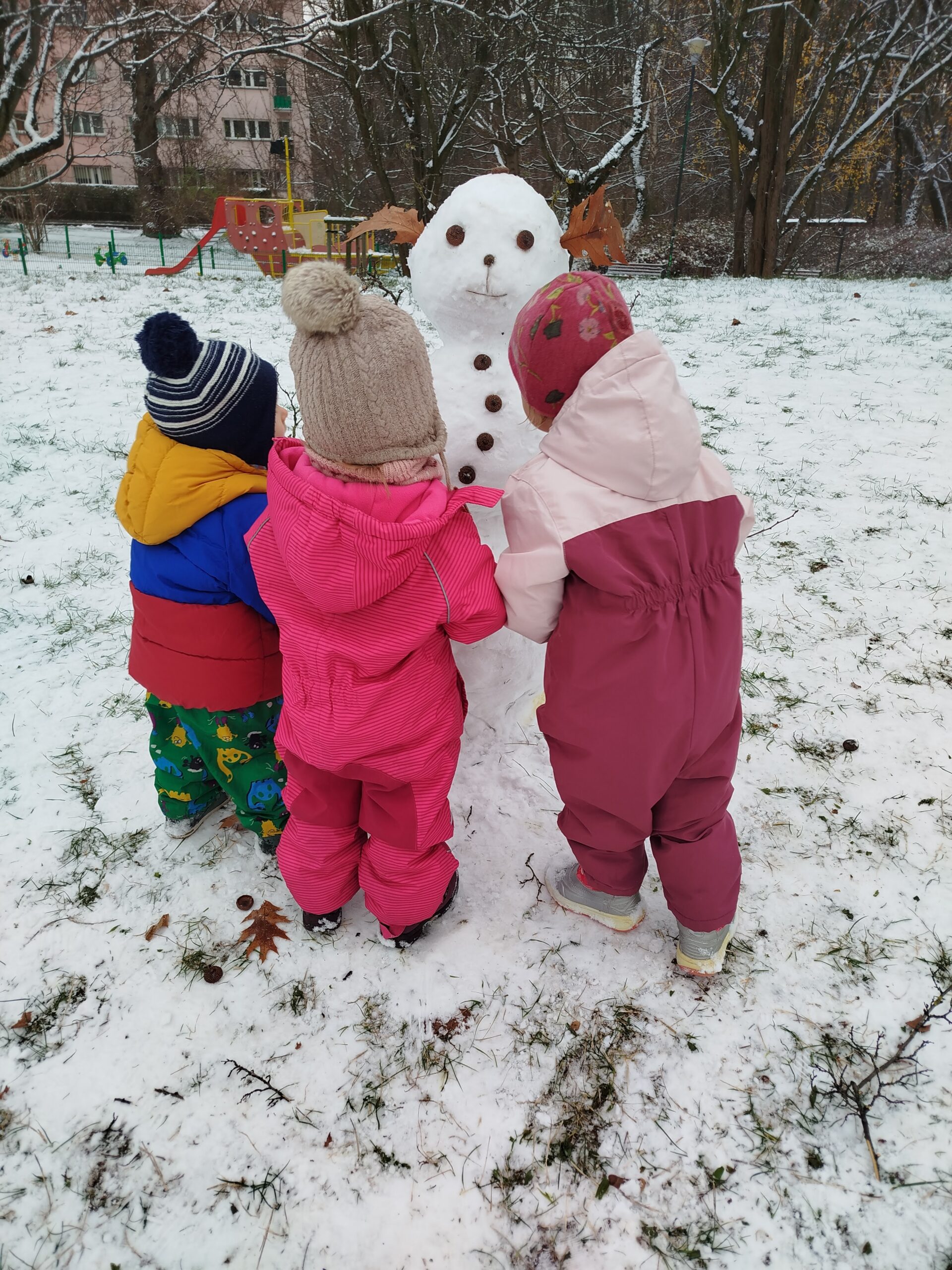 Spadł pierwszy śnieg! Zrobiliśmy bałwanki i cieszyliśmy się zimową zabawą.