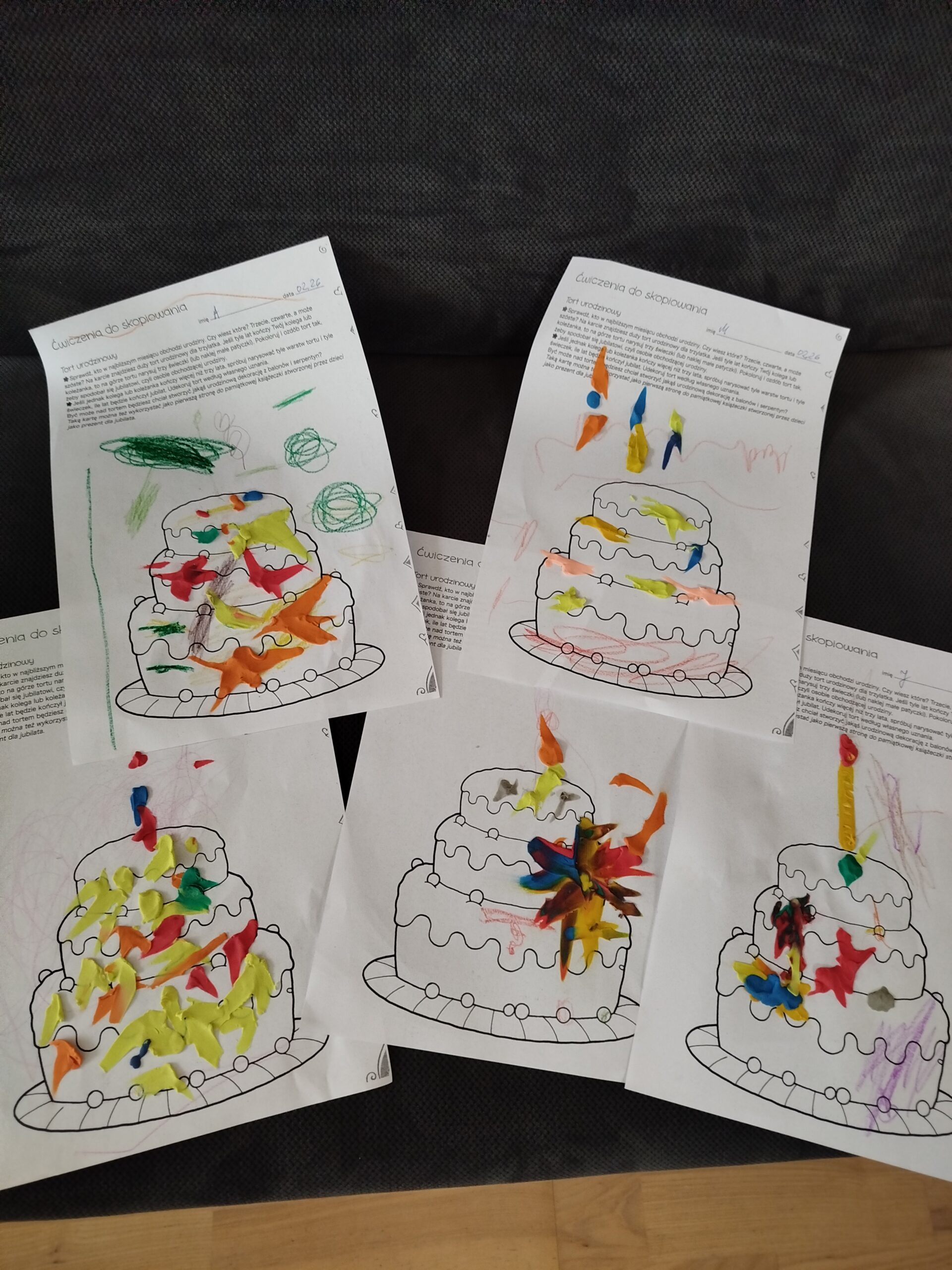 Świętowaliśmy dwa razy urodziny naszych kolegów. W związku z tym projektowaliśmy tort i czapeczkę urodzinową.