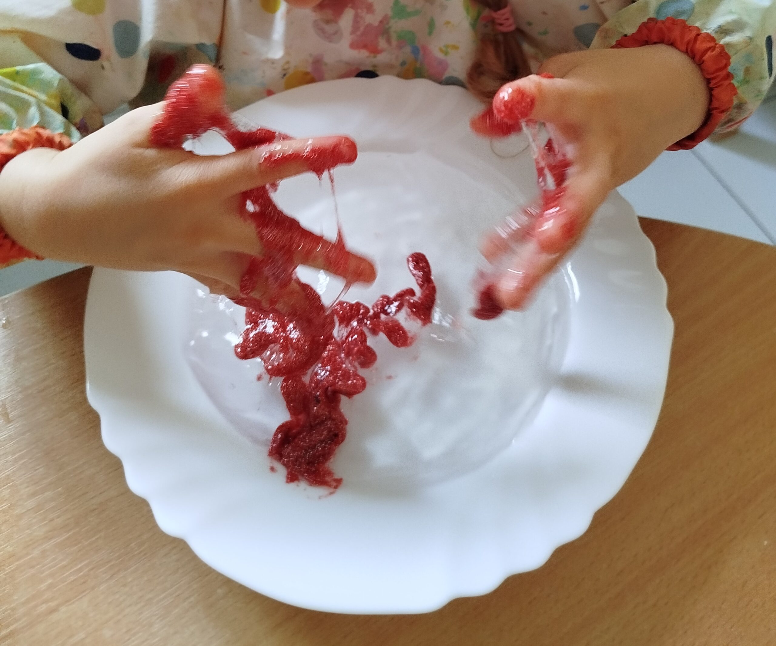 Miesiąc zakończyliśmy masą sensoryczną, która była bardzo przyjemna dla dzieci.
