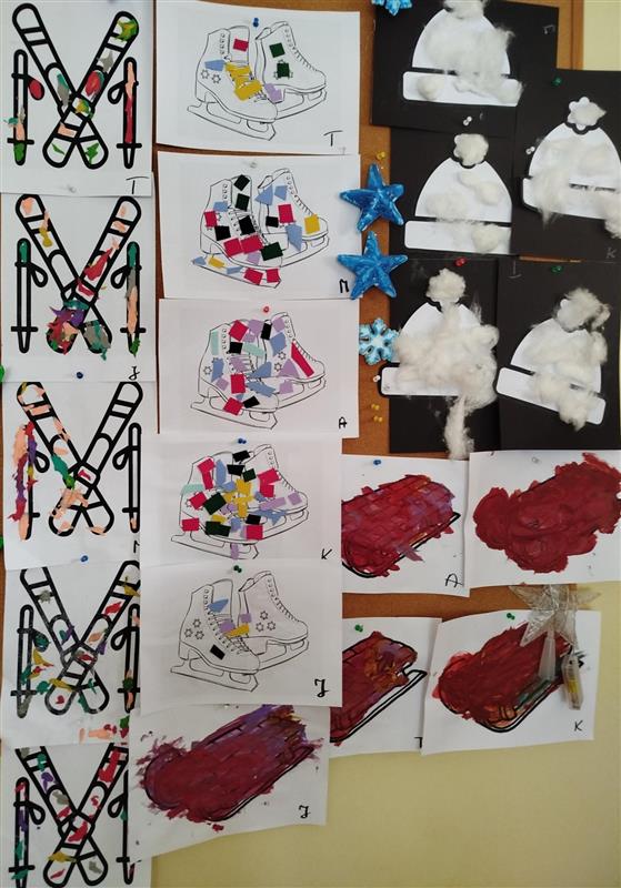 Dzieci malowały saneczki dekorowały łyżwy i plasteliną wyklejały narty.