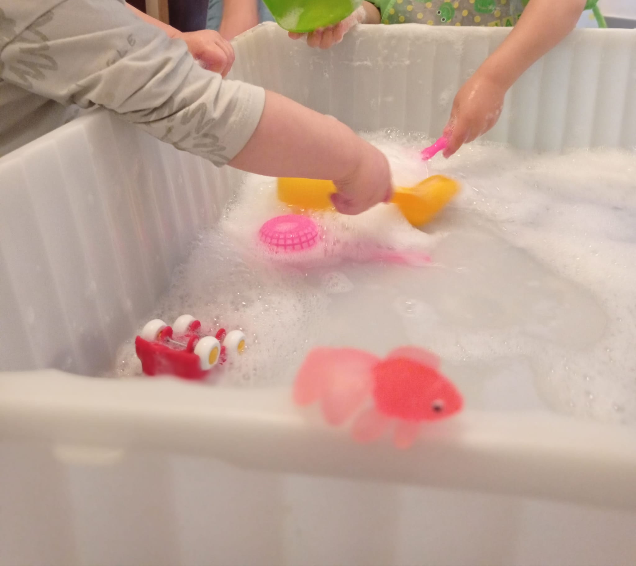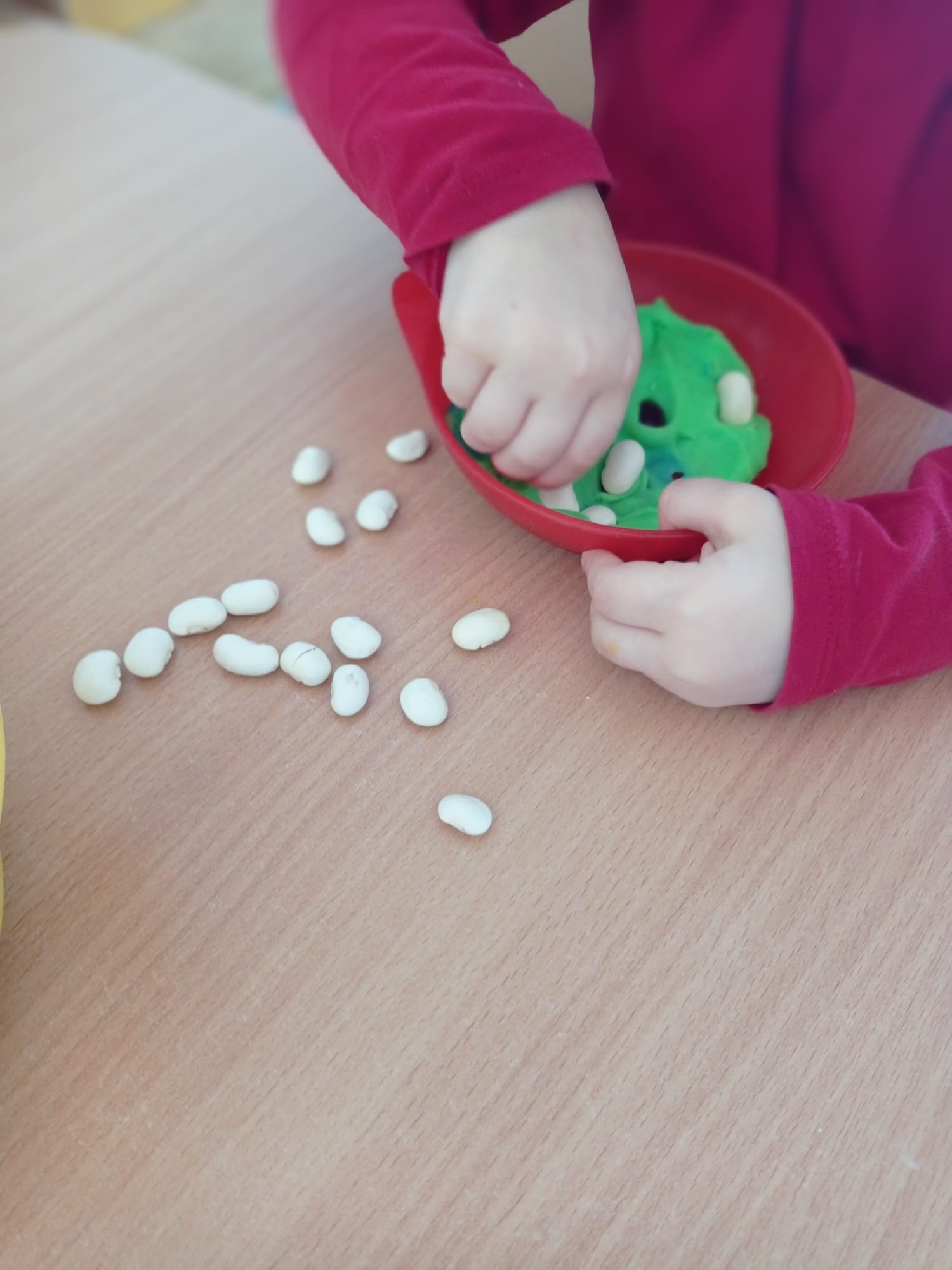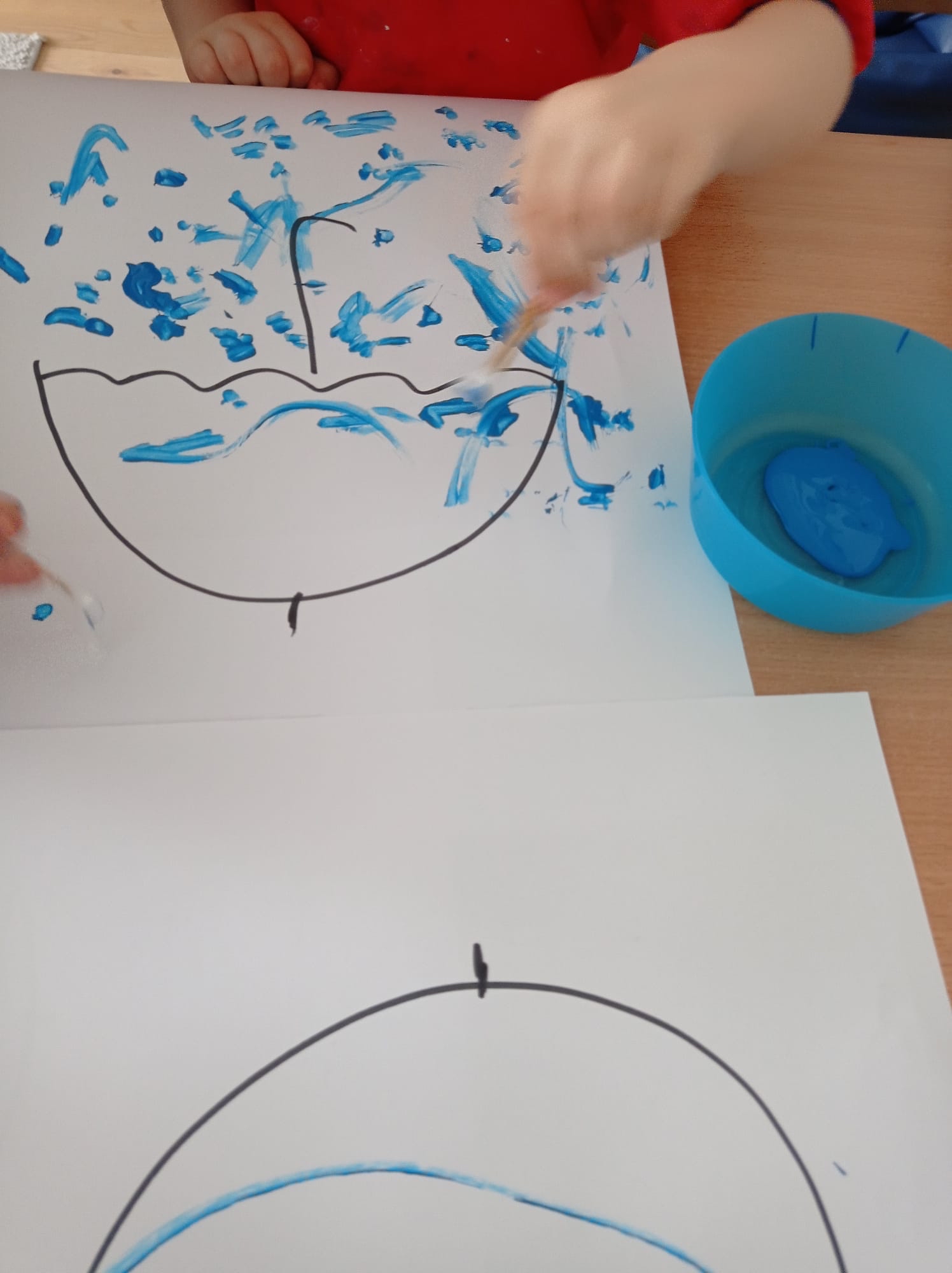 Codziennie towarzyszyła nam muzyka na żywo. Gitara, śpiew i spontaniczny ruch. Było dużo radości i wspólnego bycia razem. Nie brakowało zabaw sensorycznych: malowania rękami, mieszania, przelewania, wyklejania oraz eksperymentowania z fakturą i kolorem. Ćwiczyliśmy małe rączki, przesypując, wkładając i wyciągając różne przedmioty. Krojenie, wałkowanie, ugniatanie, wszystko to dzieje się spokojnie, w swoim tempie.