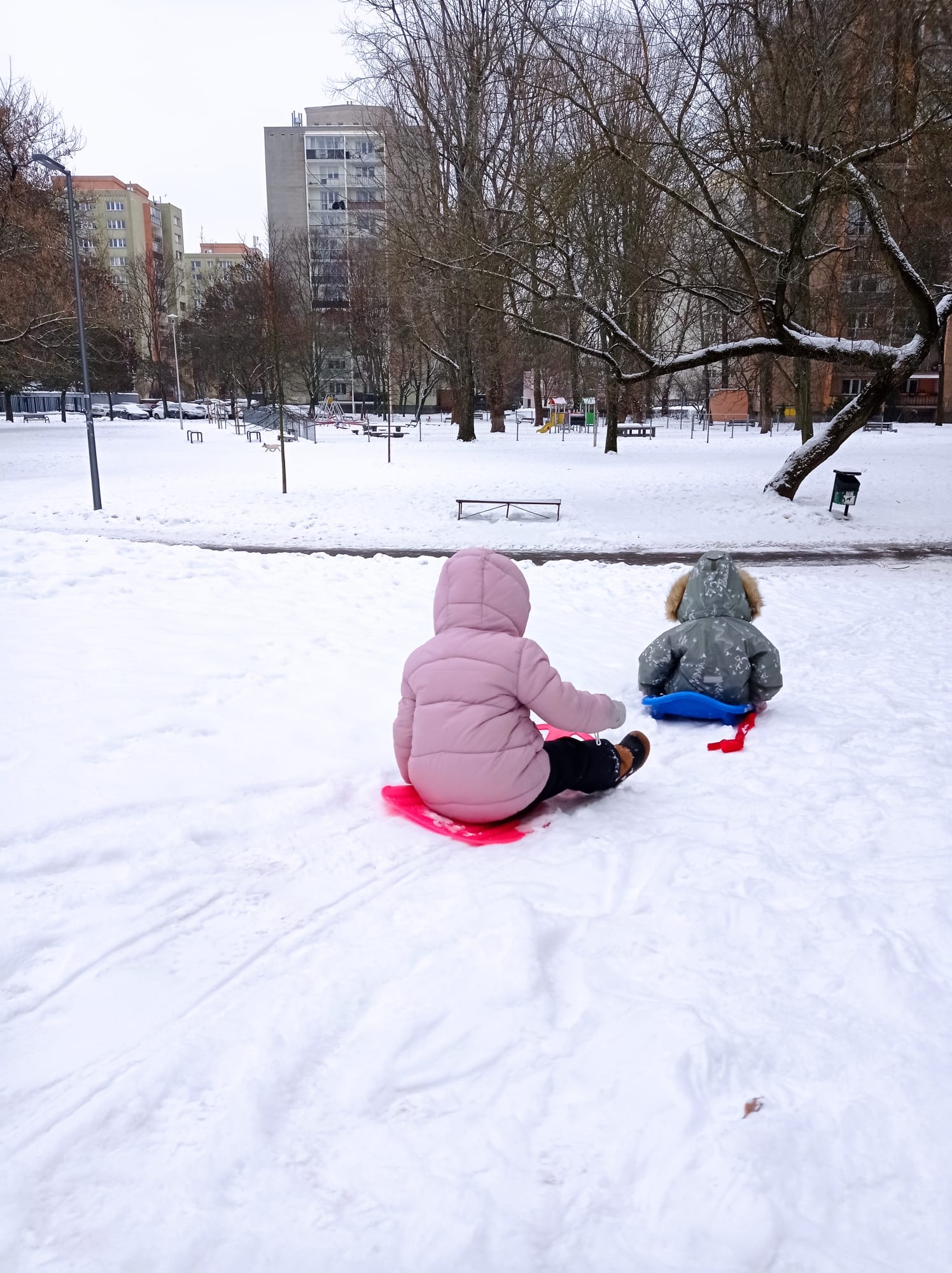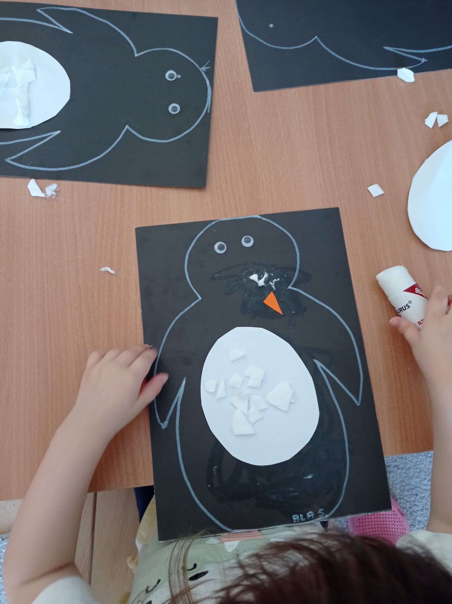 Zima w tym roku wyraźnie dała o sobie znać, dlatego korzystaliśmy z sanek, lepiliśmy bałwana i Zająca na drzewie. Rozmawialiśmy o zimie, obserwowaliśmy ją podczas spacerów, a potem przenosiliśmy jej elementy do naszej sali, tworząc zimowe zabawy.