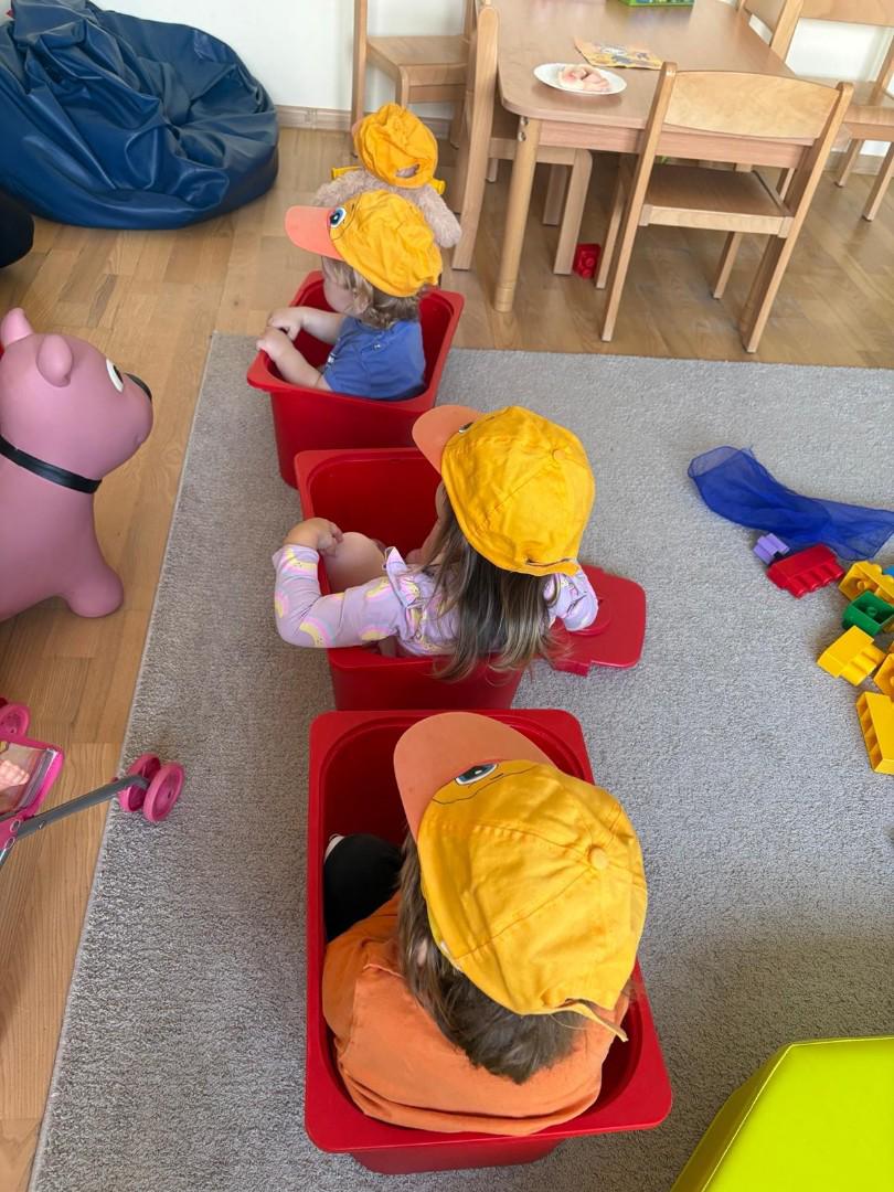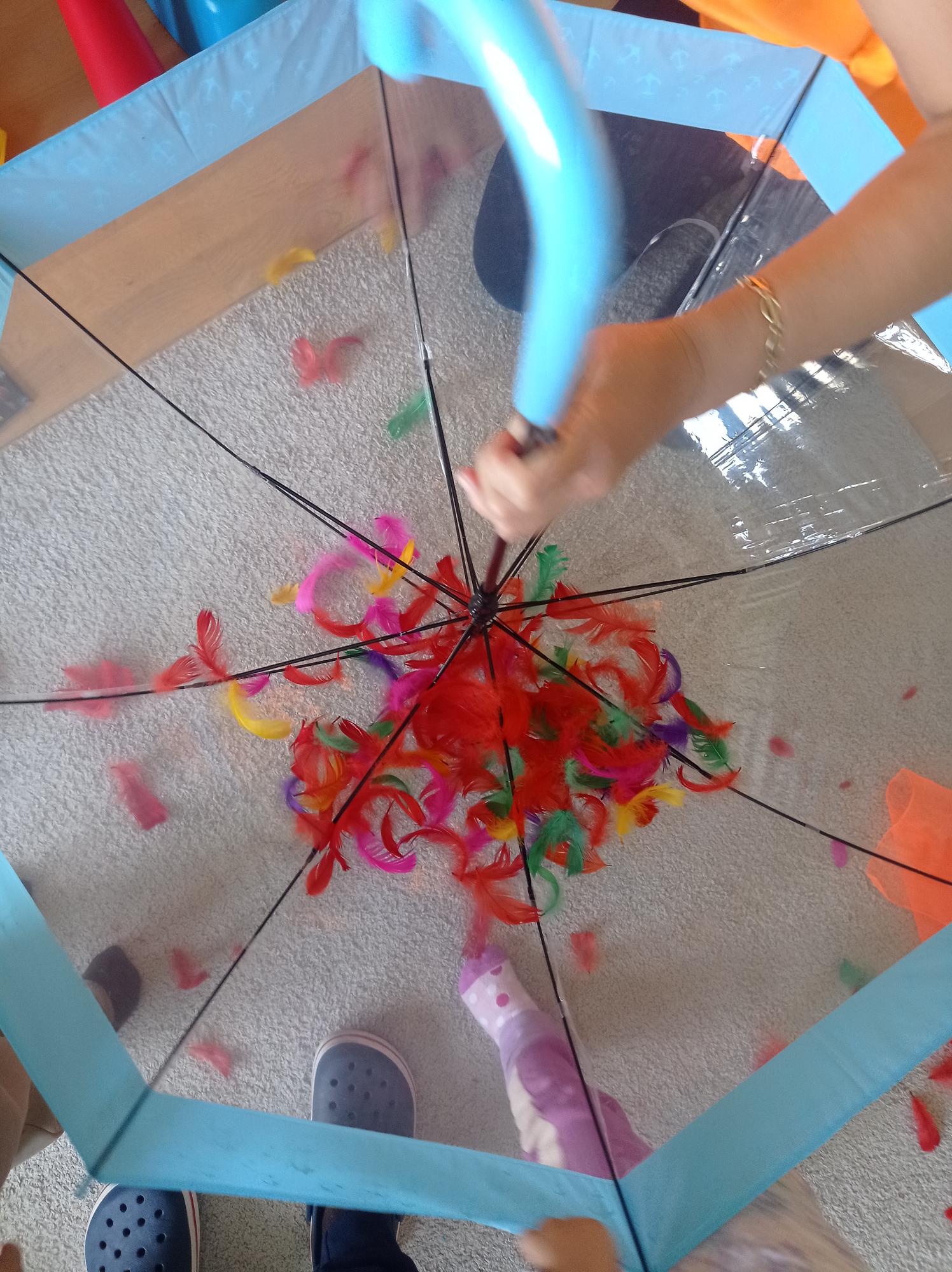 W sali towarzyszyły nam jesienne piosenki z pokazywaniem i naśladowaniem dźwięków. Takie zabawy wspierają rozwój mowy, pamięci i koordynacji, a przy tym sprawiają dzieciom dużo radości.