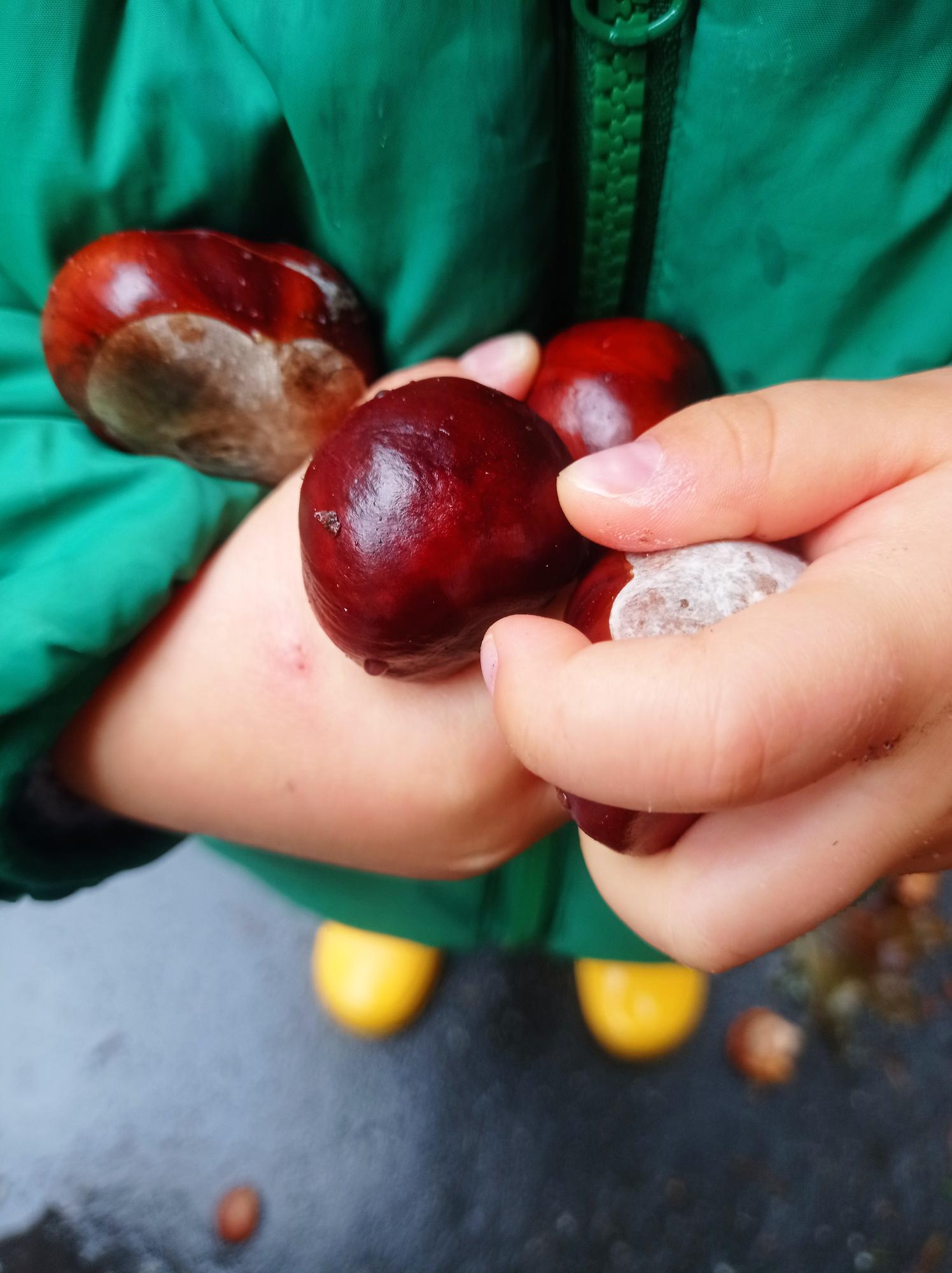 Październik przywitał nas kolorami i dźwiękami jesieni. Liście wirowały na wietrze, kasztany spadały z drzew z głośnym „bam!”, a deszczowe dni tworzyły kałuże idealne do skakania. Podczas spacerów obserwowaliśmy zmiany w przyrodzie, zbieraliśmy skarby natury i odwiedzaliśmy nowe place zabaw, a wszystko po to, by poznawać świat i rozwijać ciekawość.