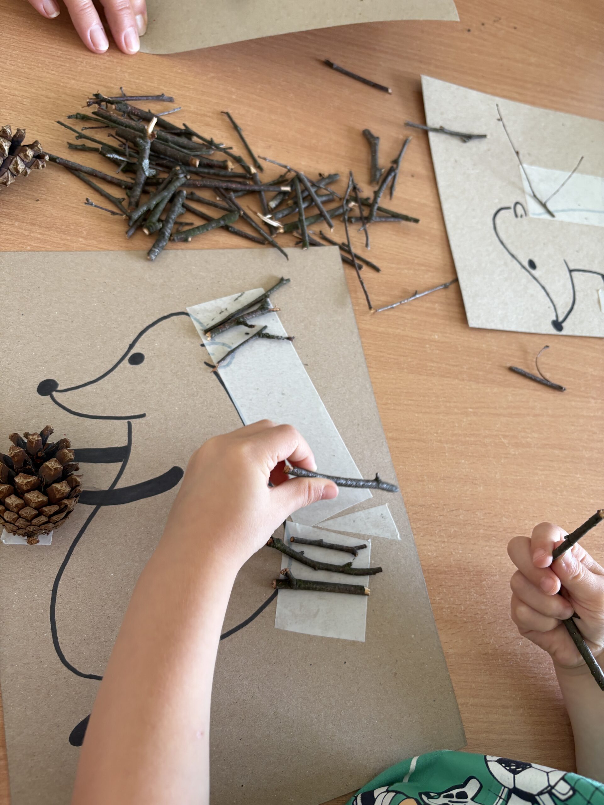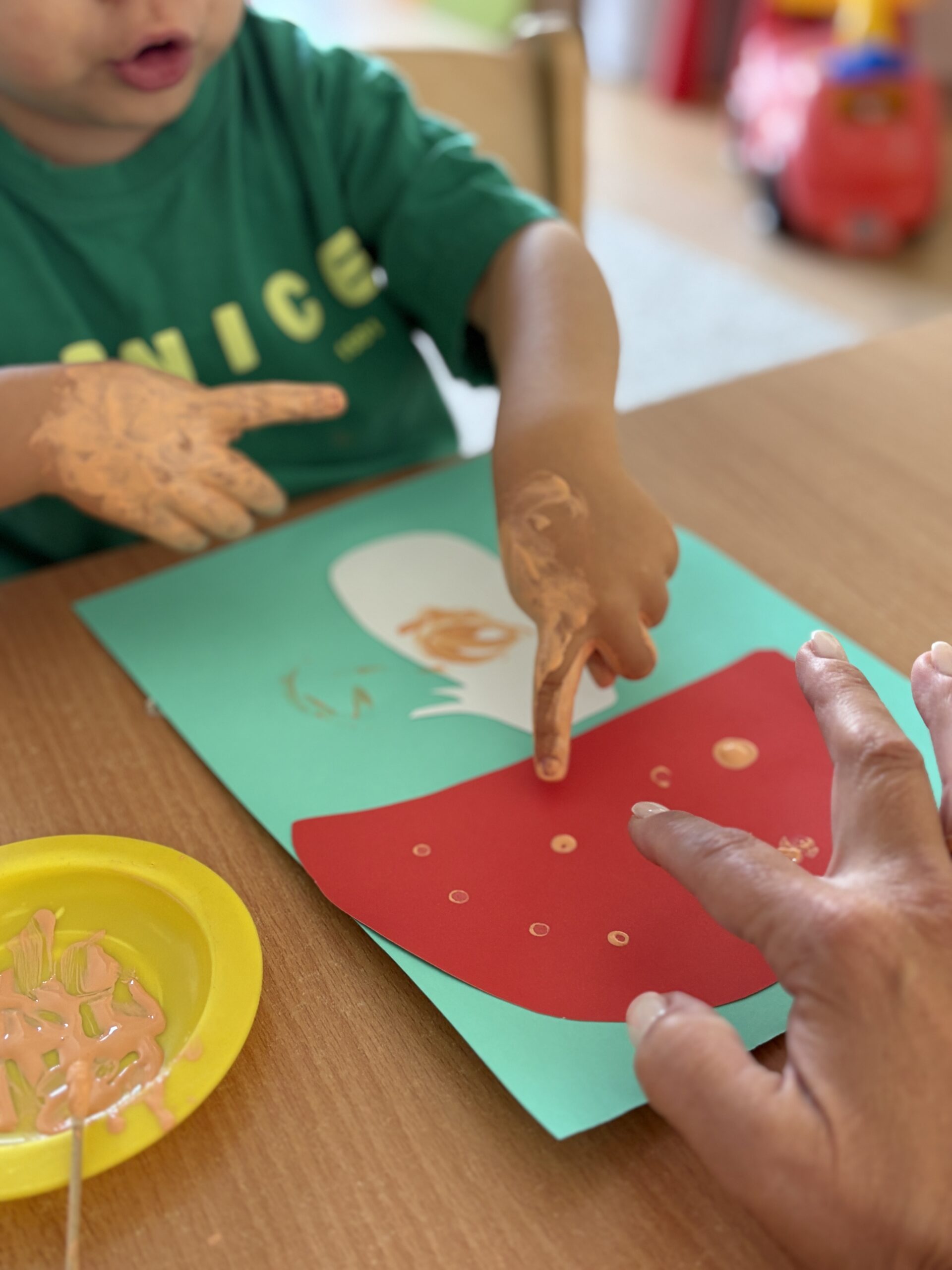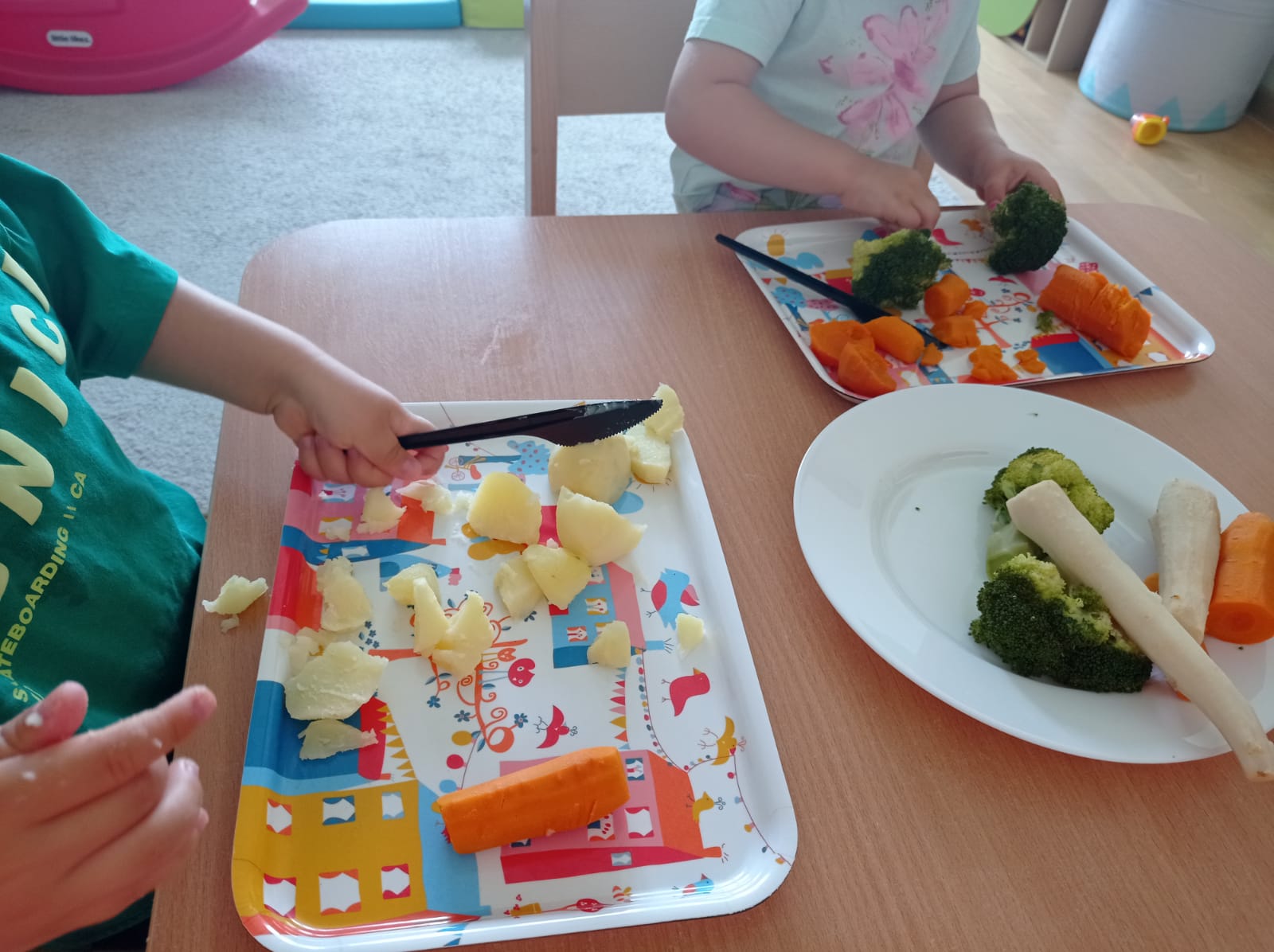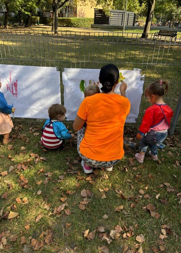 chętnie wykorzystujemy to, co daje nam natura: liście, patyczki, kasztany, zebrane na wakacjach muszle. Wykorzystujemy również produkty spożywcze do zabaw np.: nawlekamy makaron na patyczki, przesypujemy fasolki, mieszamy mąkę ziemniaczaną z farbami, tworząc sensoryczne oceany. Te zabawy nie tylko cieszą, ale wspierają rozwój małej i dużej motoryki, koordynacji i koncentracji. A skoro jesień tuż, tuż, to z radością rozpoczęliśmy sezon na jesienne piosenki z pokazywaniem oraz wierszyki, dzięki którym dzieci trenują mowę, pamięć i uwagę.