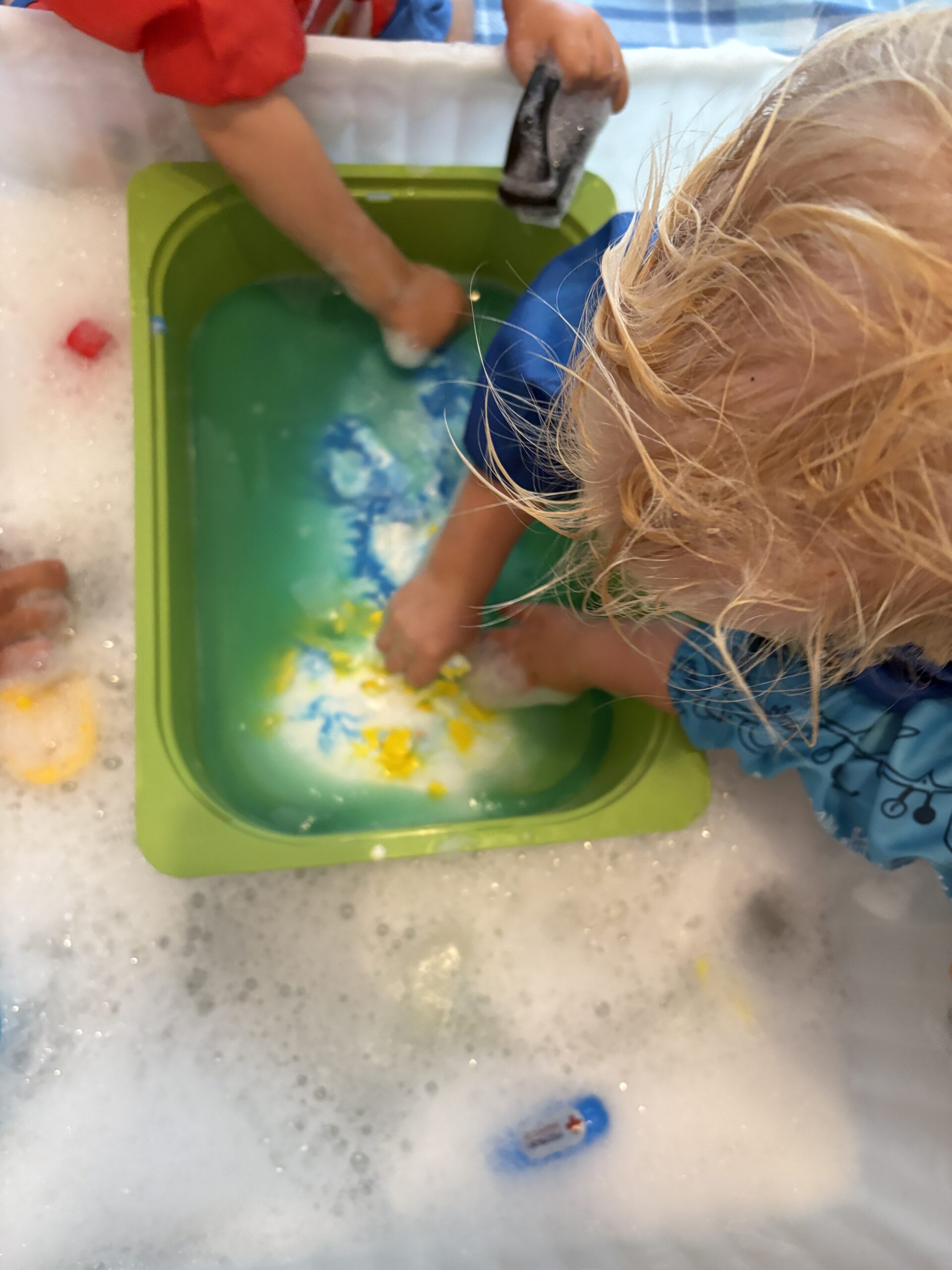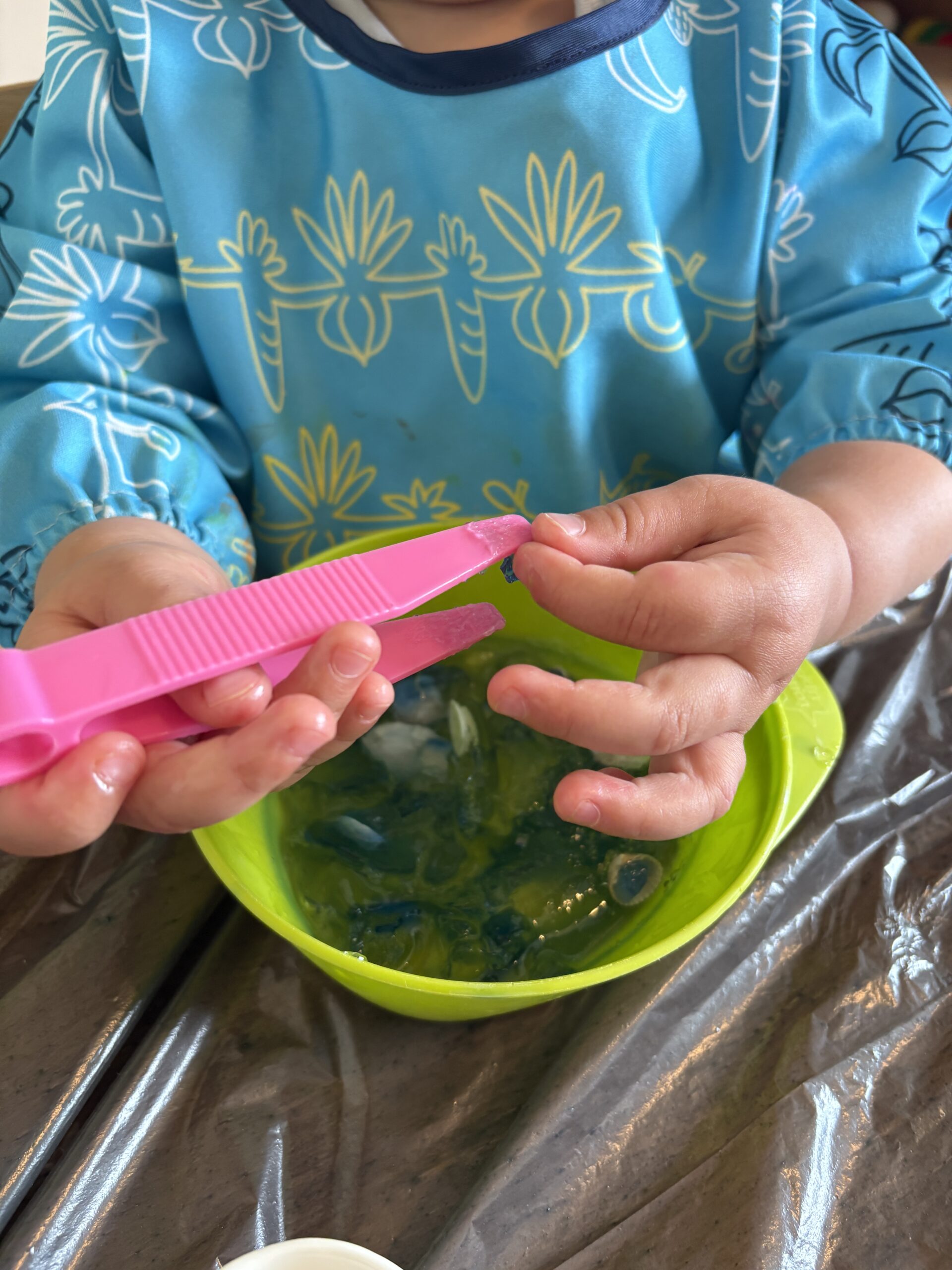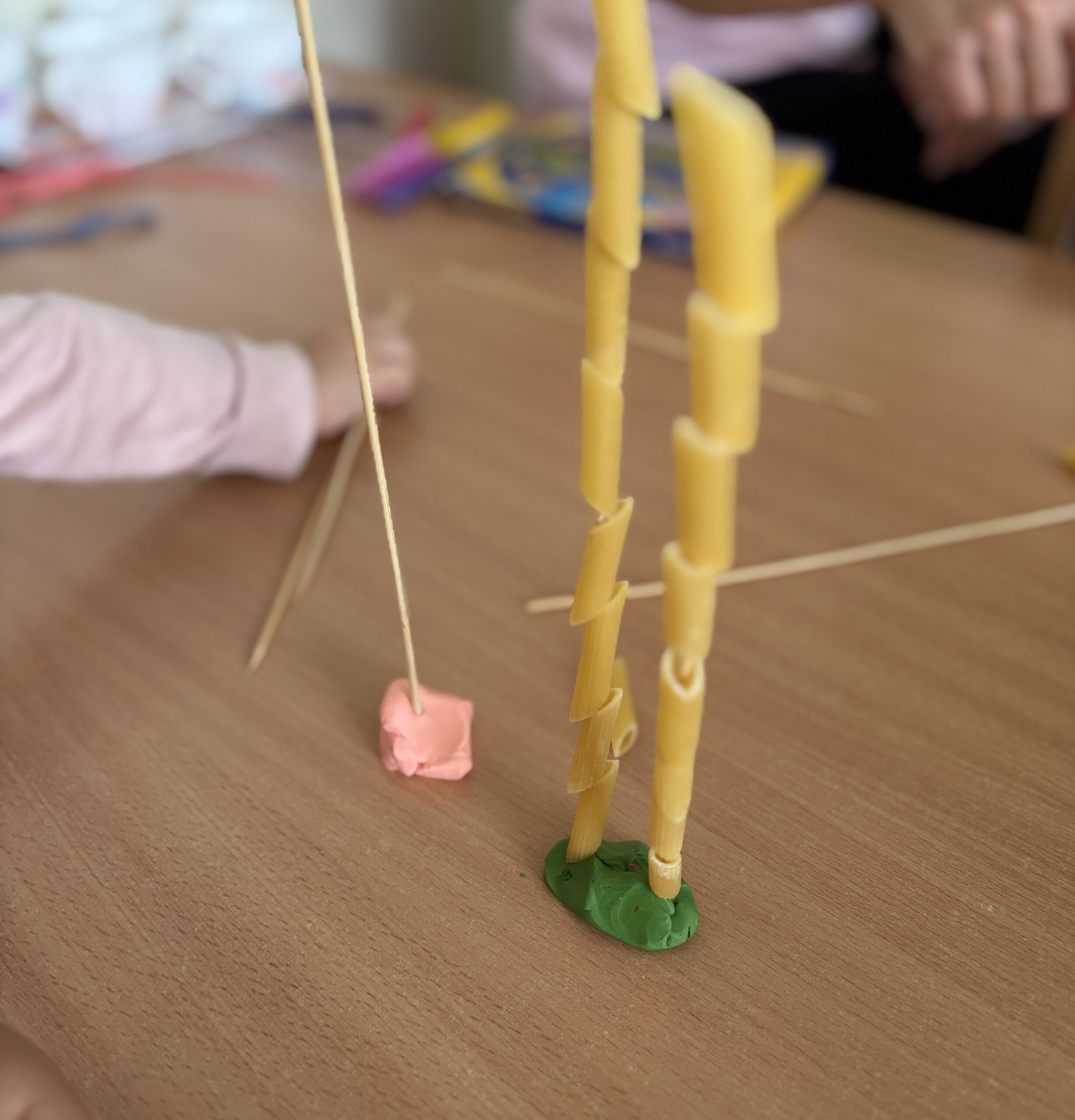 chętnie wykorzystujemy to, co daje nam natura: liście, patyczki, kasztany, zebrane na wakacjach muszle. Wykorzystujemy również produkty spożywcze do zabaw np.: nawlekamy makaron na patyczki, przesypujemy fasolki, mieszamy mąkę ziemniaczaną z farbami, tworząc sensoryczne oceany. Te zabawy nie tylko cieszą, ale wspierają rozwój małej i dużej motoryki, koordynacji i koncentracji. A skoro jesień tuż, tuż, to z radością rozpoczęliśmy sezon na jesienne piosenki z pokazywaniem oraz wierszyki, dzięki którym dzieci trenują mowę, pamięć i uwagę.