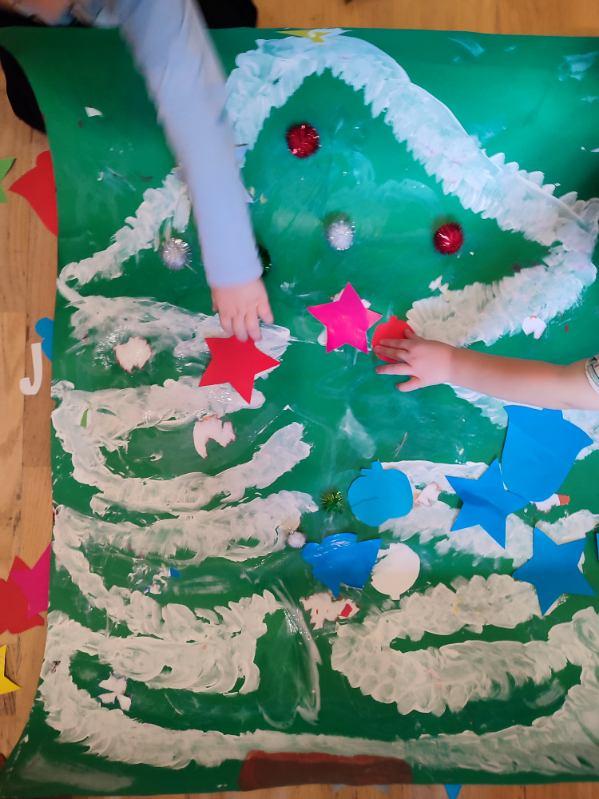 Dzieci brały udział w ubieraniu choinki, robieniu stroików świątecznych oraz ozdabianiu pierników, ćwicząc sprawność manualną i kreatywność. Codziennie odbywały się także zajęcia ruchowe, gimnastyka i tańce, które są stałym elementem naszych zajęć sportowych.