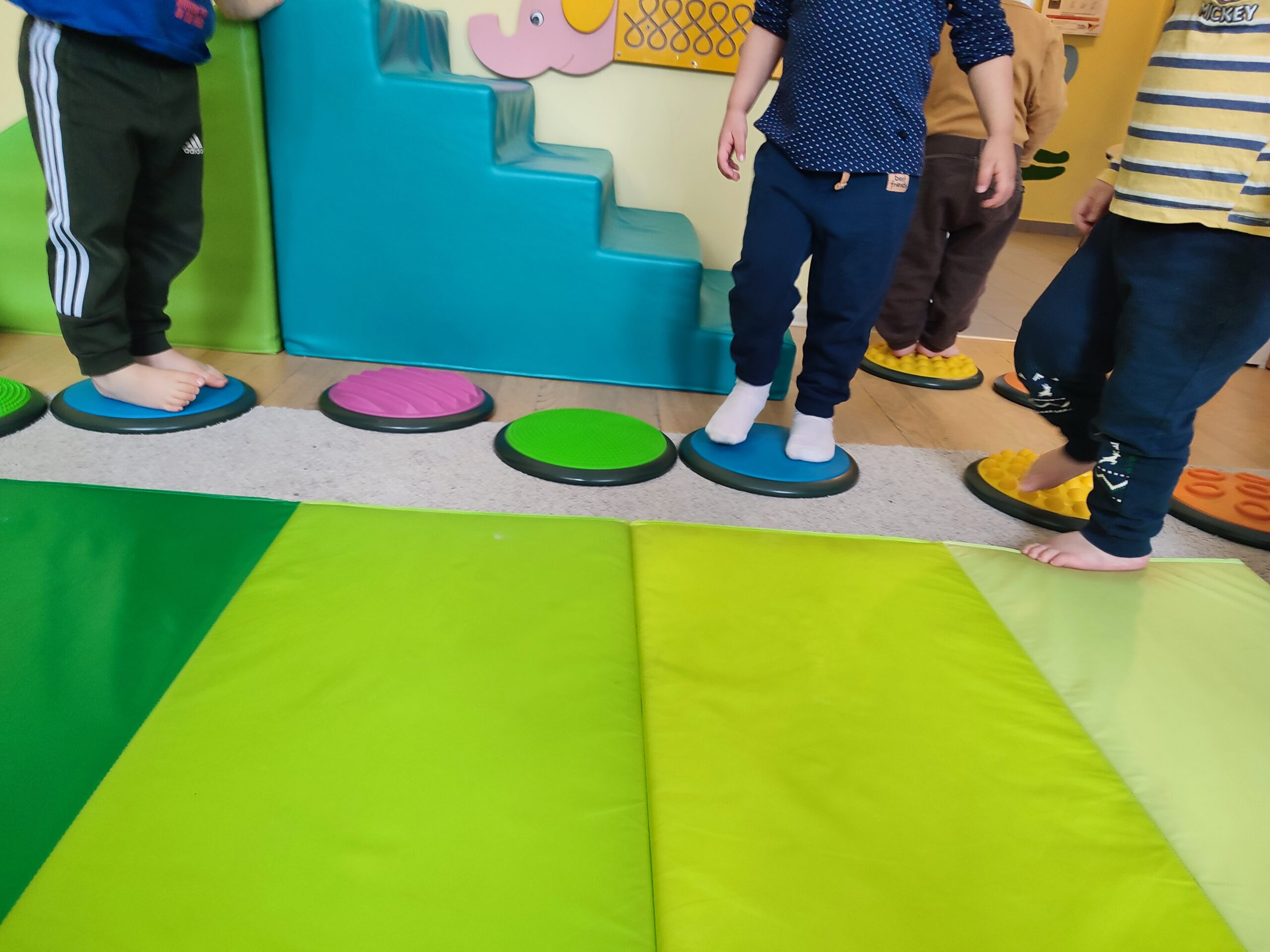Nie zabrakło także aktywności rozwijających zmysły – tor sensoryczny dostarczył wielu wrażeń dotykowych i ruchowych. Dzieci ćwiczyły równowagę, koordynację i odwagę.