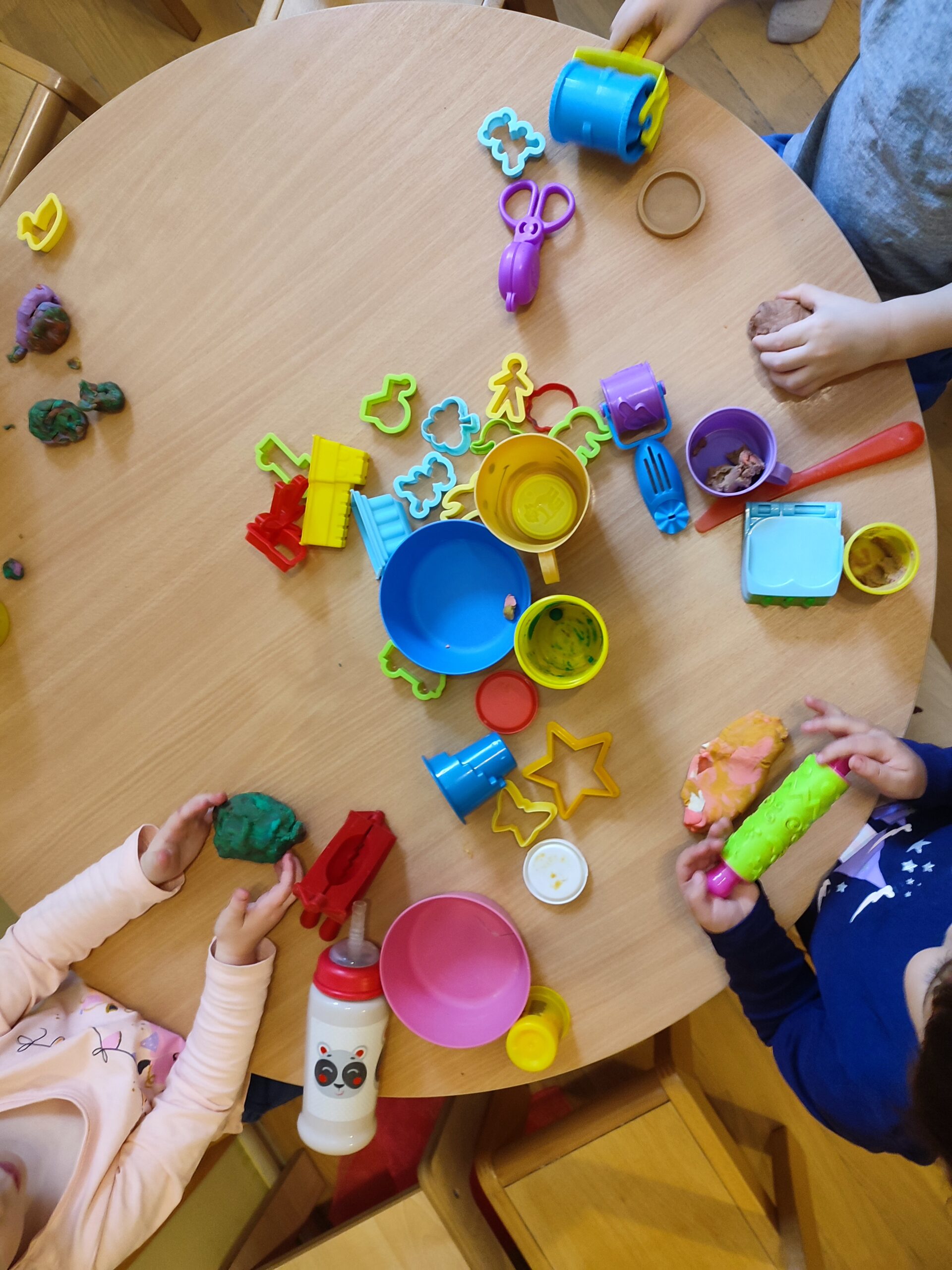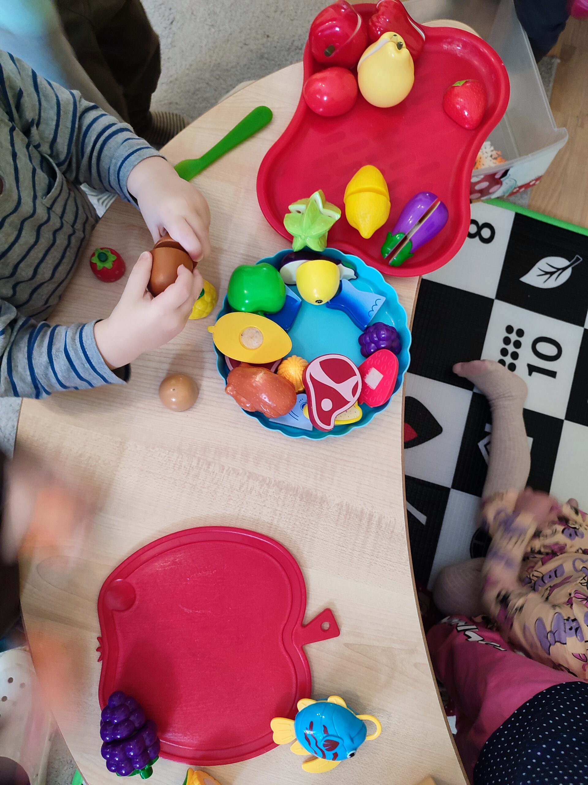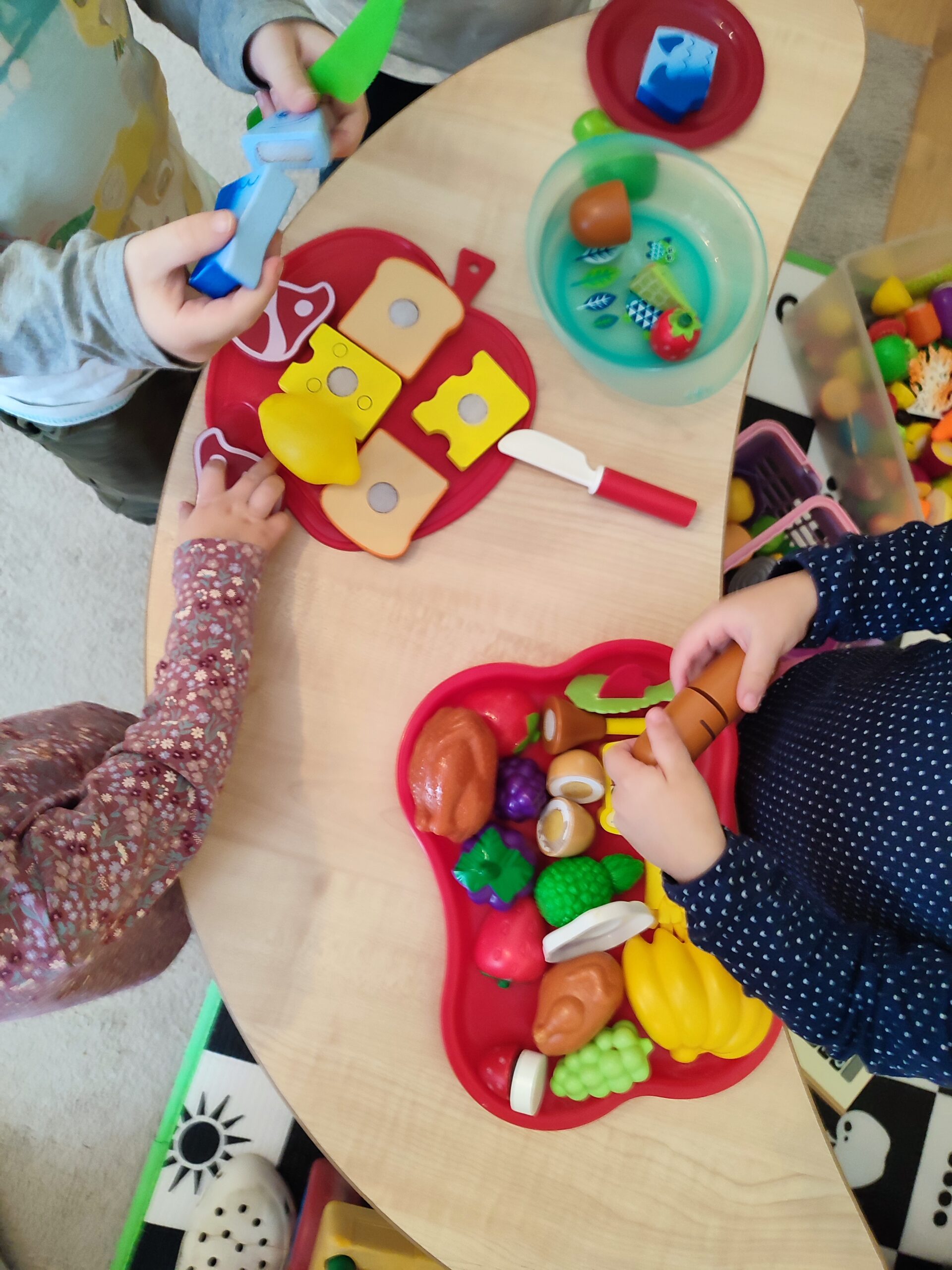 Nie zabrakło również zabaw tematycznych – dzieci z radością bawiły się w sklep oraz budowały bazę, rozwijając wyobraźnię i umiejętności społeczne. Świętowaliśmy także urodziny, ucząc się radości ze wspólnego celebrowania ważnych chwil.