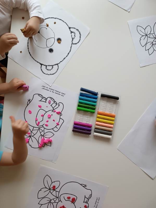 Luty w punkcie dziennego opiekuna byt czasem twórczych i radosnych aktywności. Dzieci rozwijały swoją wyobraźnię poprzez malowanie, wyklejanie oraz zabawy z plasteliną, a także z zaangażowaniem ozdabiały serduszka. Dużo radości przyniosły zabawy sensoryczne z wykorzystaniem wody, mąki i barwników spożywczych. Nie zabrakło również spacerów na świeżym powietrzu oraz zabaw muzyczno-ruchowych i tańców, które wspierały rozwój ruchowy i integrację grupy.