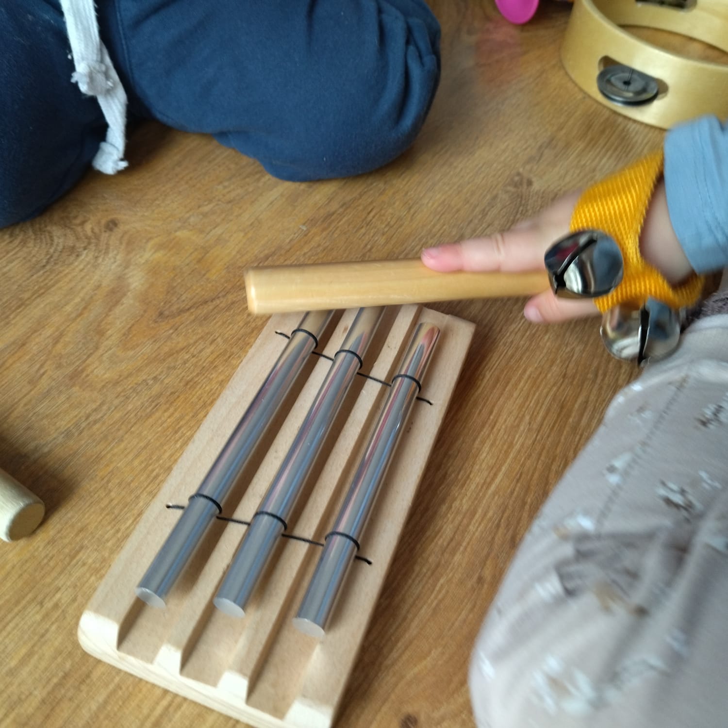 W czasie zajęć muzycznych dzieci miały okazję grać na różnych instrumentach. Korzystając z gościnności zaprzyjaźnionego żłobka mogliśmy również posłuchać dźwięków wiolonczeli. To było wyjątkowe doświadczenie.