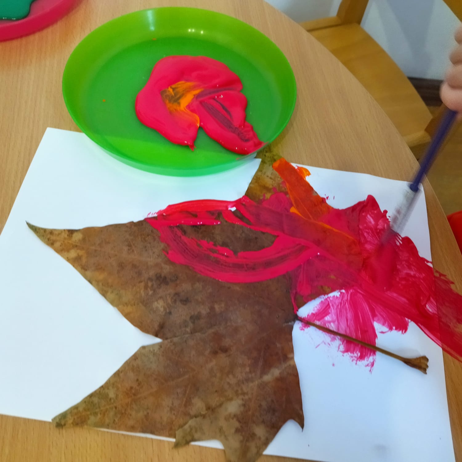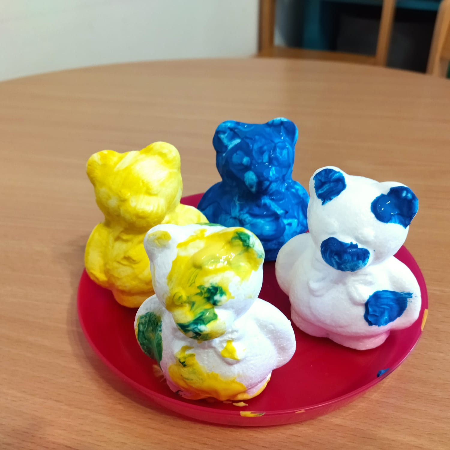 Listopad upłynął nam w radosnej i pełnej wrażeń atmosferze. Pamiętaliśmy o rocznicy odzyskania przez Polskę niepodległości. Z tej okazji wspólnie wykleiliśmy biało-czerwoną flagę. Na Dzień pluszowego misia też byliśmy przygotowani: śpiewaliśmy piosenkę „Jadą misie”, a każde z dzieci pomalowało misia na swój ulubiony kolor.