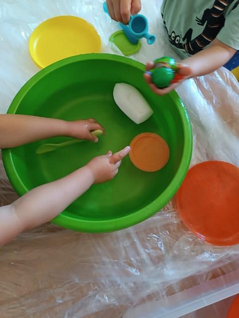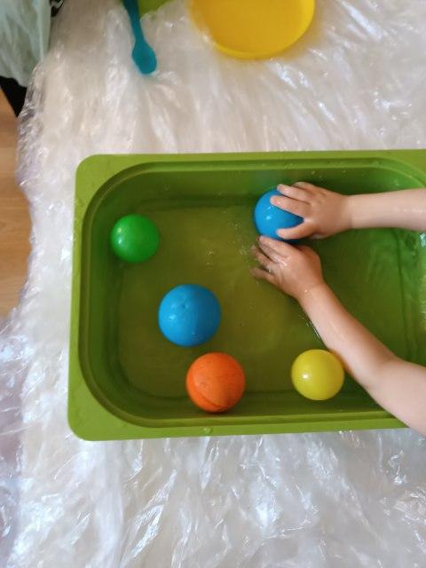 Gdy na dworze panował upał szukaliśmy ochłody robiąc warsztaty wodne.Puszczaliśmy statki na wodzie,przelewaliśmy z kubeczka do kubeczka , kąpaliśmy figurki zwierzątek.Radości było ,co nie miara.