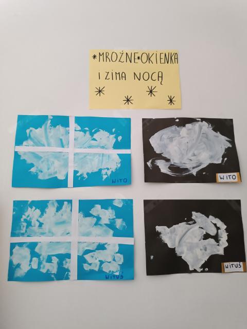 Pod koniec stycznia mróz mocno chwycił i zainspirował nas do stworzenia mroźnych okienek i nocnego ,zimowego krajobrazu.Mróz zimą maluje lepiej niż niejeden malarz.