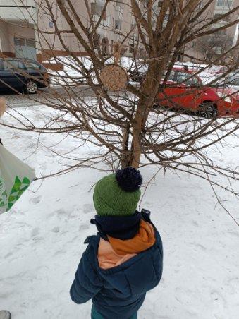 Nie zapomnieliśmy również o naszych skrzydlatych przyjaciołach, którym ciężko znaleźć pożywienie w taką pogodę.Zajadały pożywne kule z ziarenkami, które powiesiliśmy na gałązkach drzew.