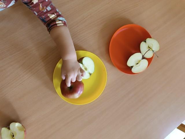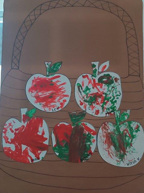 28 września był dzień Jabłka.Z tej okazji wykonaliśmy pracę plastyczną.Każdy malował paluszkami umoczonymi w farbie swój owoc.Oprócz malowania nie mogło oczywiście zabraknąć degustacji prawdziwych jabłek.Obserwowaliśmy też co jabłko ma w środku.Wszyscy byli zadowoleni,a owoce zniknęły z talerzyków w okamgnieniu.