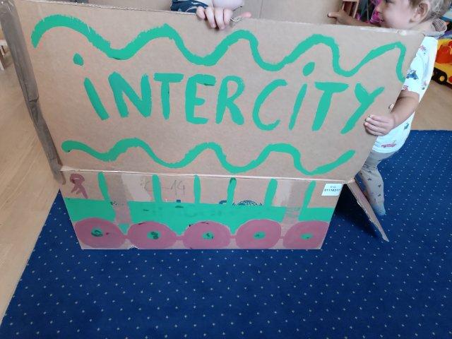 Z kartonu zrobiliśmy też pociąg do którego wszyscy chętnie wchodzili.Wszak 16 września obchodzony był dzień Maszynisty,wyklejaliśmy ciuchcie.