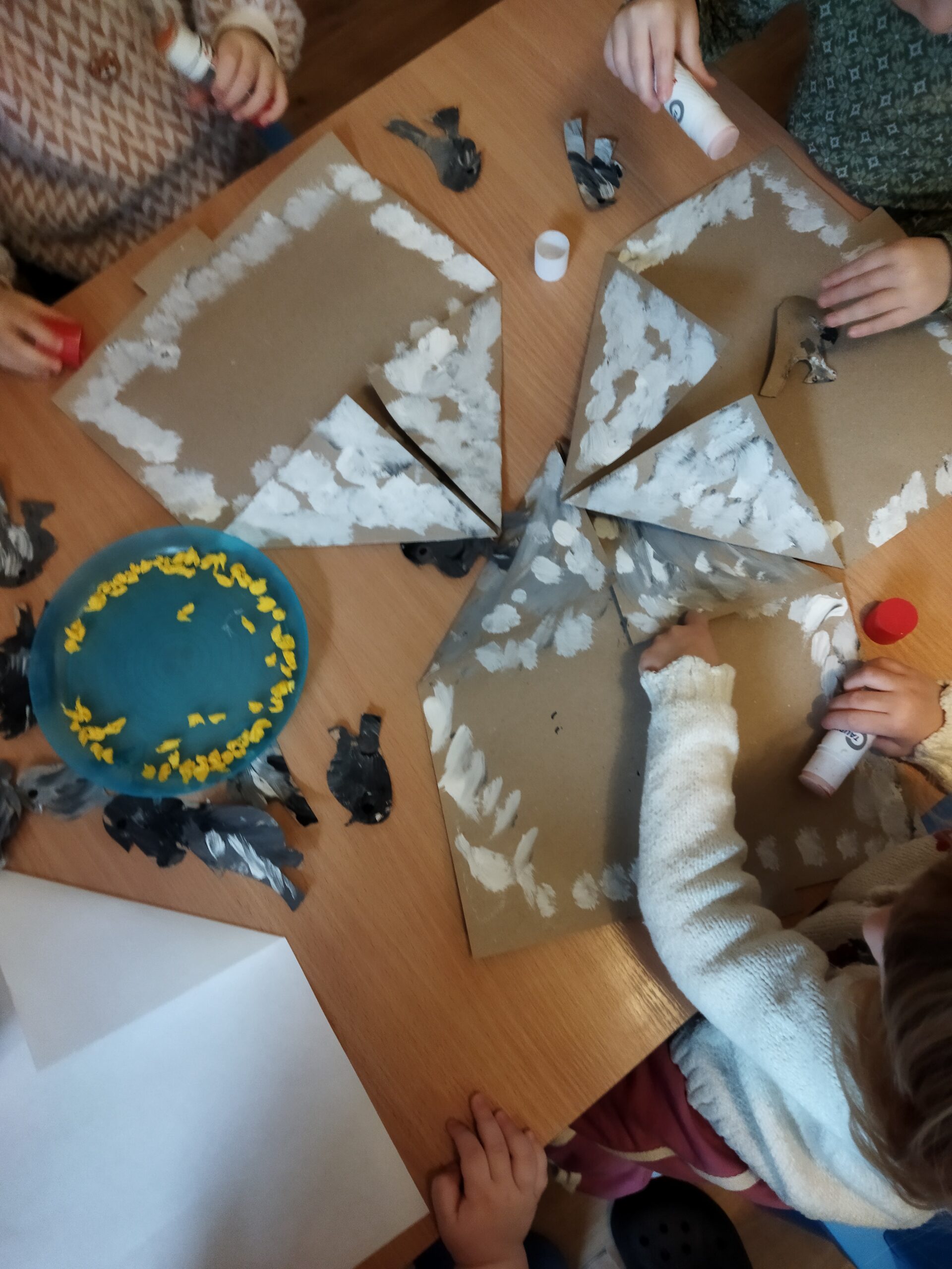 - Tworzyliśmy własne bałwanki z płatków kosmetycznych i papieru, co świetnie rozwijało sprawność paluszków.