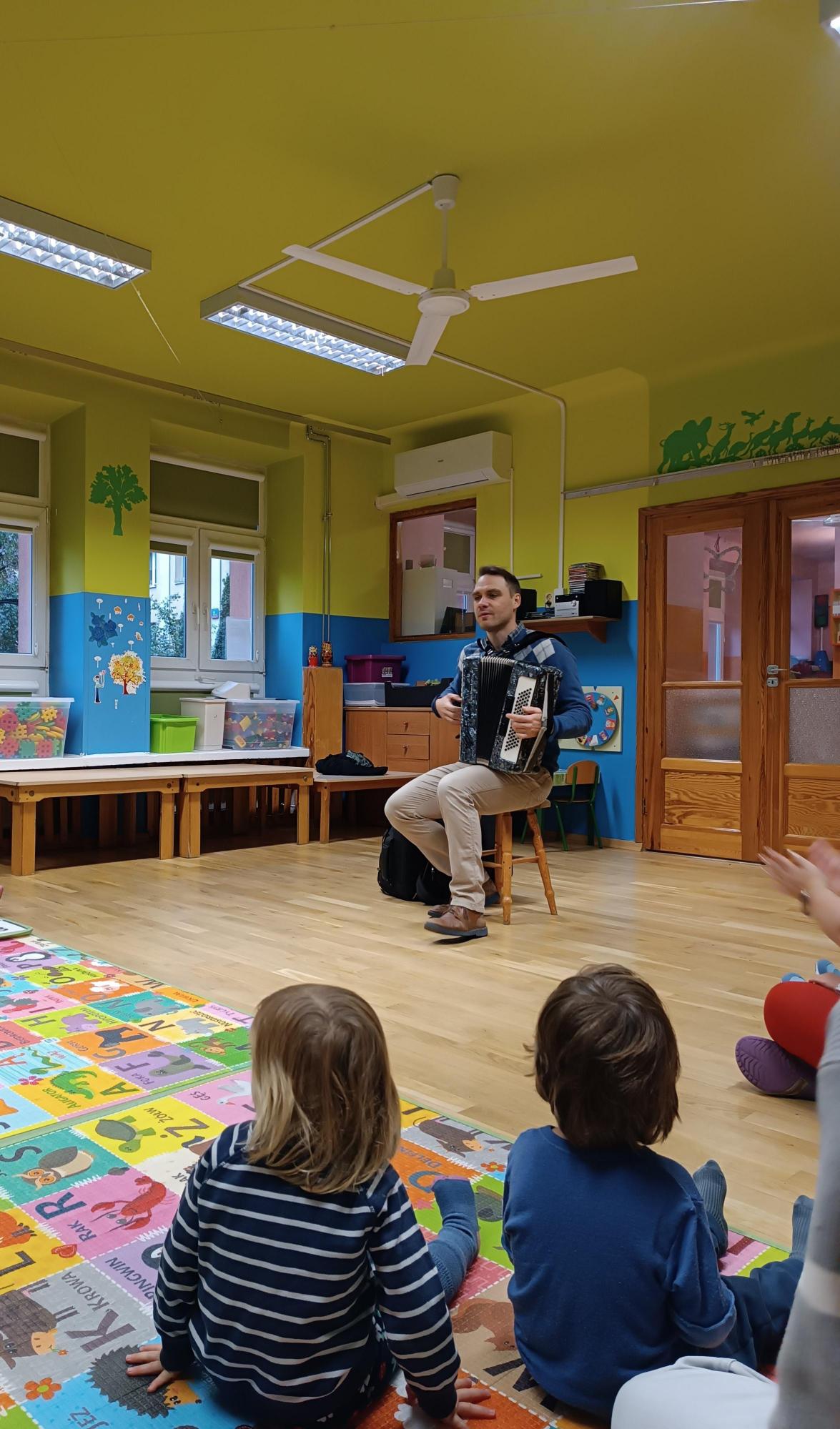 W październiku udało nam się również uczestniczyć w występie artystycznym. Tym razem poznawaliśmy dźwięki akordeonu, a nawet mieliśmy okazję sprawdzić, jak to jest grać na tym instrumencie.