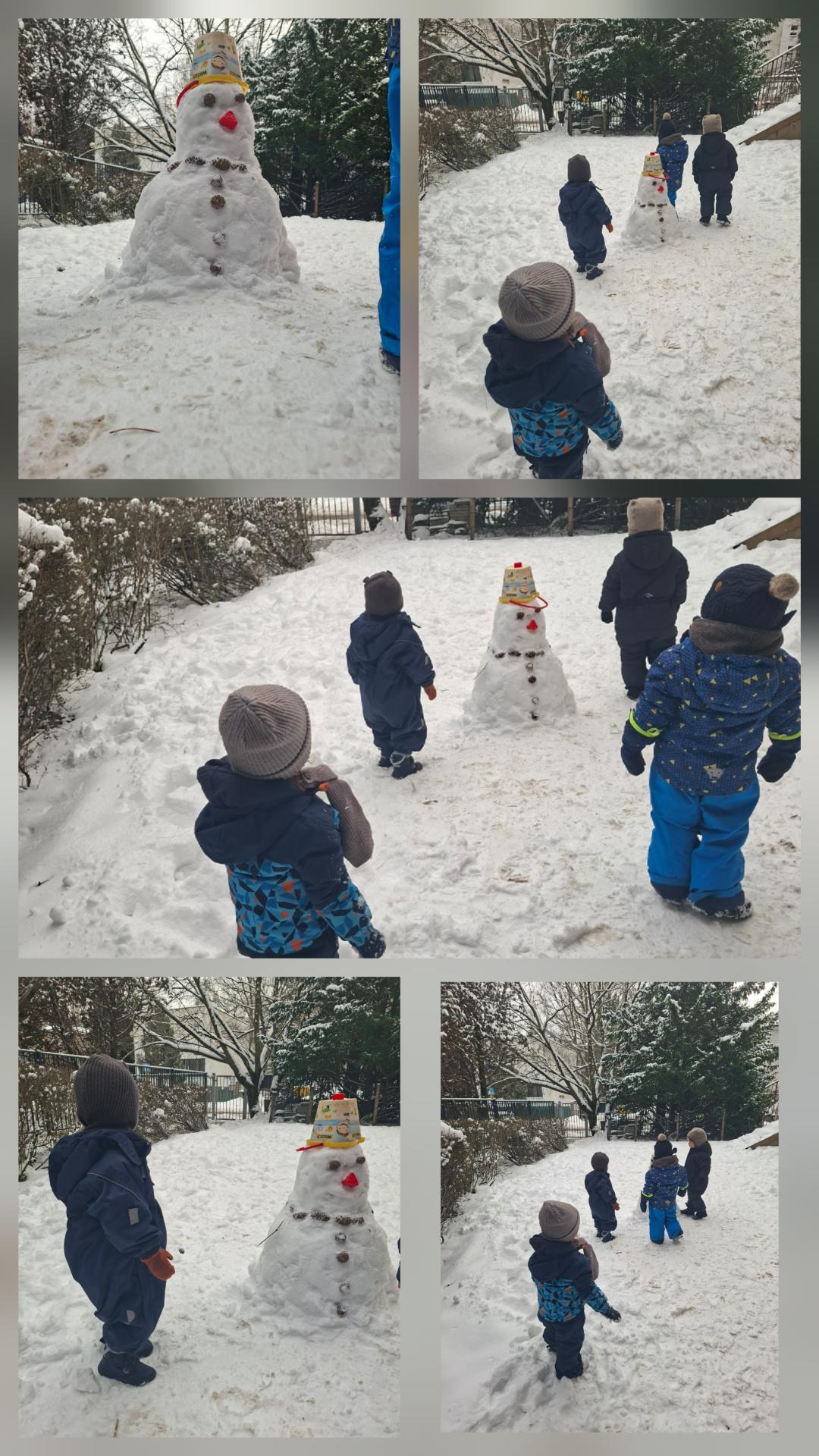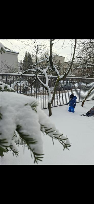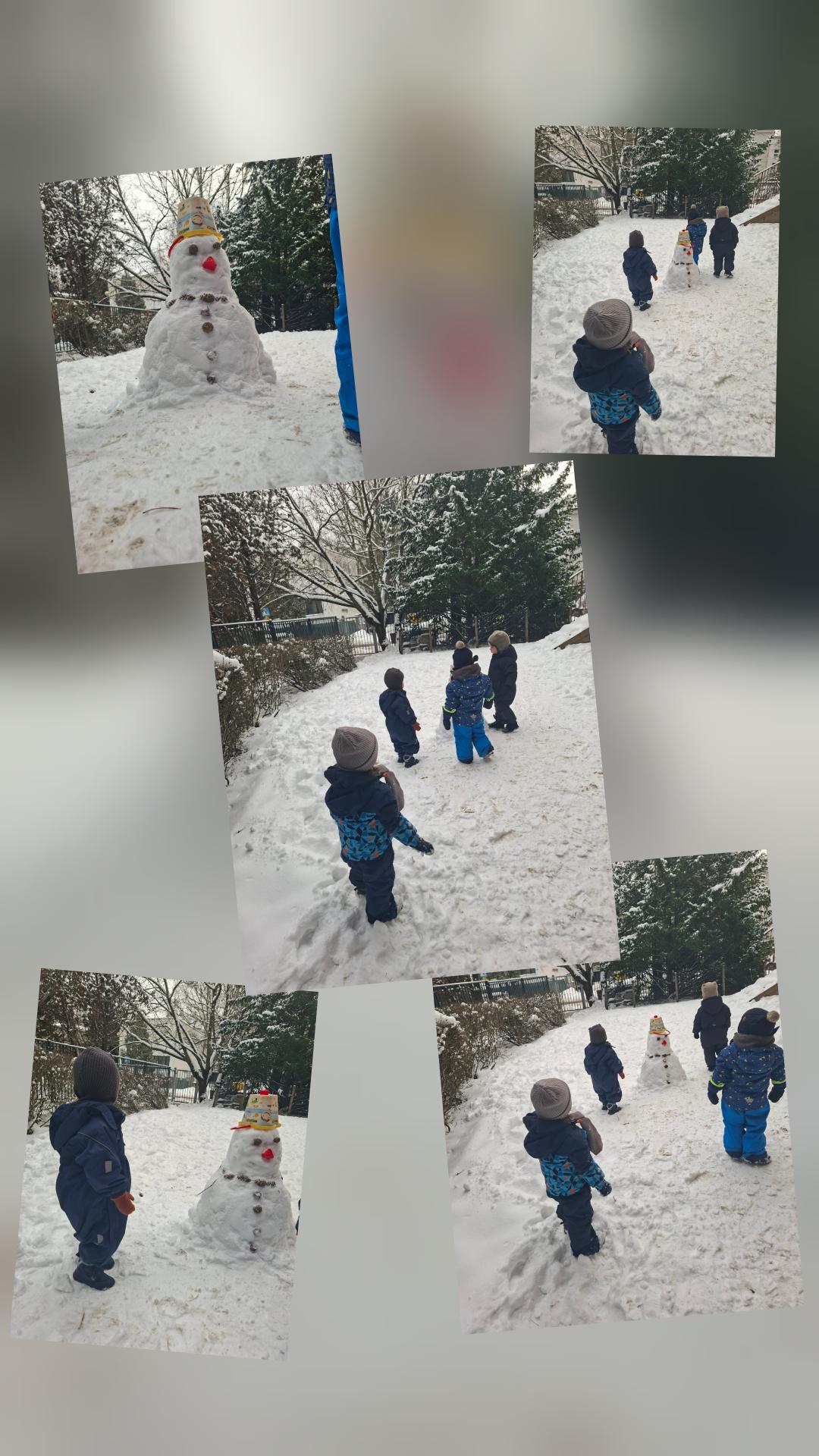 Zabawa w ogrodzie sprawiła dzieciom wiele frajdy, a wspólnymi siłami udało nam się ulepić dużego bałwana, który teraz zdobi nasz plac zabaw.