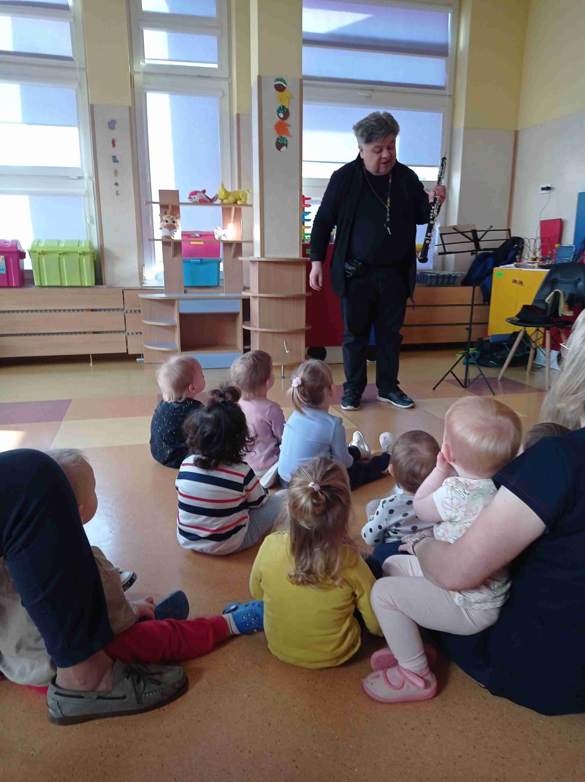 Odwiedził nas również Pan z instrumentem obój, przybliżył nam jego budowę oraz zagrał nam krótkie utwory, żeby dzieci mogły poznać dźwięki.