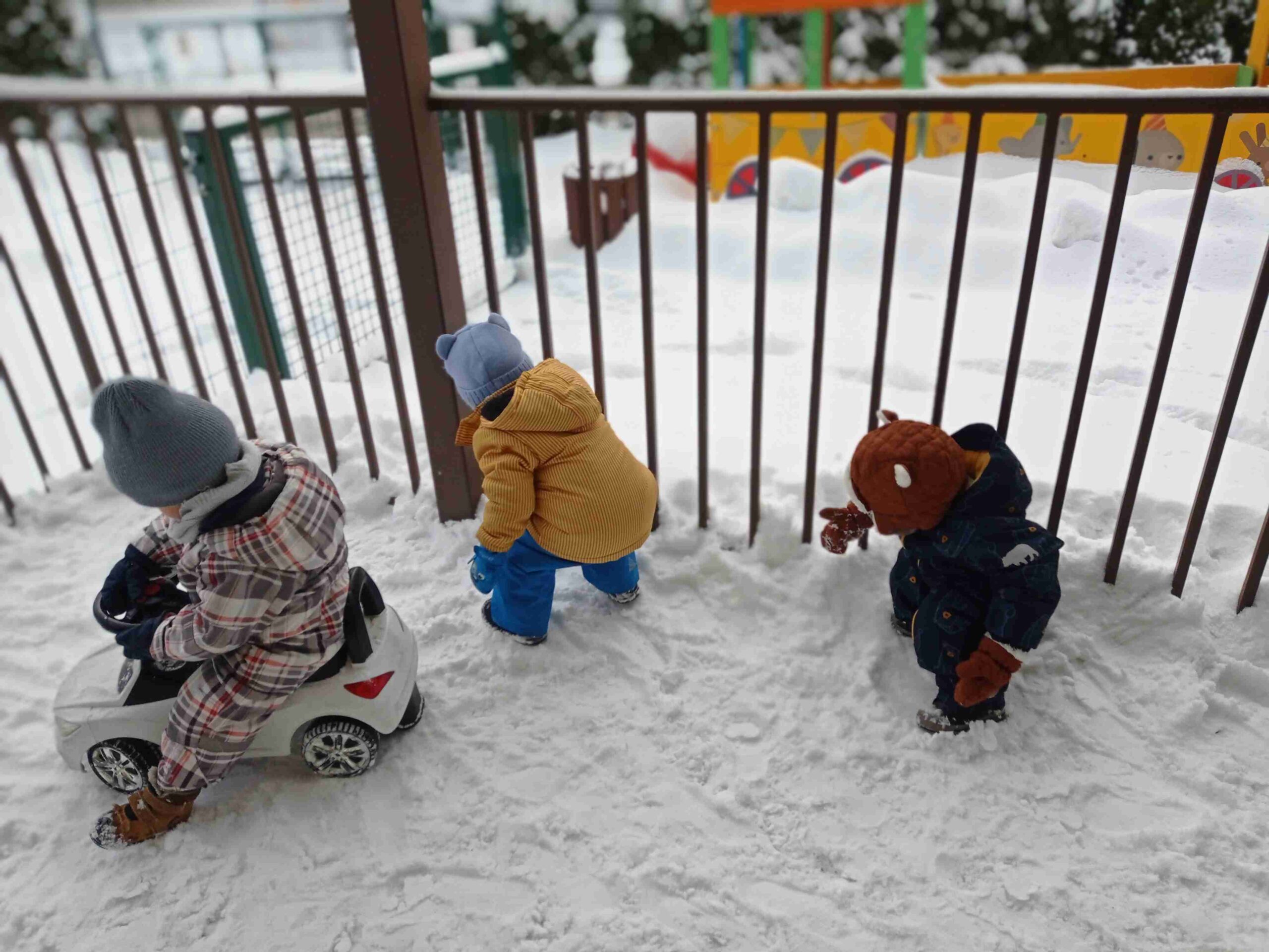 Styczeń obdarował nas ogromnymi ilościami śniegu, dlatego korzystaliśmy każdego dnia ze świetnej zabawy w białym zimowym ogródku żłobkowym. Jeździliśmy na sankach, lepiliśmy bałwana, była bitwa na śnieżki oraz robiliśmy aniołki na śniegu.