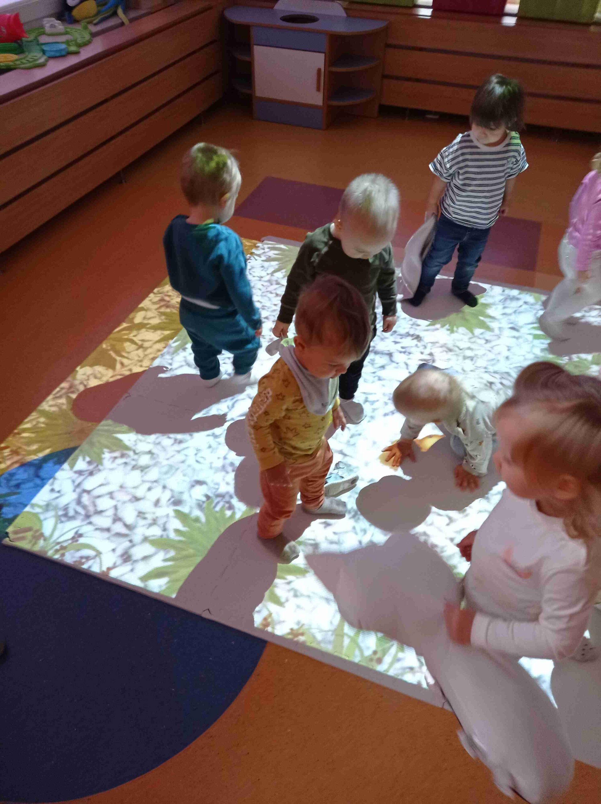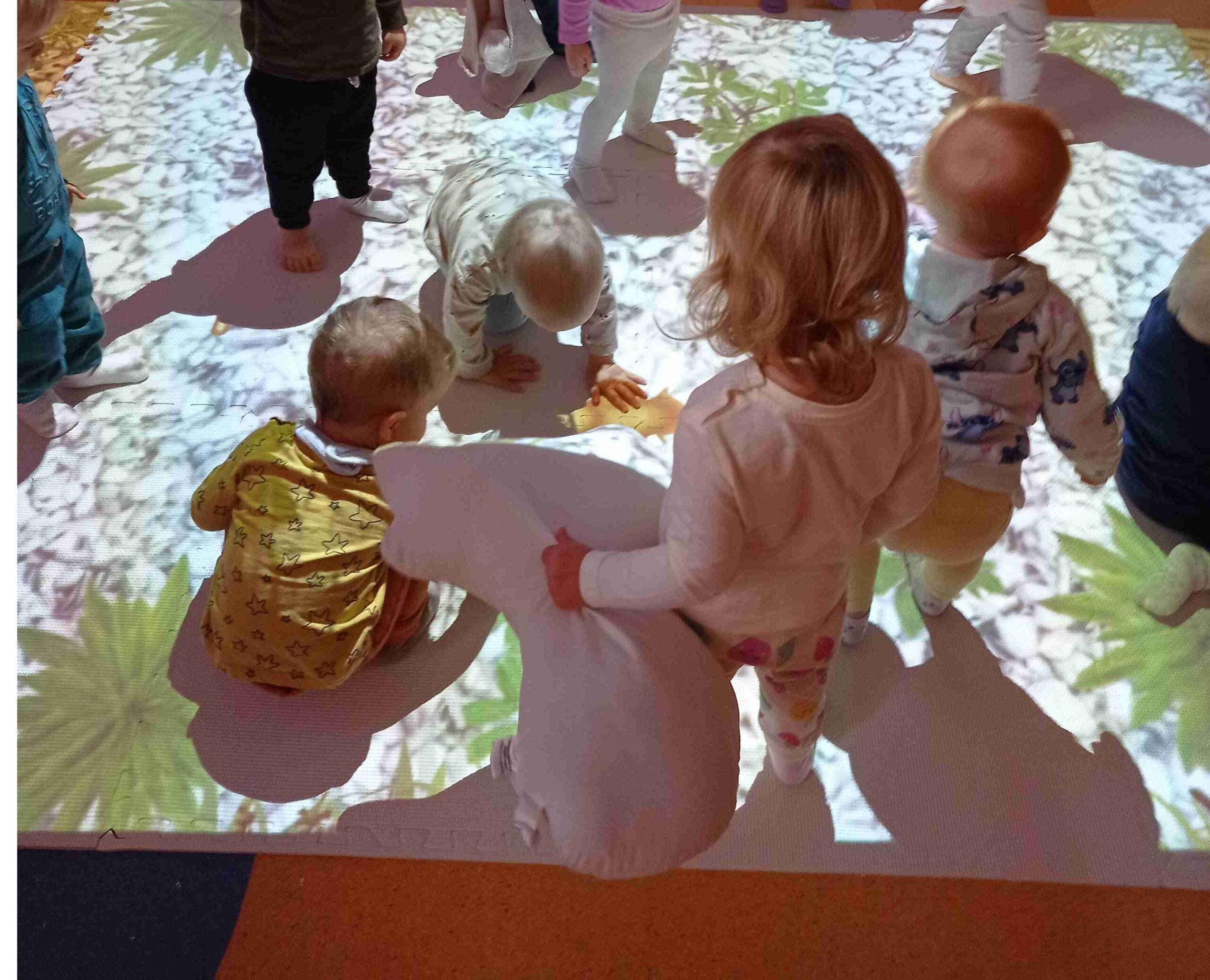 Podłoga interaktywna, która pozwala sterować obrazem za pomocą ruchu, dłoni. Posiadamy w Żłobku nr 39 statyw mobilny, który pozwala swobodnie przenosić ją w różne miejsca, a dodatkowo jego regulacja umożliwia dostosowanie obrazu do dostępnej powierzchni.W Filii Żłobka nr 39 została zamontowana na stałe co umożliwia dzieciom super zabawę podczas zajęć edukacyjnych.