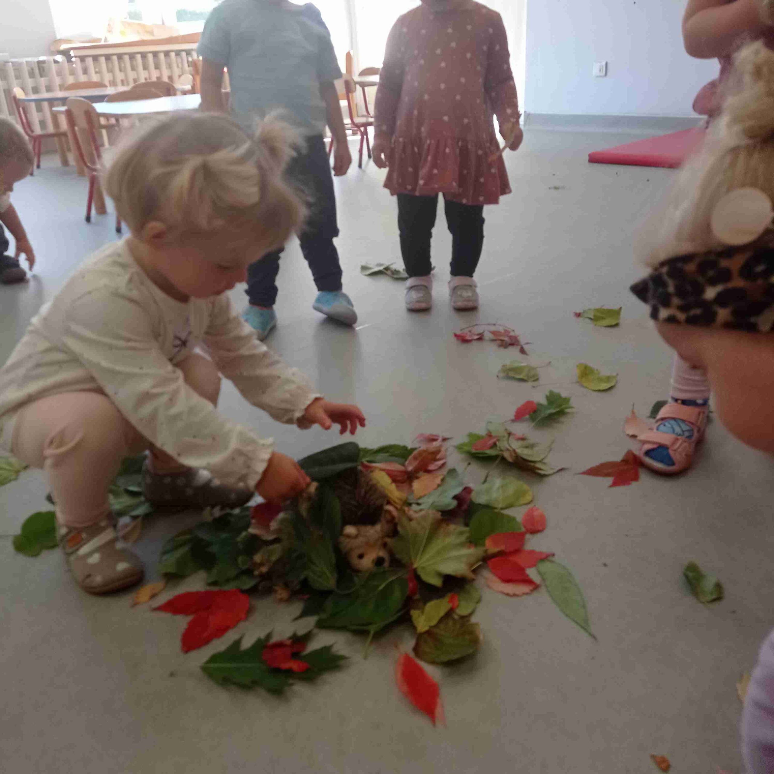 Wrzesień to miesiąc adaptacji w naszym Żłobku, ale na tym nie poprzestajemy. Dzieci korzystały z pięknej pogody na naszym placu zabaw, w dniu kropki szukały ukrytej kropeczki w sali, robiły z liści domek dla jeżyka, który zapada w sen zimowy nie długo a także sadziły w ogrodzie Jabłonkę.