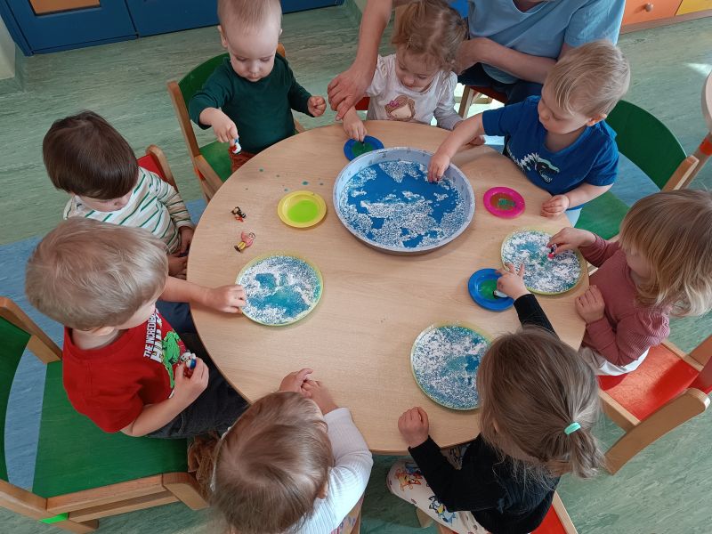Grudzień w naszym żłobku upłynął w wyjątkowo świątecznej atmosferze. Dzieci z radością uczestniczyły w zimowych zabawach plastycznych, przygotowując dekoracje i małe upominki. Najwięcej emocji przyniosło długo wyczekiwane spotkanie ze Świętym Mikołajem, które wywołało wiele uśmiechów i wzruszeń. W grudniu odbyły się także spotkania z rodzicami w grupach – był to piękny czas wspólnego świętowania, integracji i budowania ciepłych relacji. 🎄✨