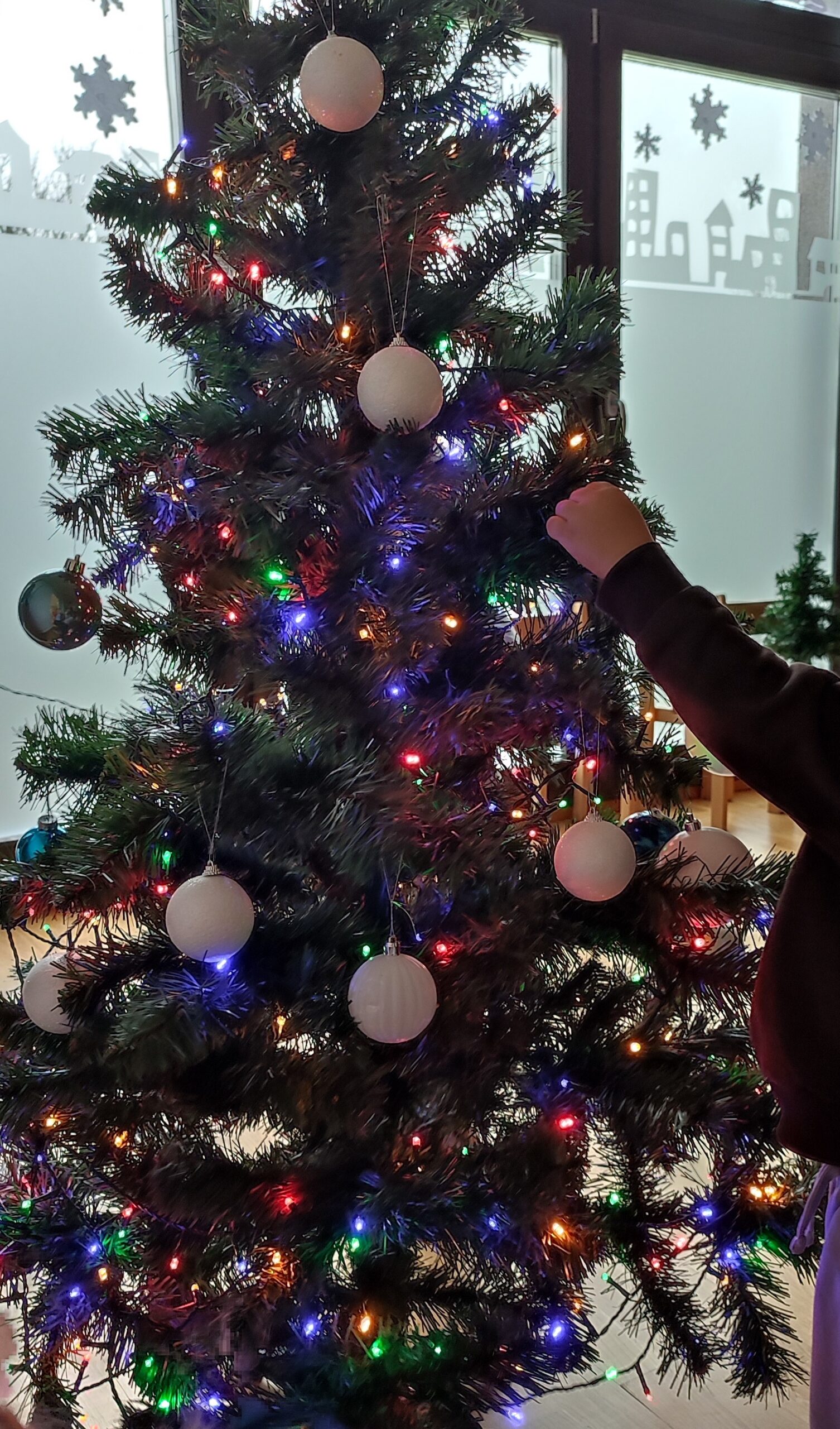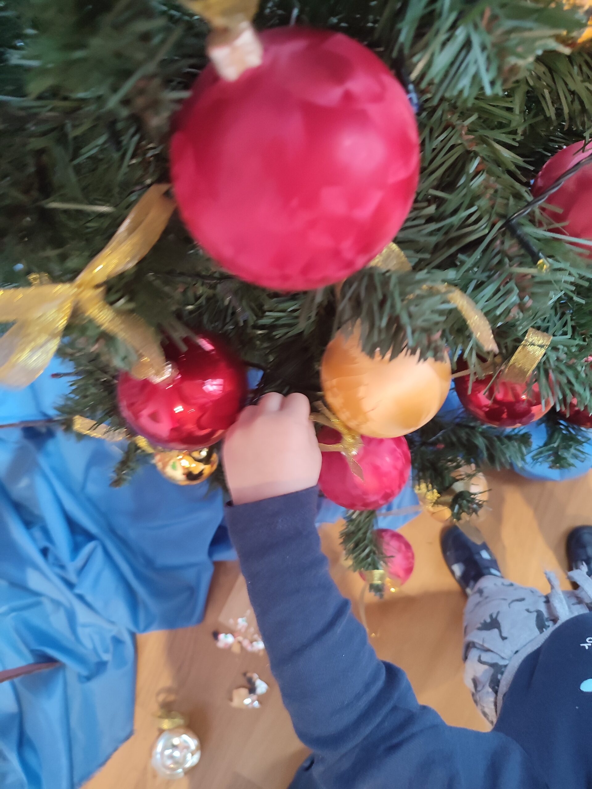 Podczas Mikołajek odwiedził nas Mikołaj z prezentami 🎁, co wywołało mnóstwo uśmiechów i radości 😄. Wspólnie ubieraliśmy choinkę 🎄, rozwijając kreatywność, sprawność manualną i umiejętność współpracy. 🤝💛
