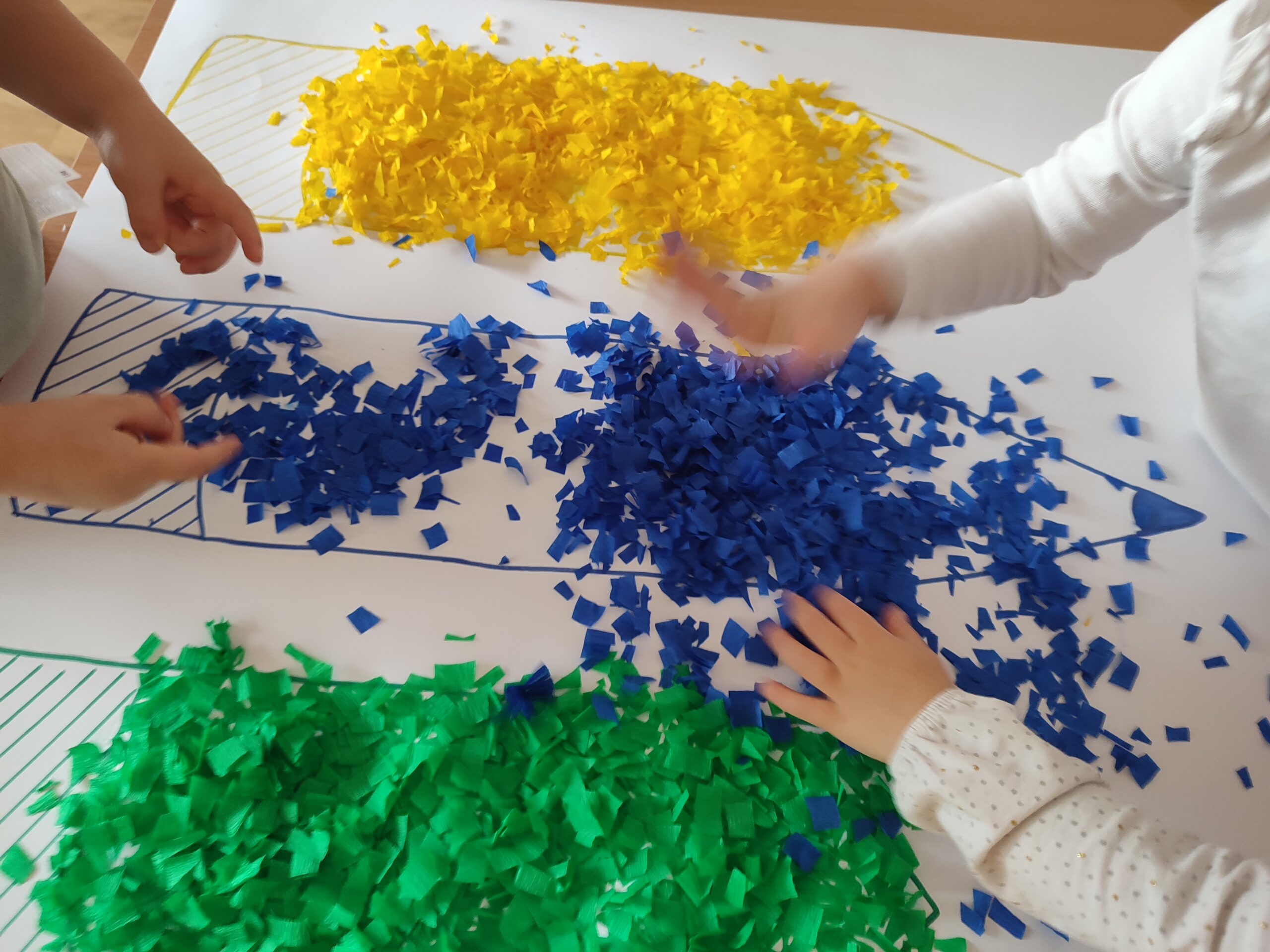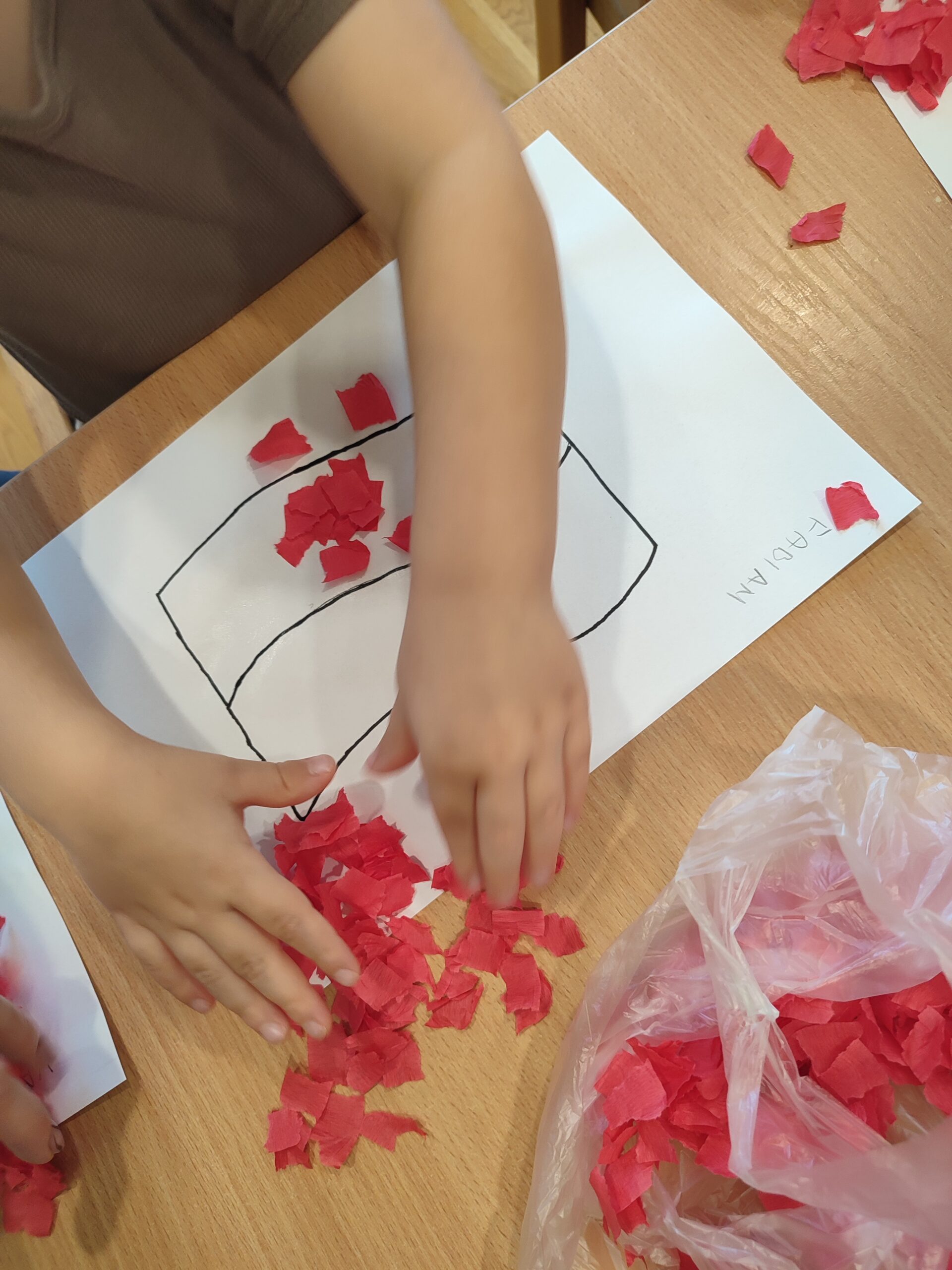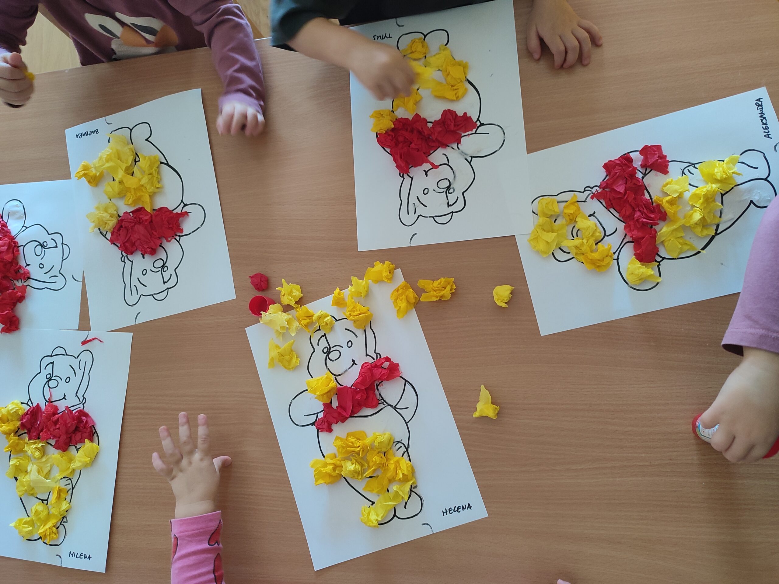W listopadzie rozmawialiśmy także o barwach Polski – bieli i czerwieni 🇵🇱. Dzieci wykonywały własne flagi w formie prac plastycznych 🎨