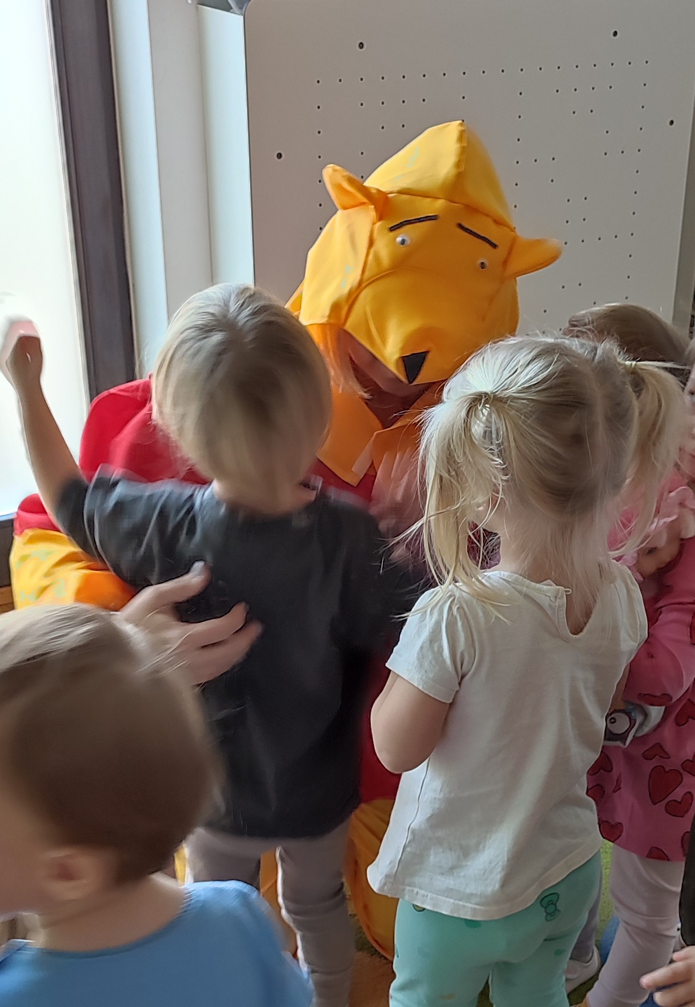 Dużo uśmiechów przyniósł nam także Dzień Pluszowego Misia 🐻. Odwiedził nas ogromny, przytulaśny miś, a maluchy mogły zaprezentować swoje ulubione pluszaki. Wspólne zabawy z misiem sprzyjały rozwijaniu odwagi, naśladowania ruchów oraz budowaniu relacji rówieśniczych.