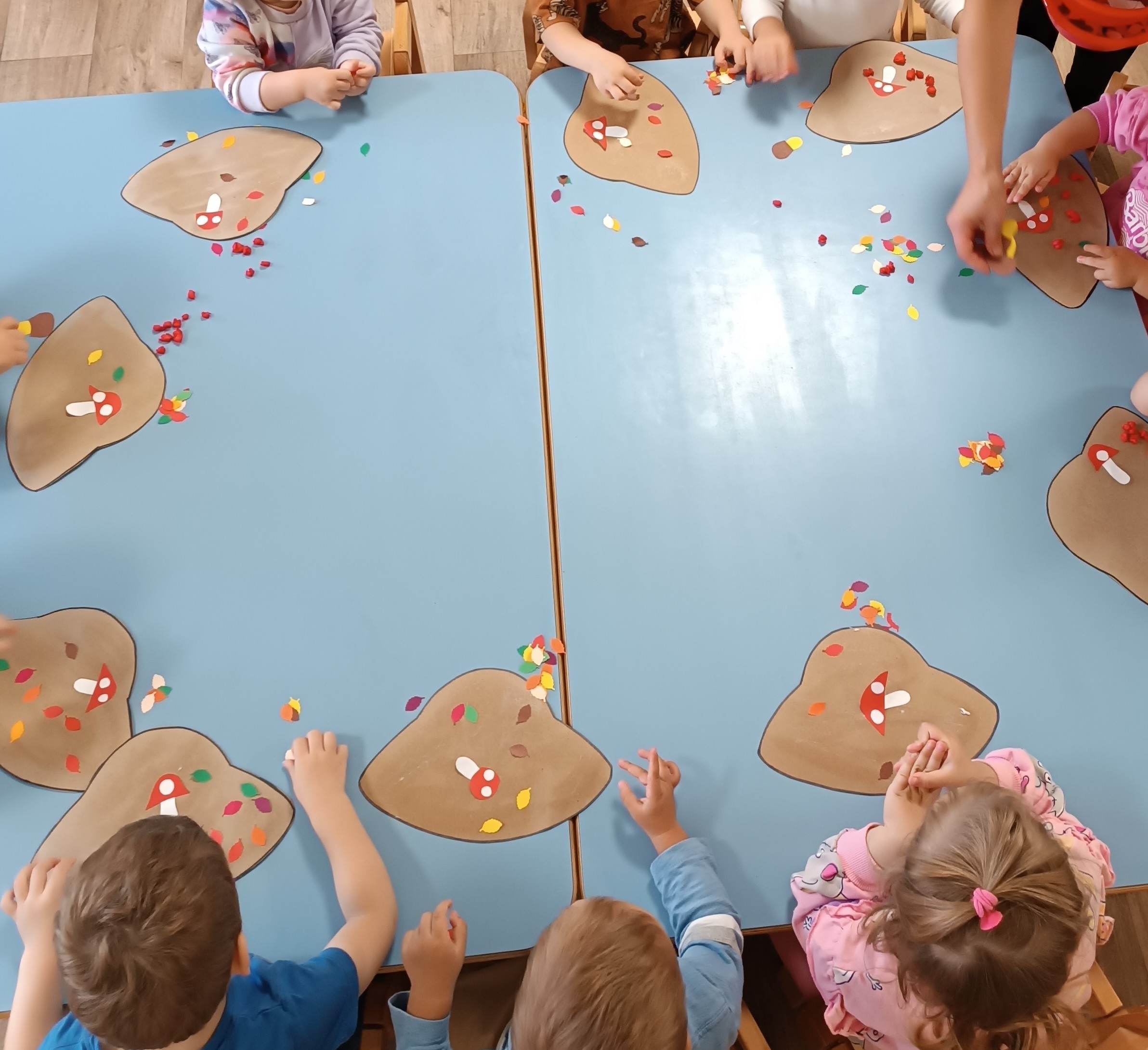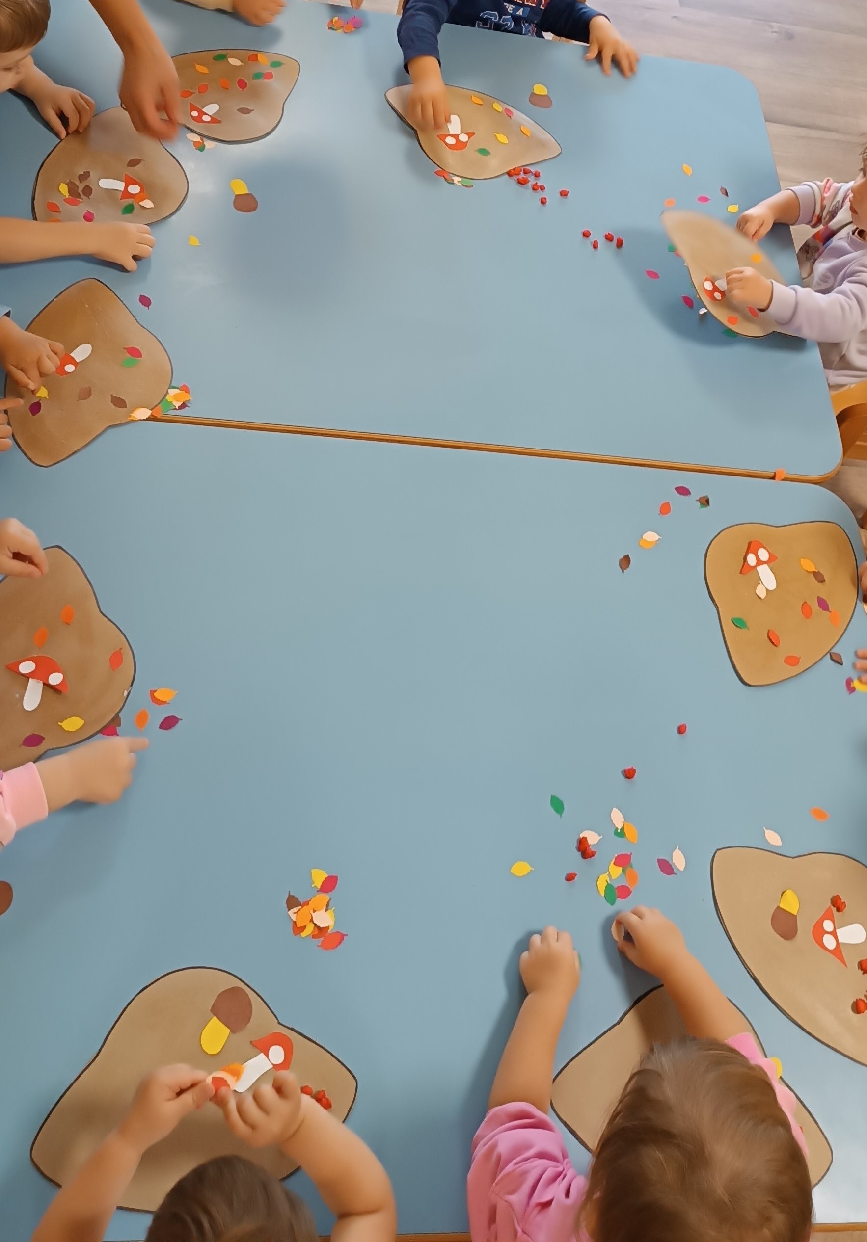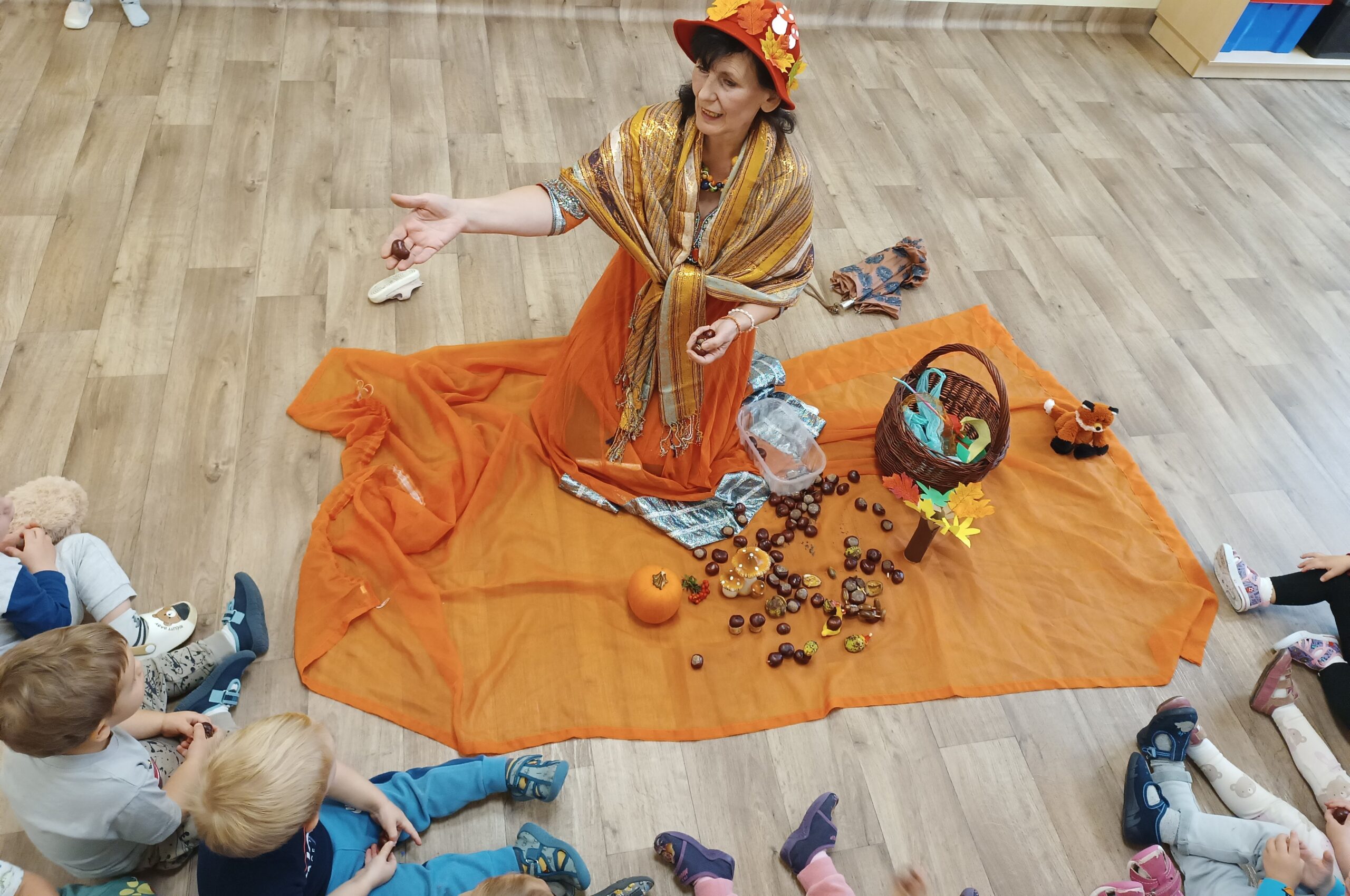 We wrześniu odwiedziła nas Pani Jesień 👒 z koszem pełnym liści, kasztanów i owoców 🍎. Dzieci tworzyły piękne jesienne kapelusze i kolorowe prace plastyczne 🎨.