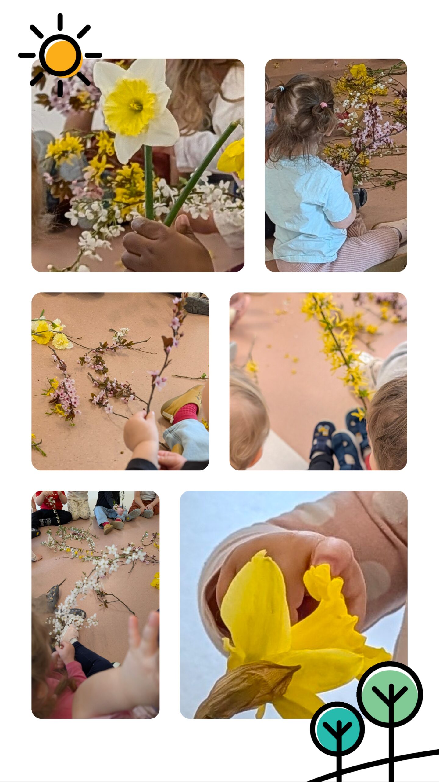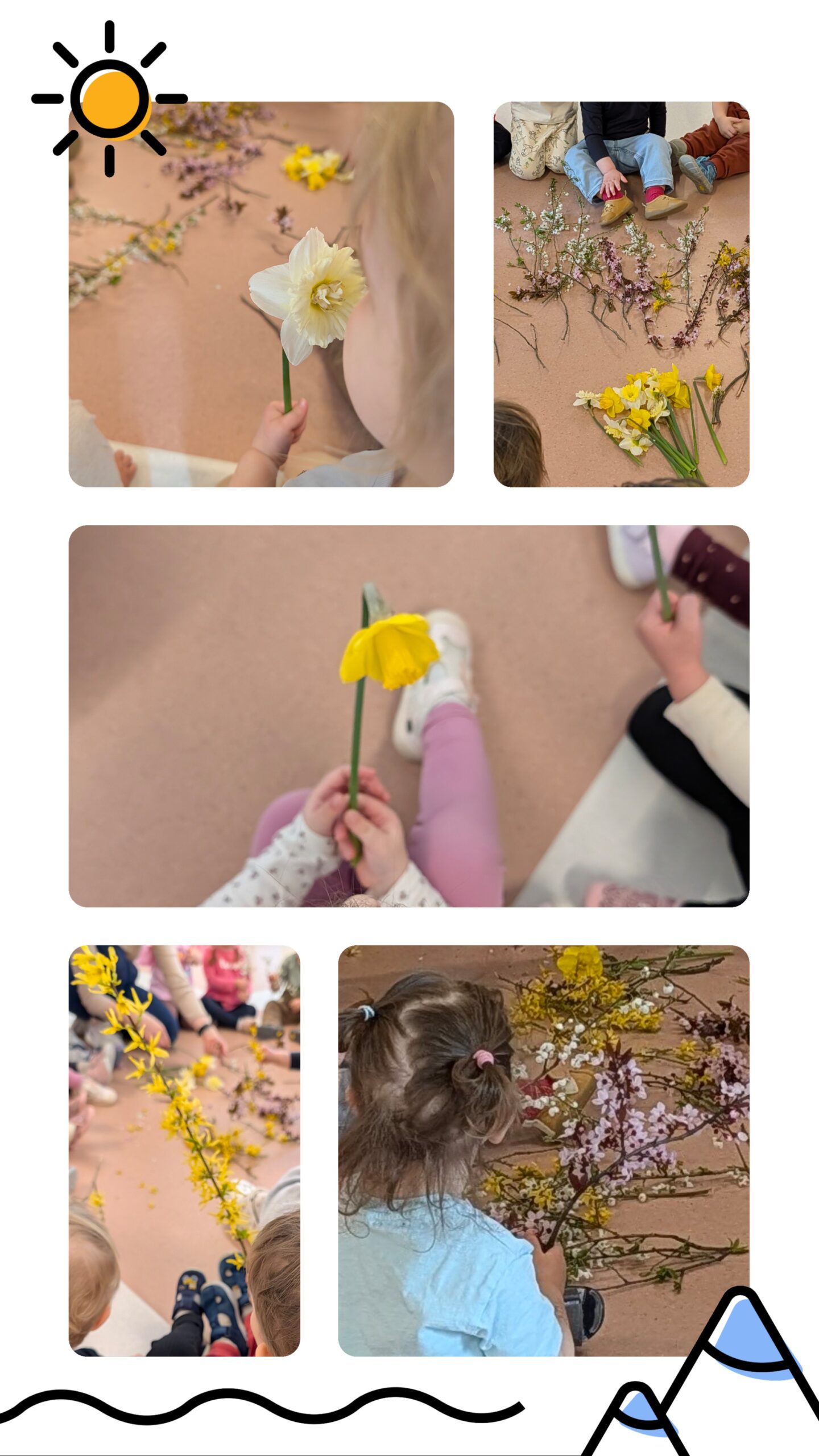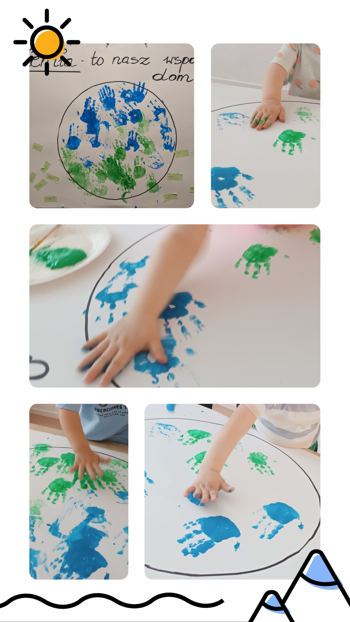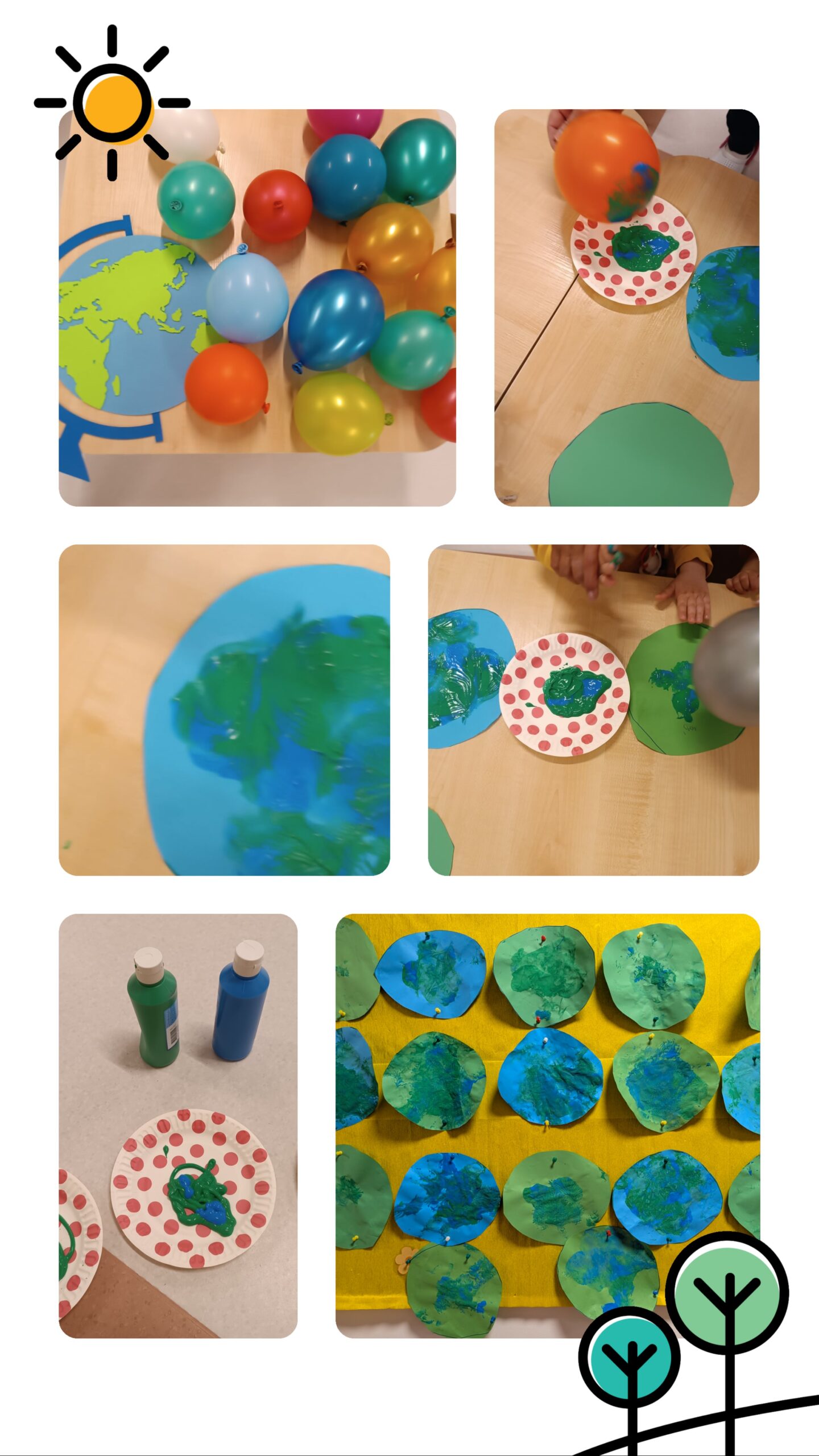 Kwiecień przyniósł nam także dużo kontaktu z naturą. Dzieci bawiły się w „stawie” pełnym wody, kaczek i kaczeńców, a także samodzielnie sadziły rośliny, ucząc się troski o przyrodę. Ze spaceru przyniosły również piękny bukiet wiosennych kwiatów. Odbyło się także „kino” oraz zajęcia poświęcone naszej planecie – Ziemi, które rozbudziły ciekawość świata. Wiele radości przyniosły również zabawy z kolorami.