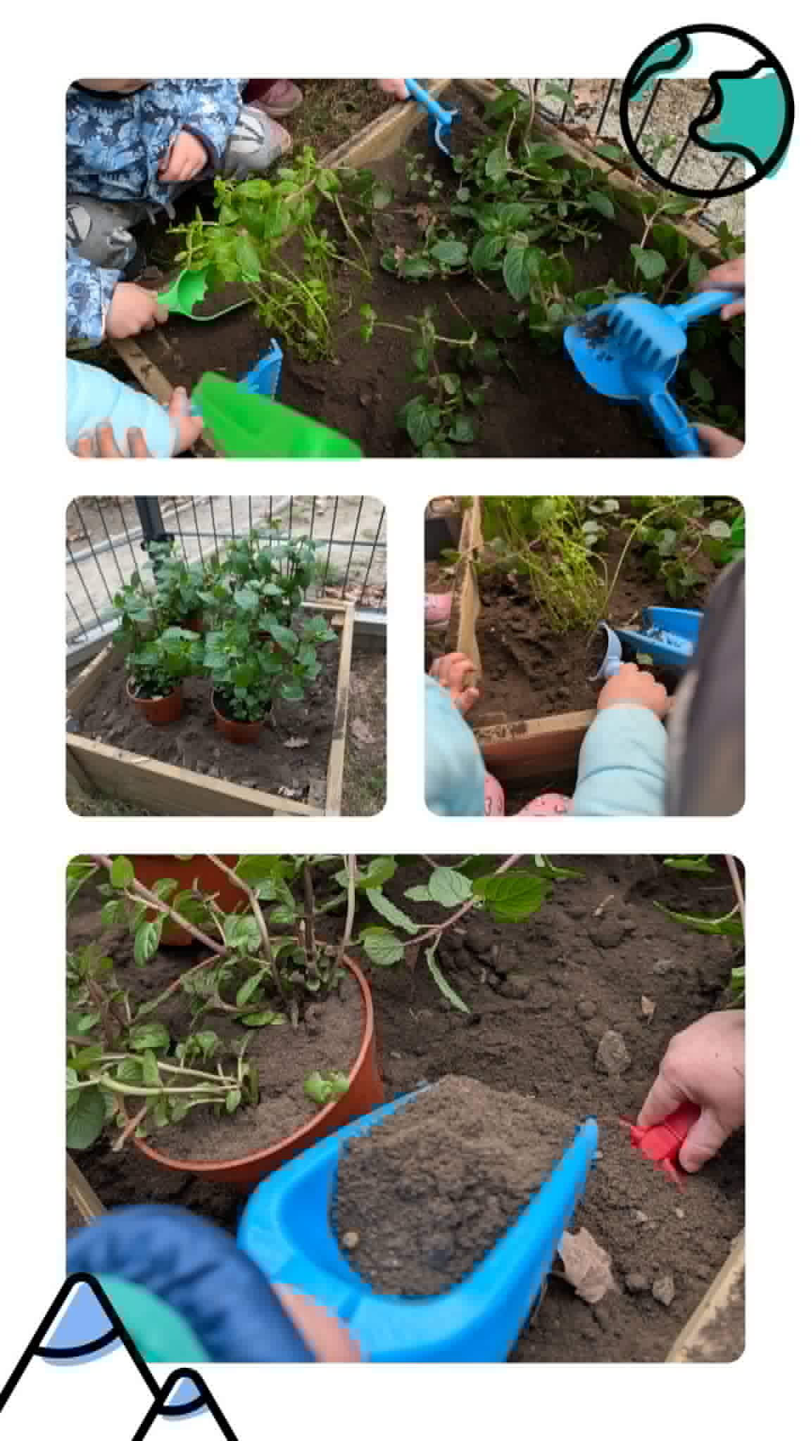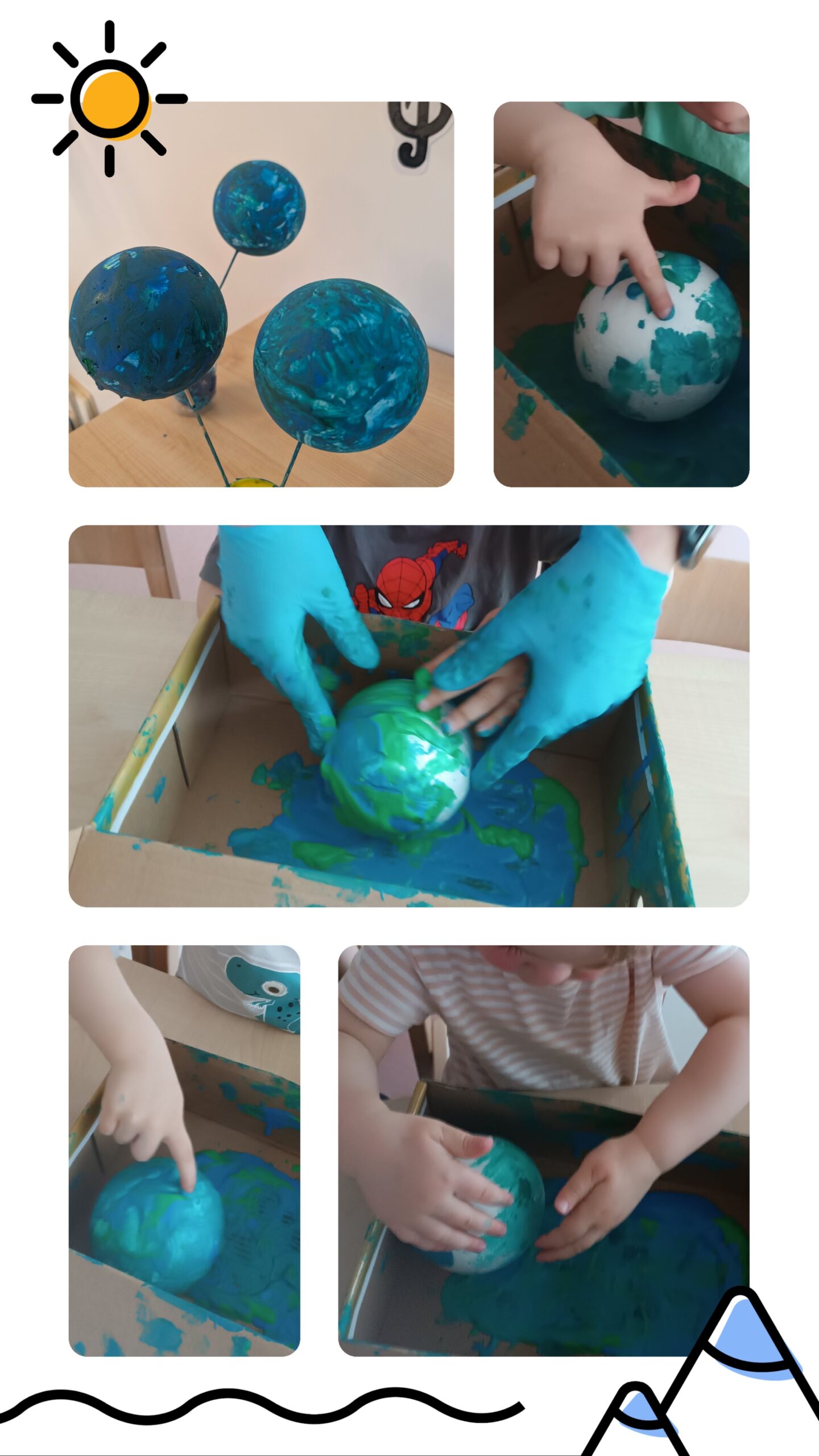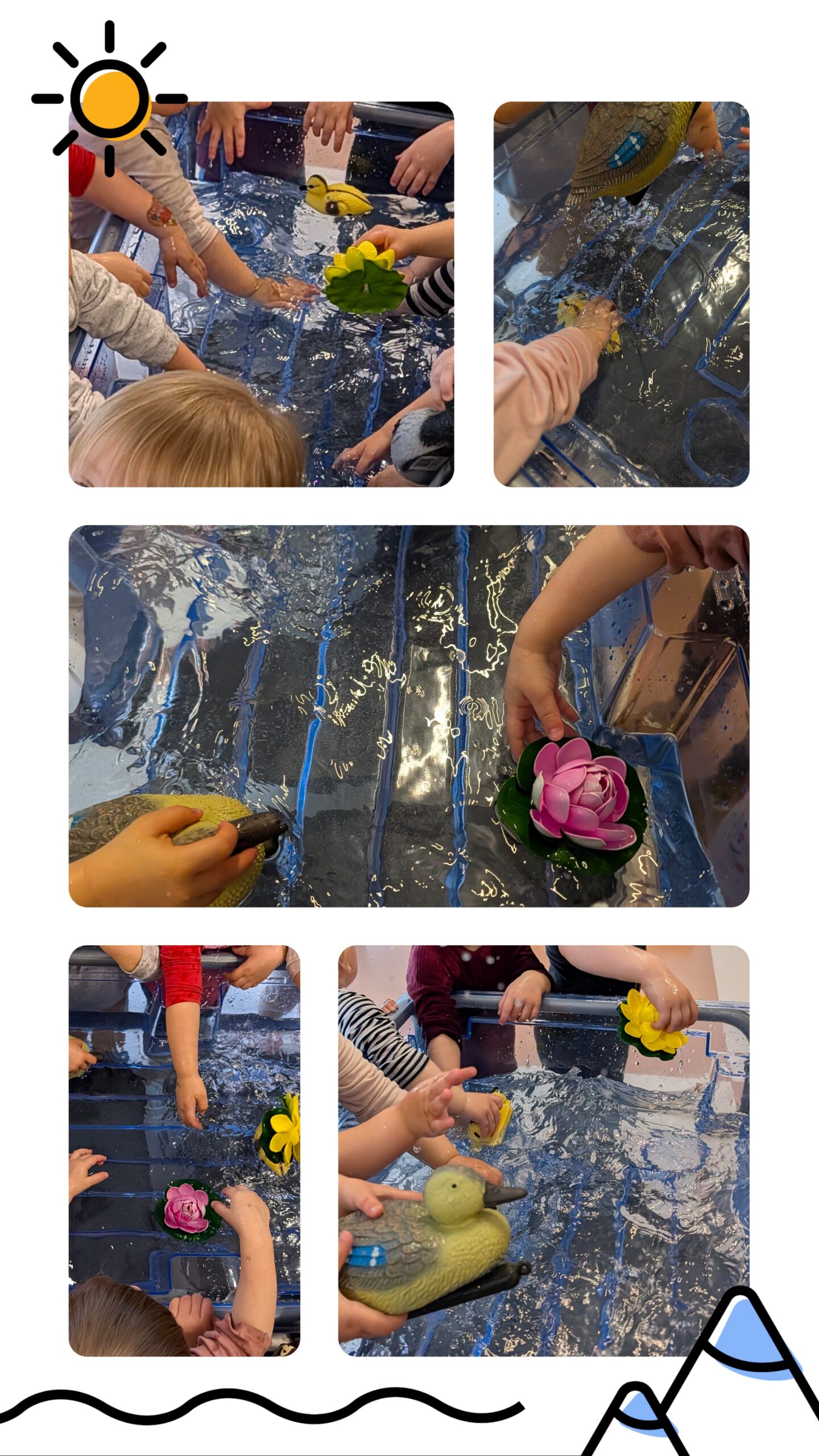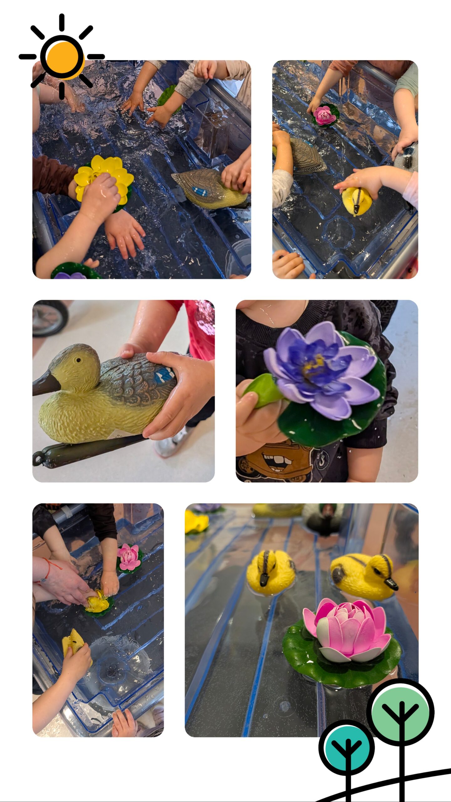 Kwiecień przyniósł nam także dużo kontaktu z naturą. Dzieci bawiły się w „stawie” pełnym wody, kaczek i kaczeńców, a także samodzielnie sadziły rośliny, ucząc się troski o przyrodę. Ze spaceru przyniosły również piękny bukiet wiosennych kwiatów. Odbyło się także „kino” oraz zajęcia poświęcone naszej planecie – Ziemi, które rozbudziły ciekawość świata. Wiele radości przyniosły również zabawy z kolorami.