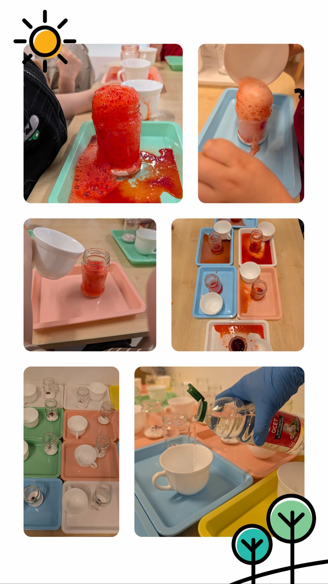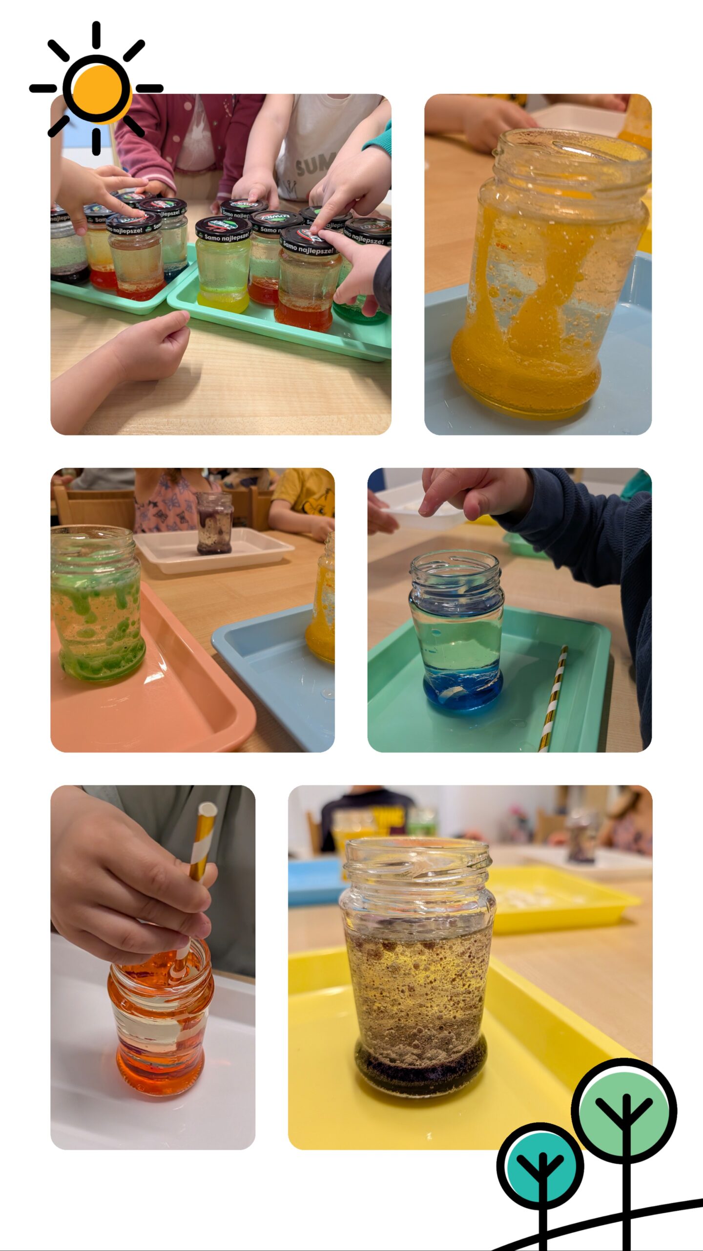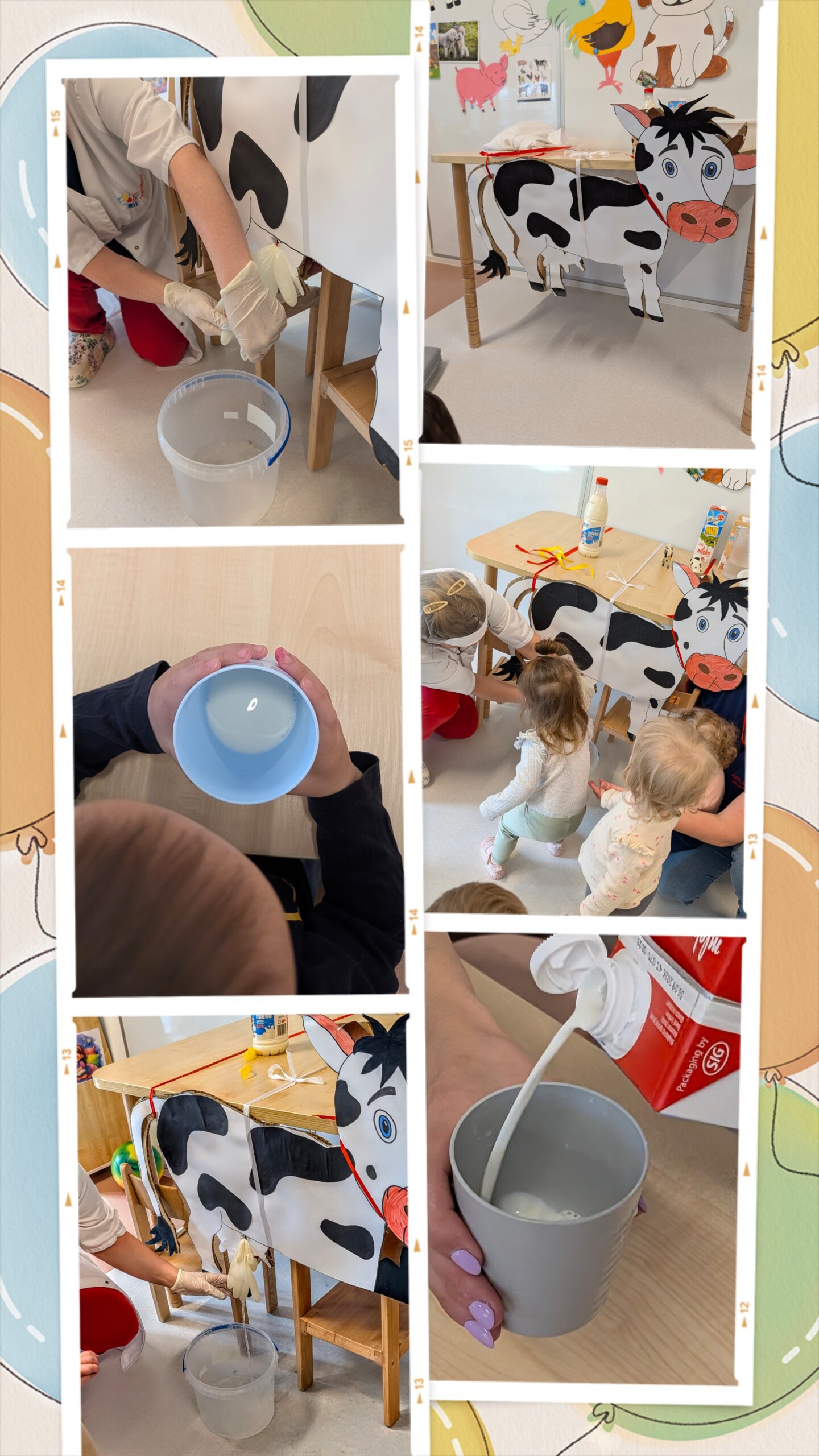 Wśród wielu atrakcji maluchy miały okazję bawić się ciastoliną czy też ziarnami różnych roślin rozwijając swoją wyobraźnię i sprawność manualną. Poznawały także fascynujący świat zwierząt – nie tylko poprzez zabawę, ale również poprzez doświadczenia „dojenie krowy”, które wywołało wiele uśmiechów. Nie zabrakło również prostych, ale niezwykle efektownych eksperymentów chemicznych – dzieci z zachwytem zrobiły i obserwowały powstającą „lawę” oraz wybuchający „wulkan”.