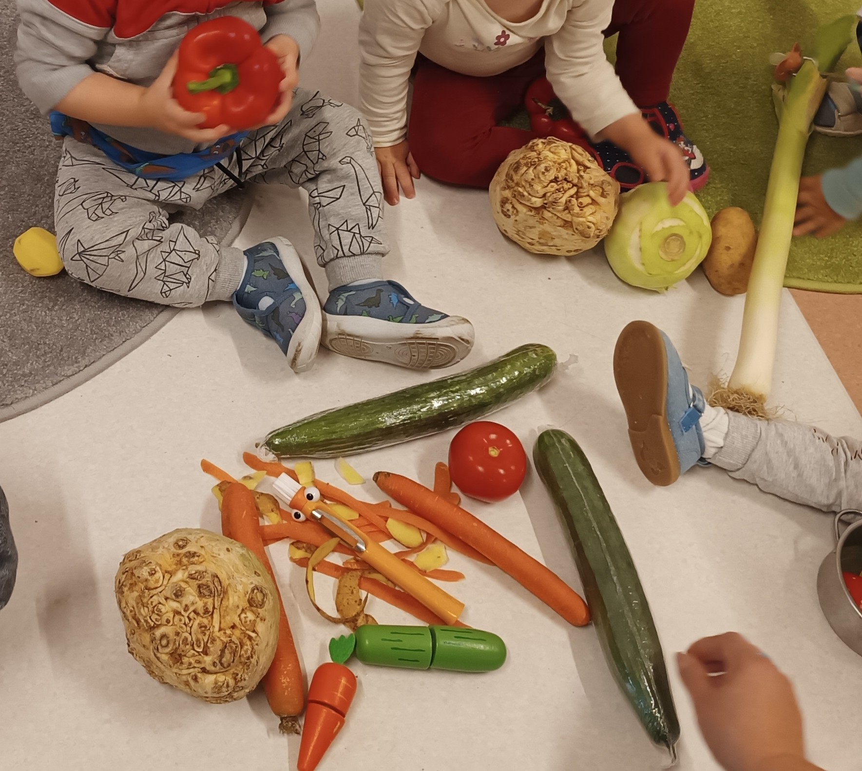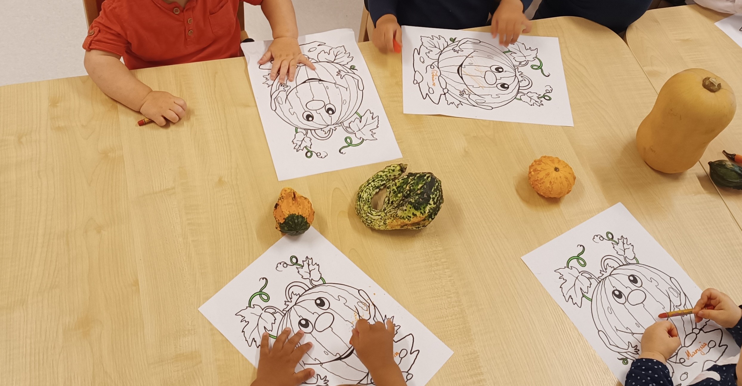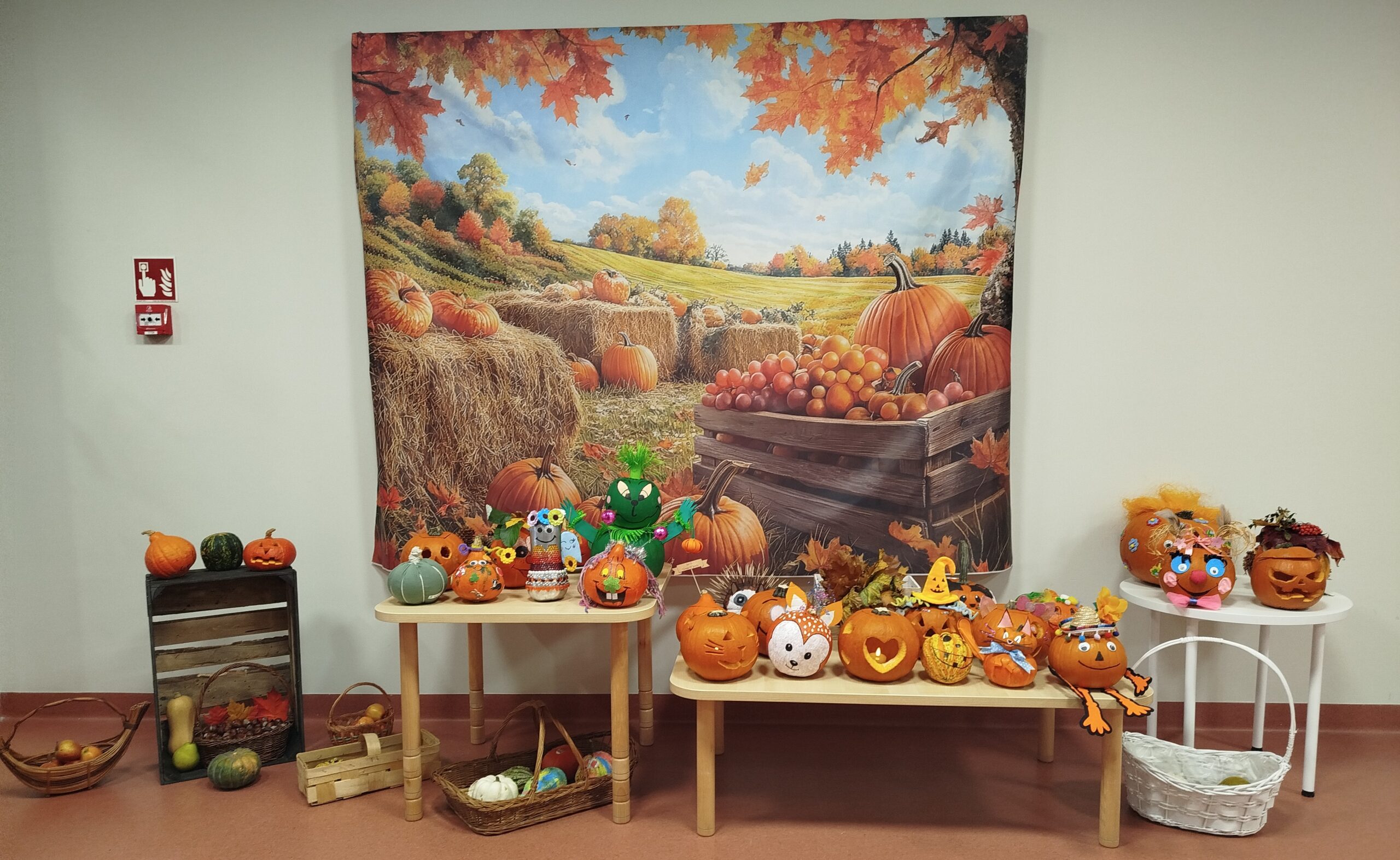 Październik w naszym żłobku upłynął w radosnej, jesiennej atmosferze. Dzieci brały udział w wielu ciekawych aktywnościach, które pozwoliły im lepiej poznać uroki tej pory roku. Obchodziliśmy Dzień Kasztana i Jeża oraz spotkaliśmy Panią Jesień, która opowiedziała nam o zmianach zachodzących w przyrodzie. Dzieci poznawały jesienne plony, a także bawiły się w zbieranie grzybów. Odwiedzili nas również wyjątkowi goście, Fela – pies terapeuta oraz uczestniczyliśmy w koncercie akordeonowym, Nie zabrakło nauki – dzieci poznawały zasady bezpiecznego przechodzenia przez ulicę. Nasi żłobkowicze wraz ze swoimi najbliższymi przygotowali przepiękne dynie na Festiwal Dyni, za co serdecznie dziękujemy.