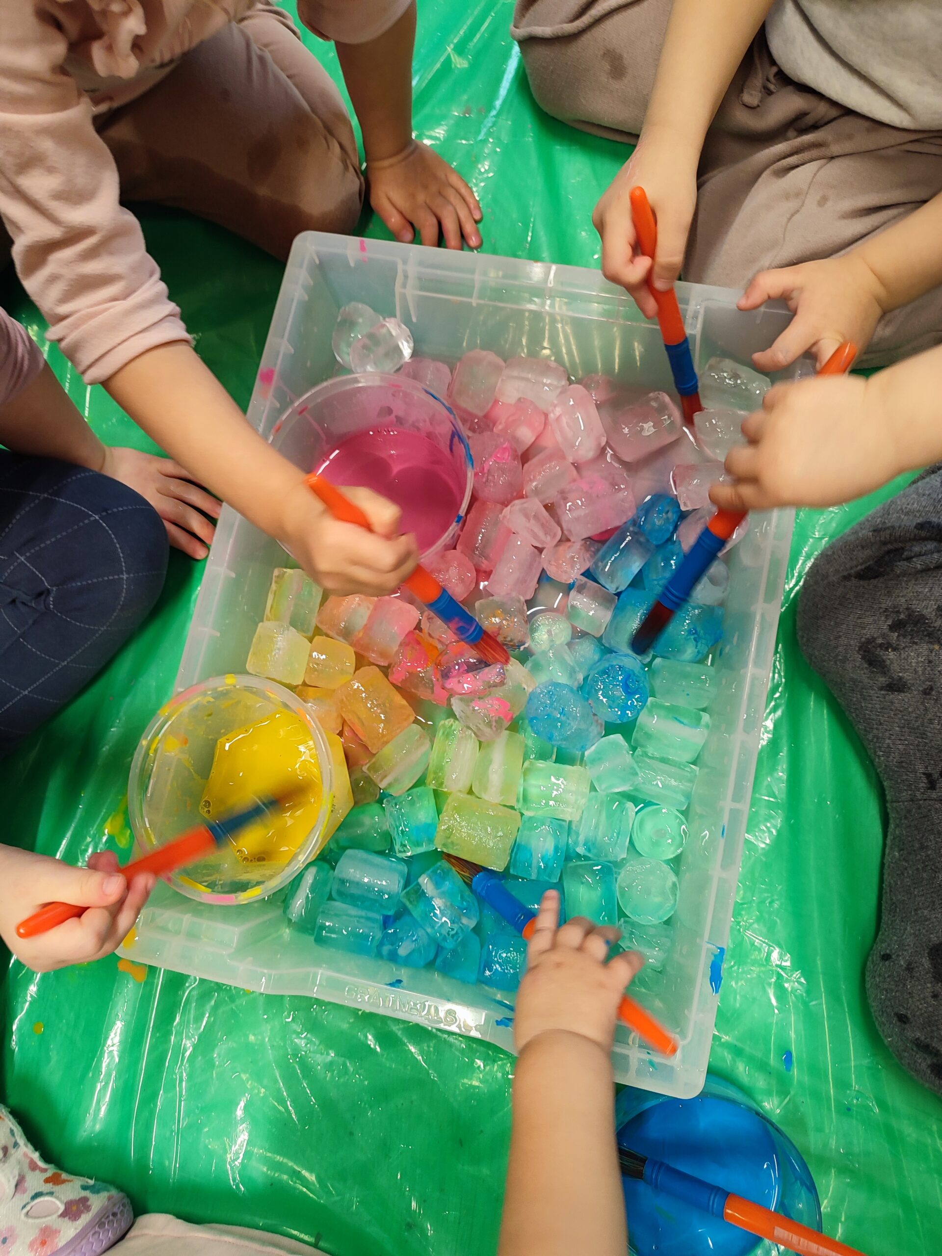Nie zabrakło również fascynujących zabaw z lodem, kolorem i światłem, które pobudzały dziecięcą ciekawość, zmysły oraz kreatywność. Był to czas pełen odkrywania, doświadczania i radosnej nauki przez zabawę.