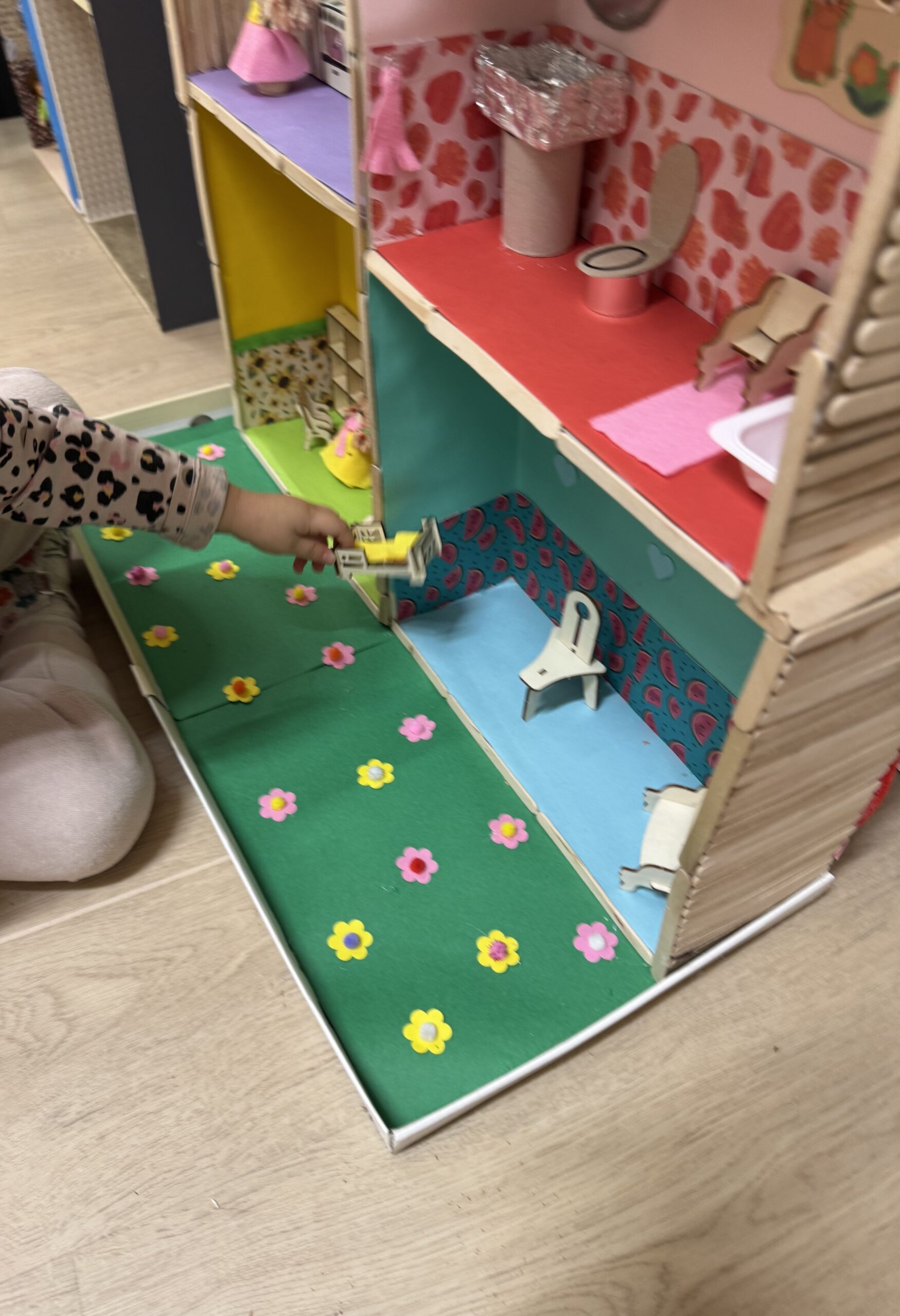 W grudniu korzystaliśmy także z naszej nowej sali zabaw, w której znajdują się wyjątkowe zabawki wykonane z darów natury oraz surowców wtórnych. To przestrzeń sprzyjająca twórczej zabawie, ucząca troski o środowisko i pokazująca dzieciom, że z prostych, naturalnych materiałów można stworzyć coś naprawdę wyjątkowego 🌿📦