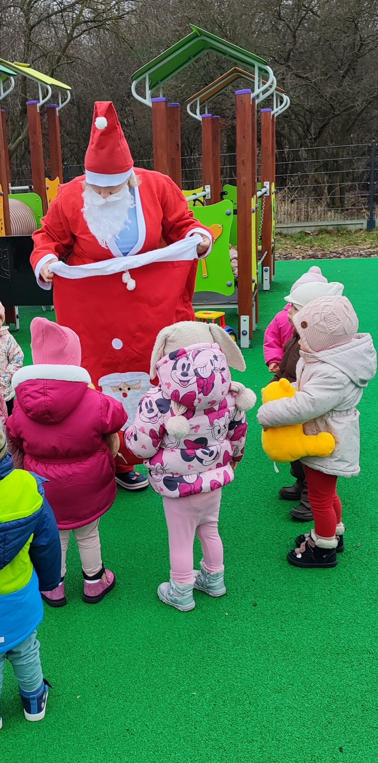 Wspólnie śpiewaliśmy wesołe piosenki o zimie i Mikołaju, uczyliśmy się świątecznych wierszyków, a także tańczyliśmy przy radosnych melodiach, rozwijając przy tym wyobraźnię i poczucie rytmu. Nie zabrakło również wyjątkowego wydarzenia – Mikołajek, podczas których odwiedził nas sam Święty Mikołaj. Spotkanie to sprawiło dzieciom ogromną radość, a przygotowane prezenty wywołały wiele uśmiechów i pozytywnych emocji 🎁✨