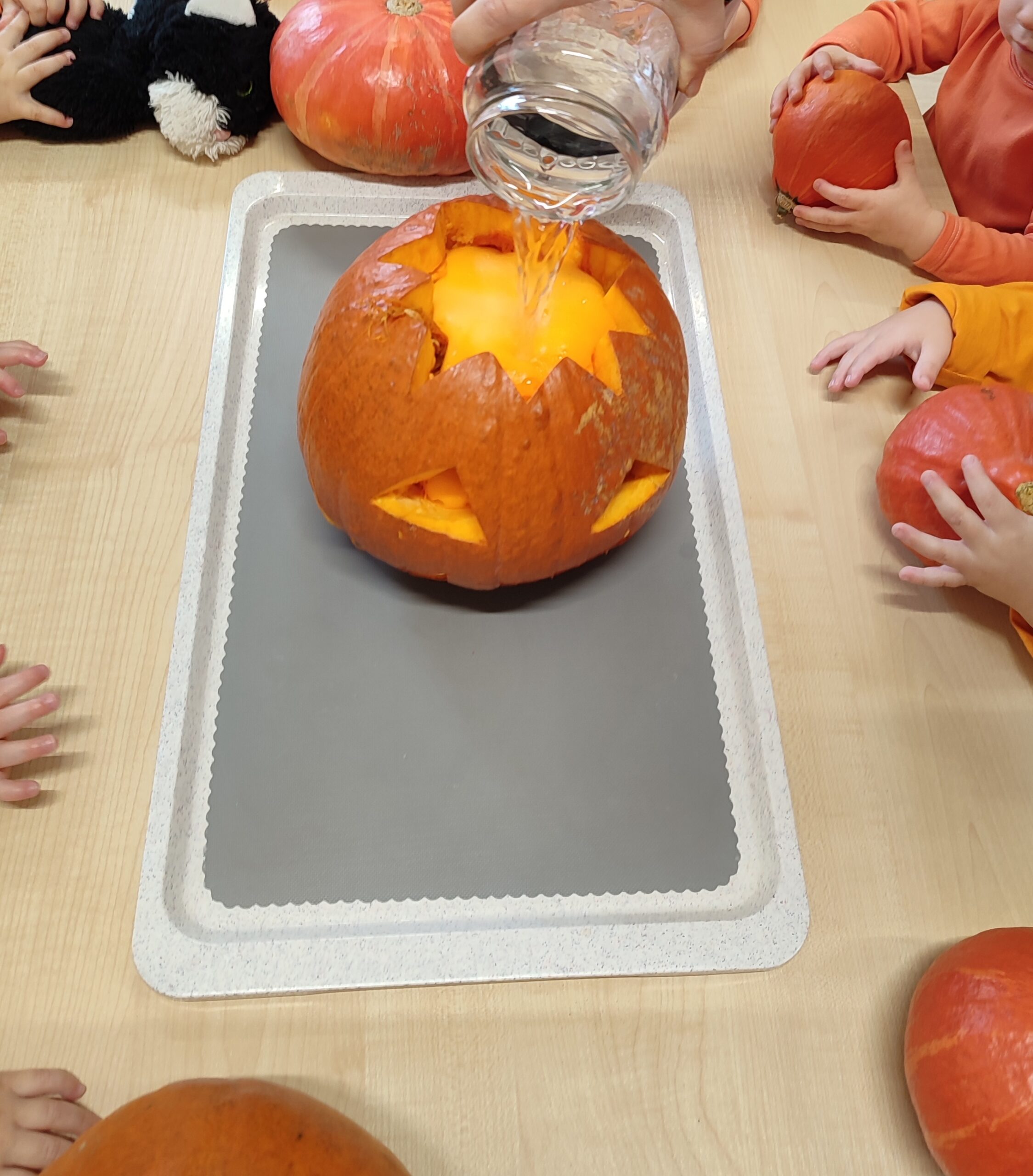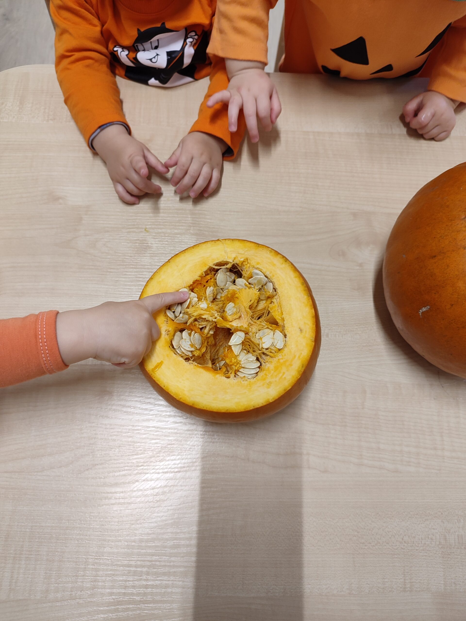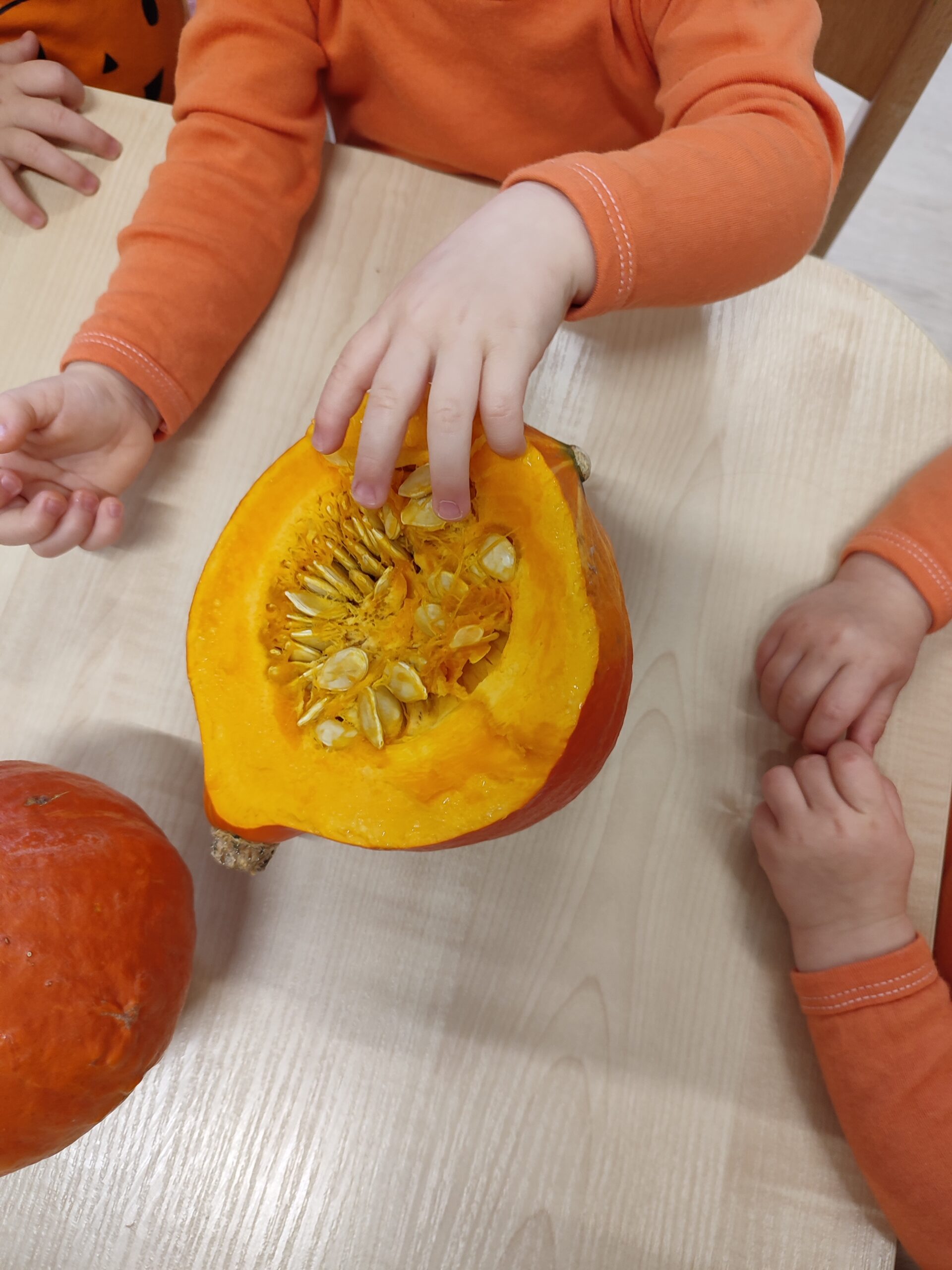 Dzieci malowały dynie, dotykały i odkrywały, że pestki dyni naprawdę uciekają z rąk!