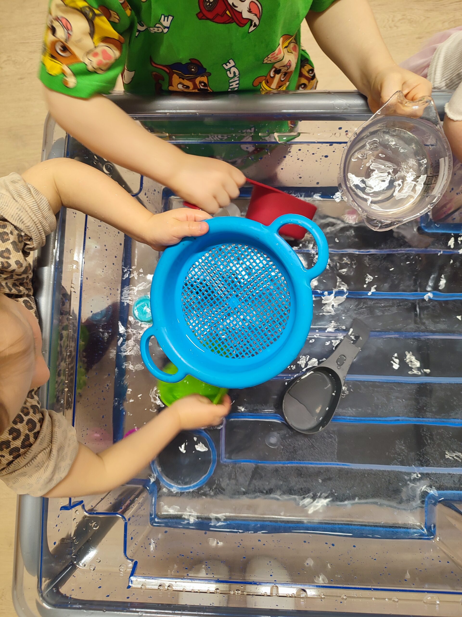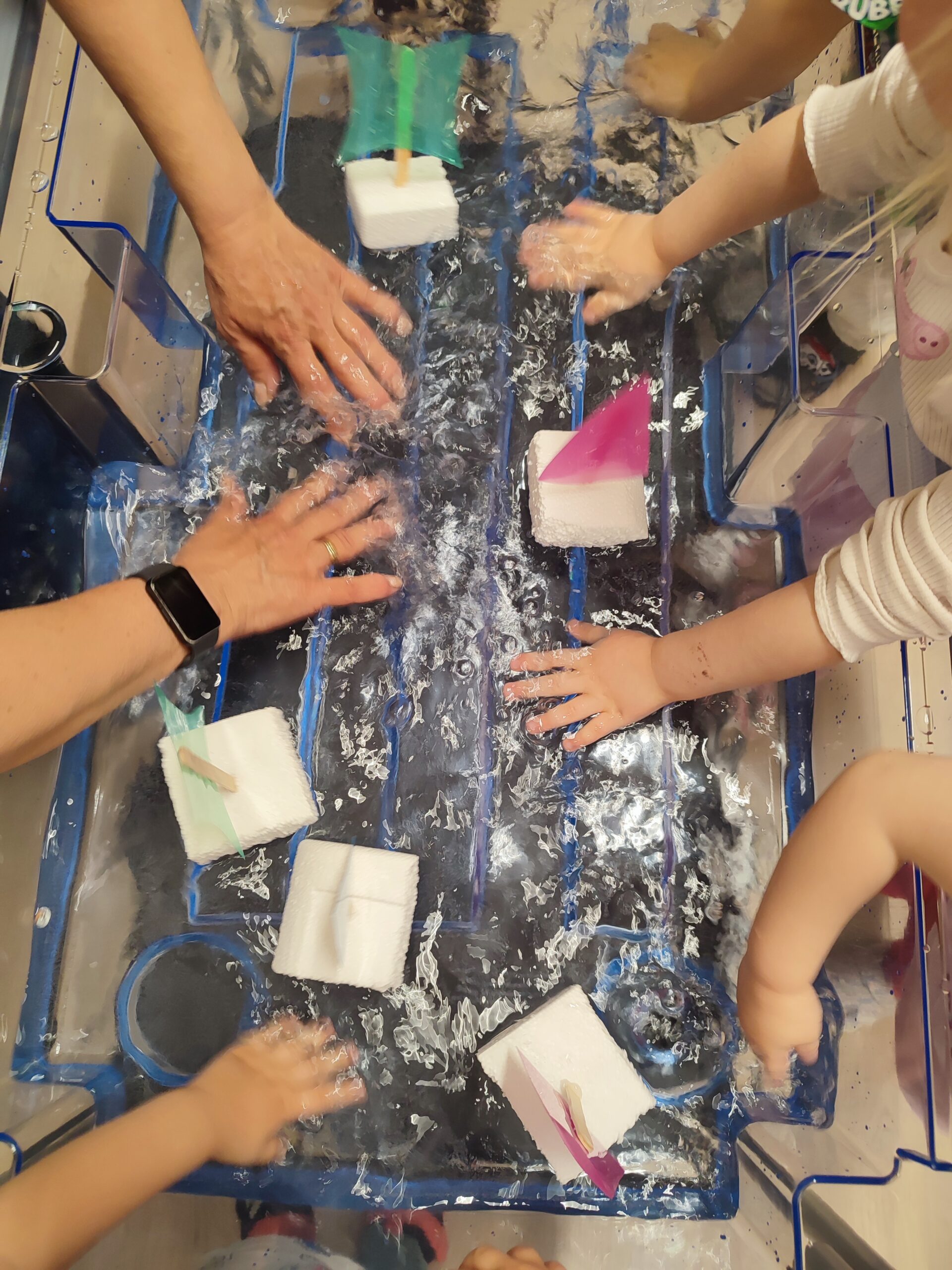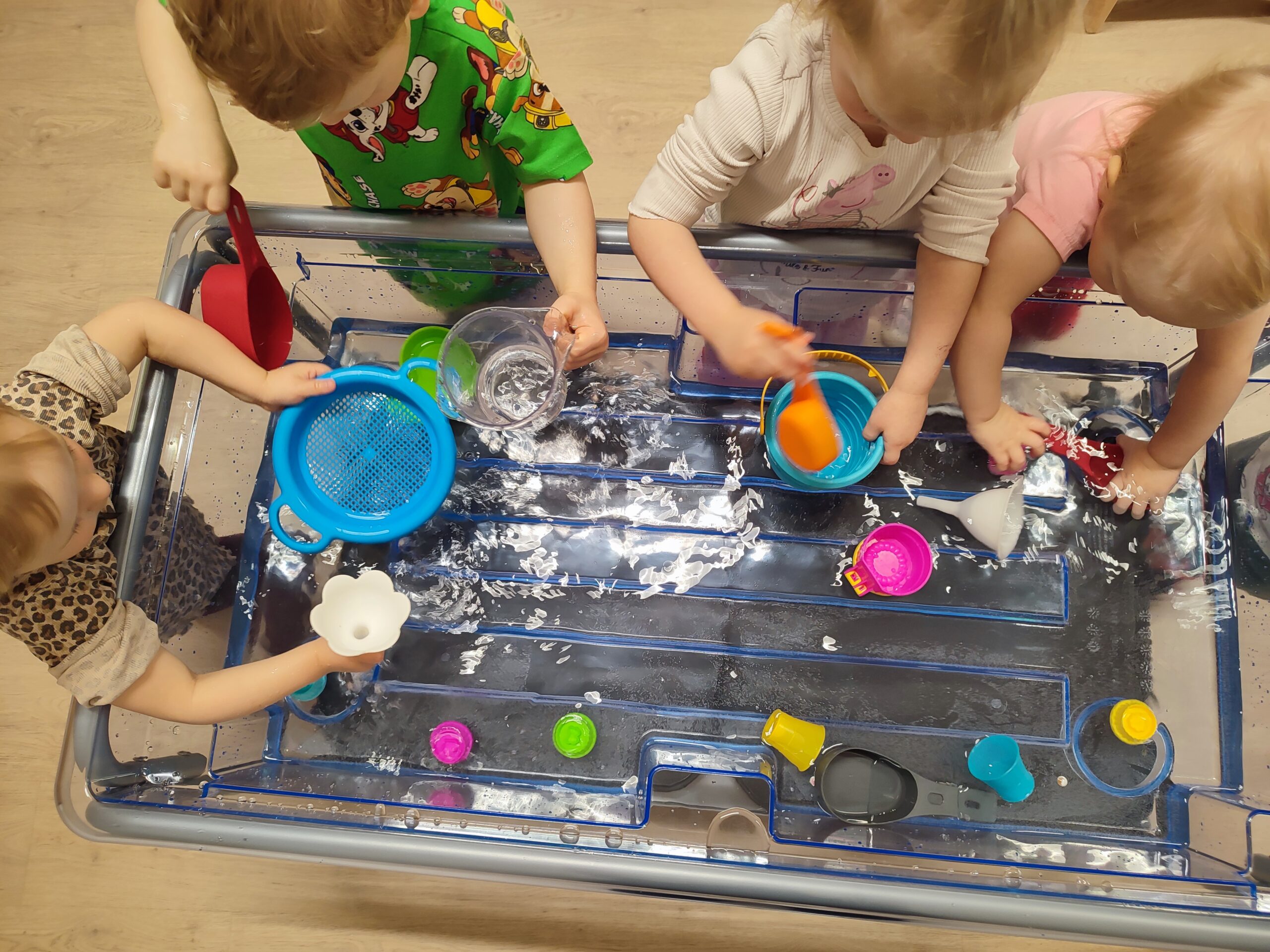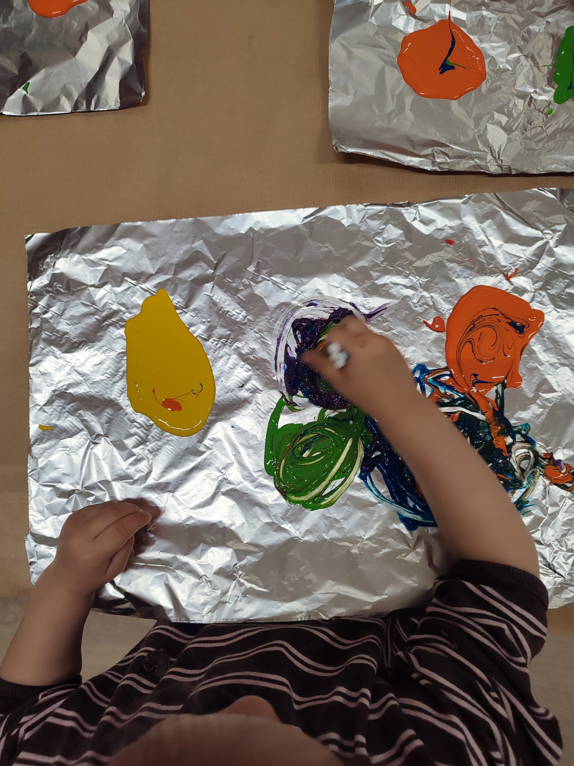 Dużym zainteresowaniem cieszyły się także zajęcia badawcze i eksperymentalne. Dzieci uczestniczyły w prostych doświadczeniach, takich jak odkrywanie barw z wykorzystaniem czerwonej kapusty czy zabawy z wodą i olejem. Była to doskonała okazja do rozwijania ciekawości świata oraz poznawania podstawowych zjawisk w sposób dostosowany do ich wieku.